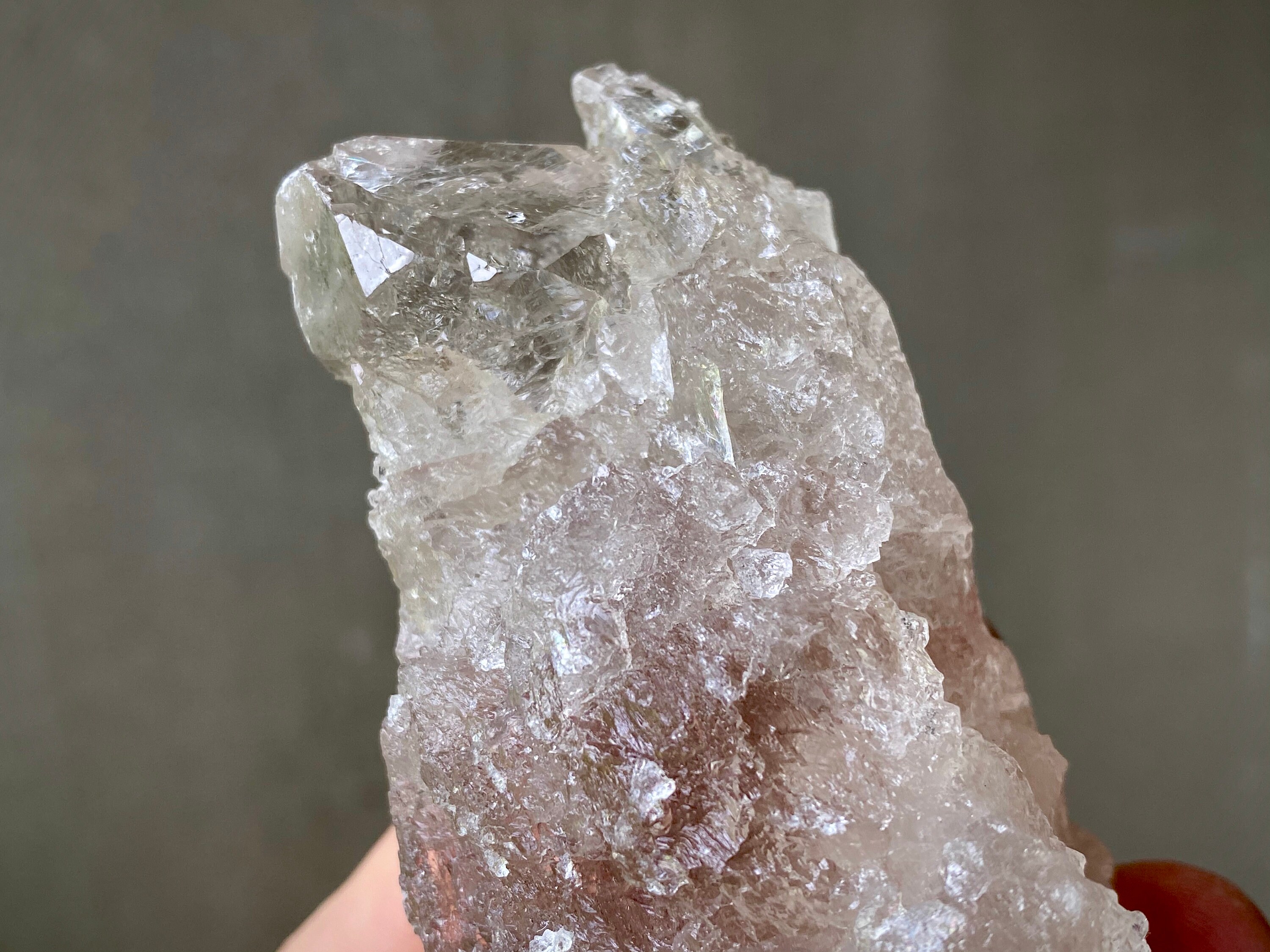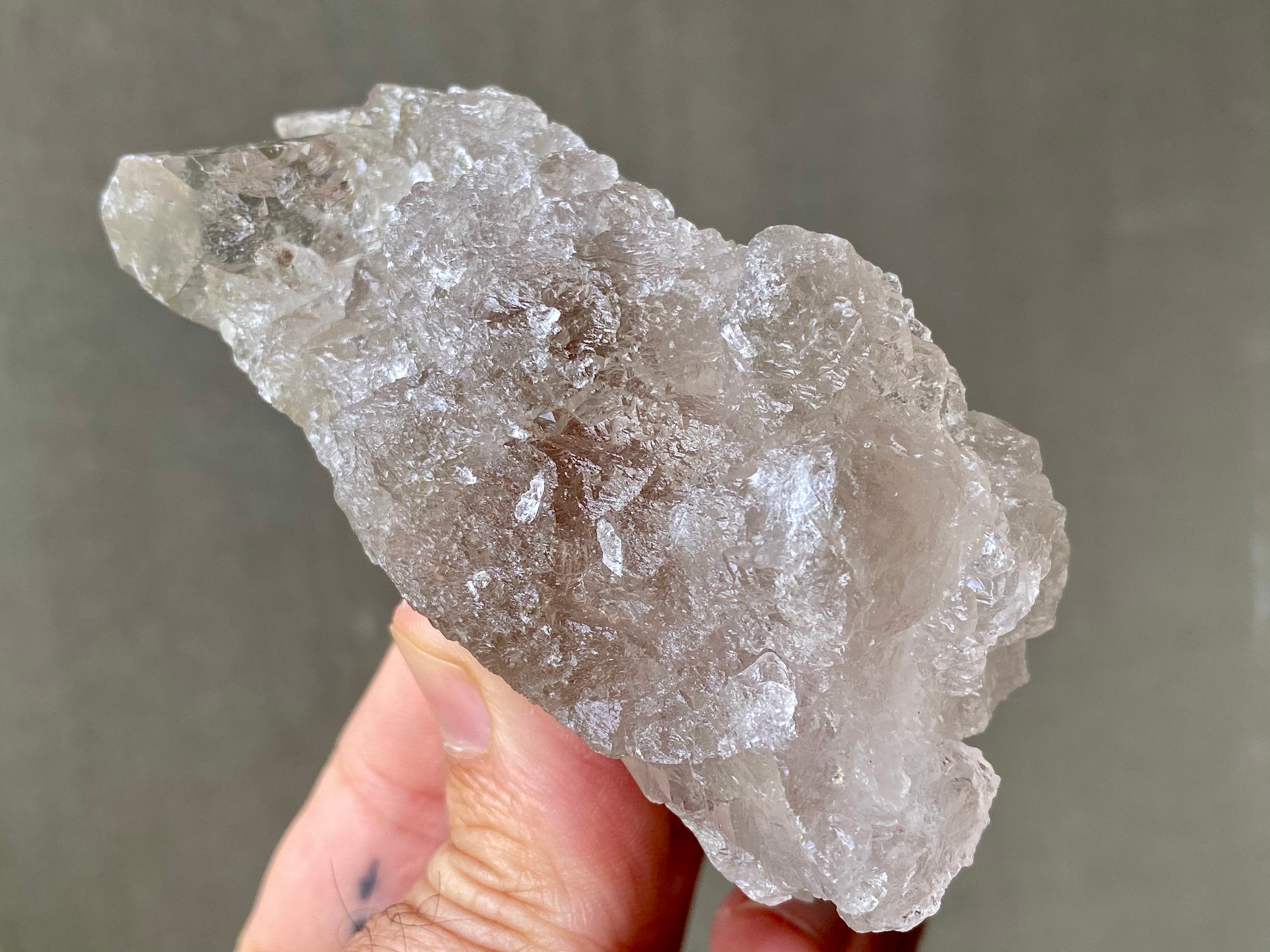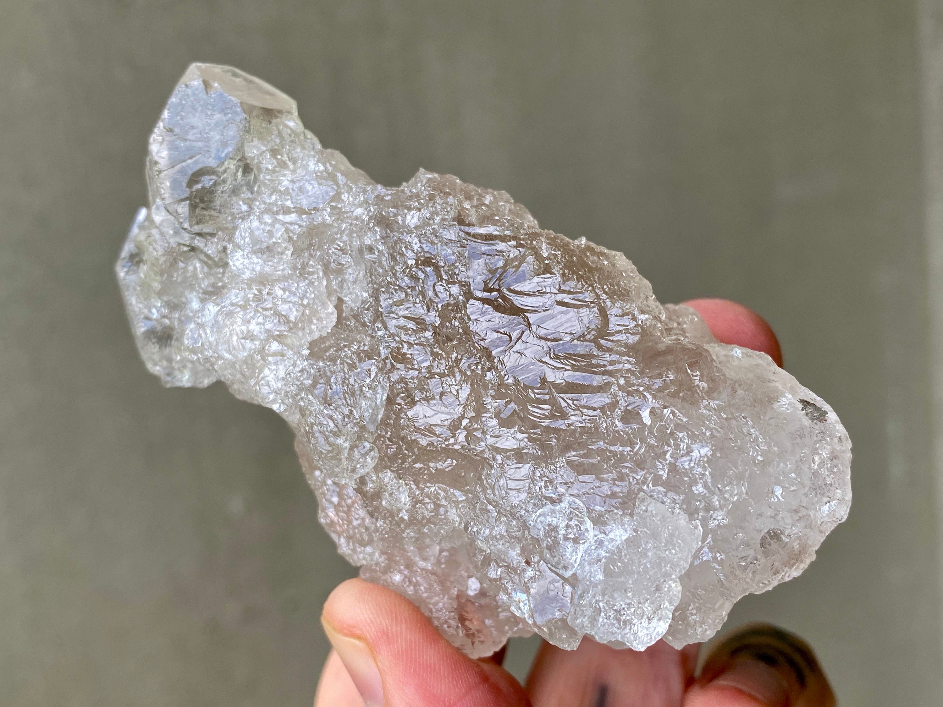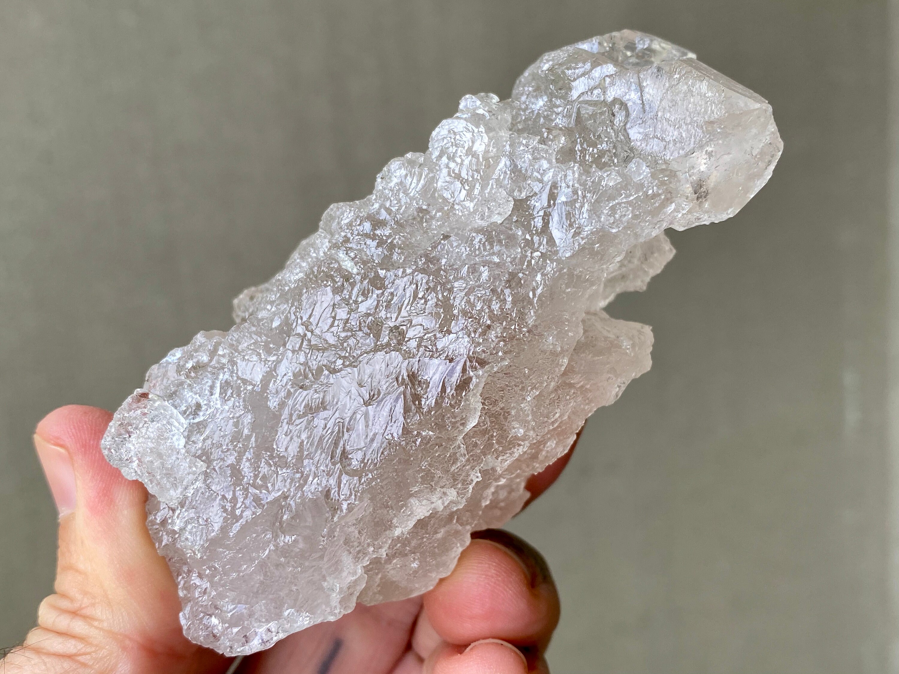 This incredible Quartz crystal comes from a new find (2020) in Corinto, Brazil. Known as Ice Quartz, they are characterized by their highly lustrous exterior which is often heavily textured with many individual facets and other textural formations. Physically, they are incredibly reflective and do resemble actual ice! Because of their many facets, these crystals are not "unidirectional" like crystal points are. These crystals emanate their healing energies in all directions. Ice Quartz carries an energy that is *incredibly* powerful in drawing challenging emotions that need to be resolved to the surface in order for them to be expressed, felt and healed. These crystals are recommended for those interested in deep emotional healing work and trauma healing. They carry one of the most powerful and unique vibrations of any crystal we have ever worked with.