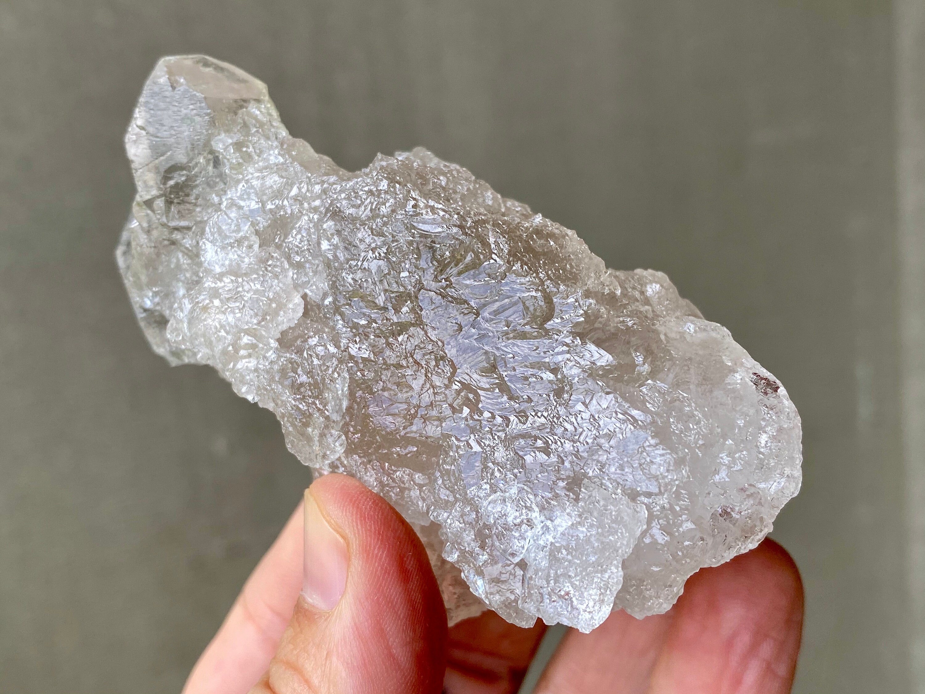 Ice Quartz are characterized by their highly lustrous exterior which is often heavily textured with many individual facets and other textural formations. Physically, they are incredibly reflective and do resemble actual ice! Because of their many facets, these crystals are not "unidirectional" like crystal points are. These crystals emanate their healing energies in all directions.