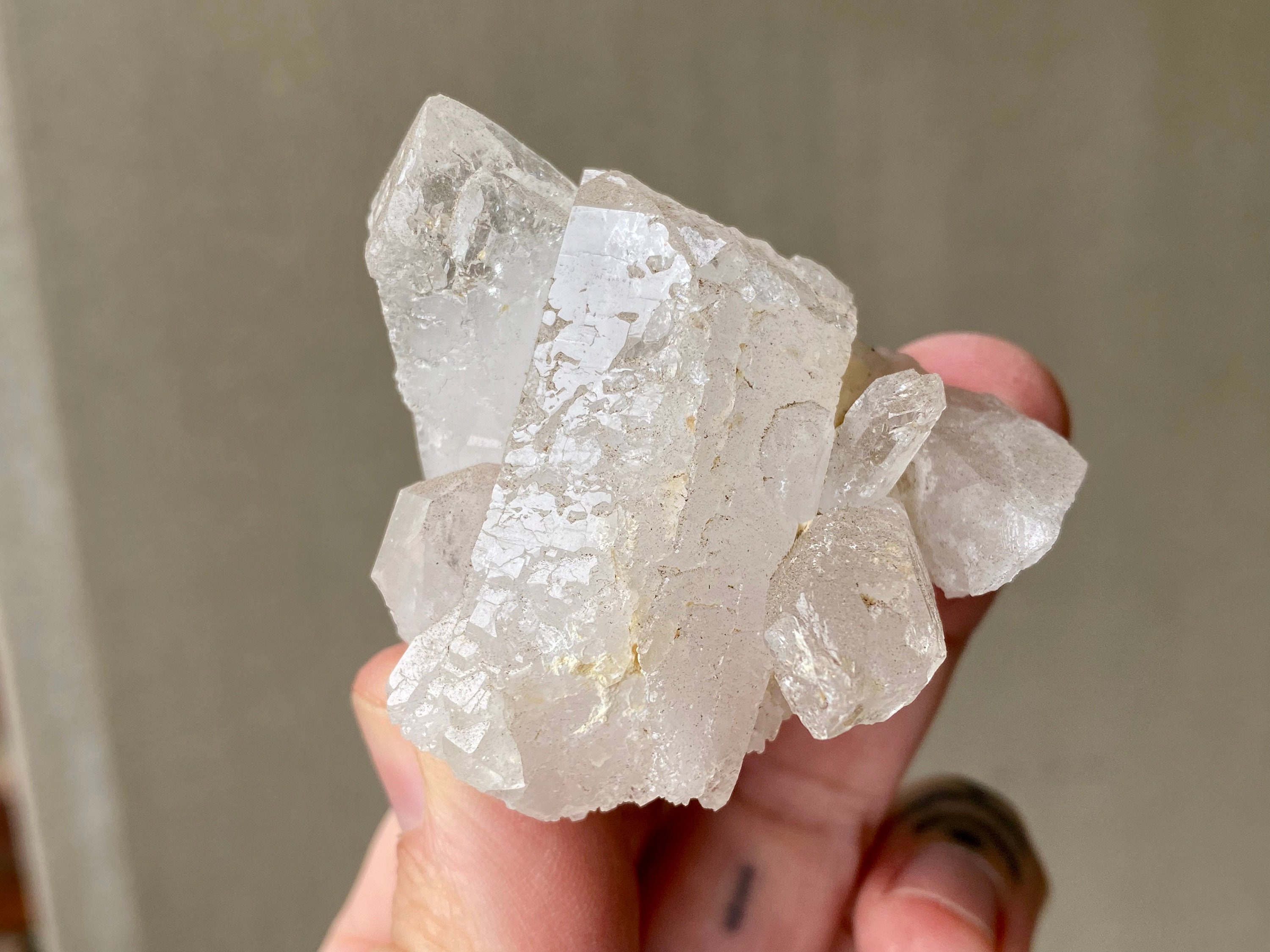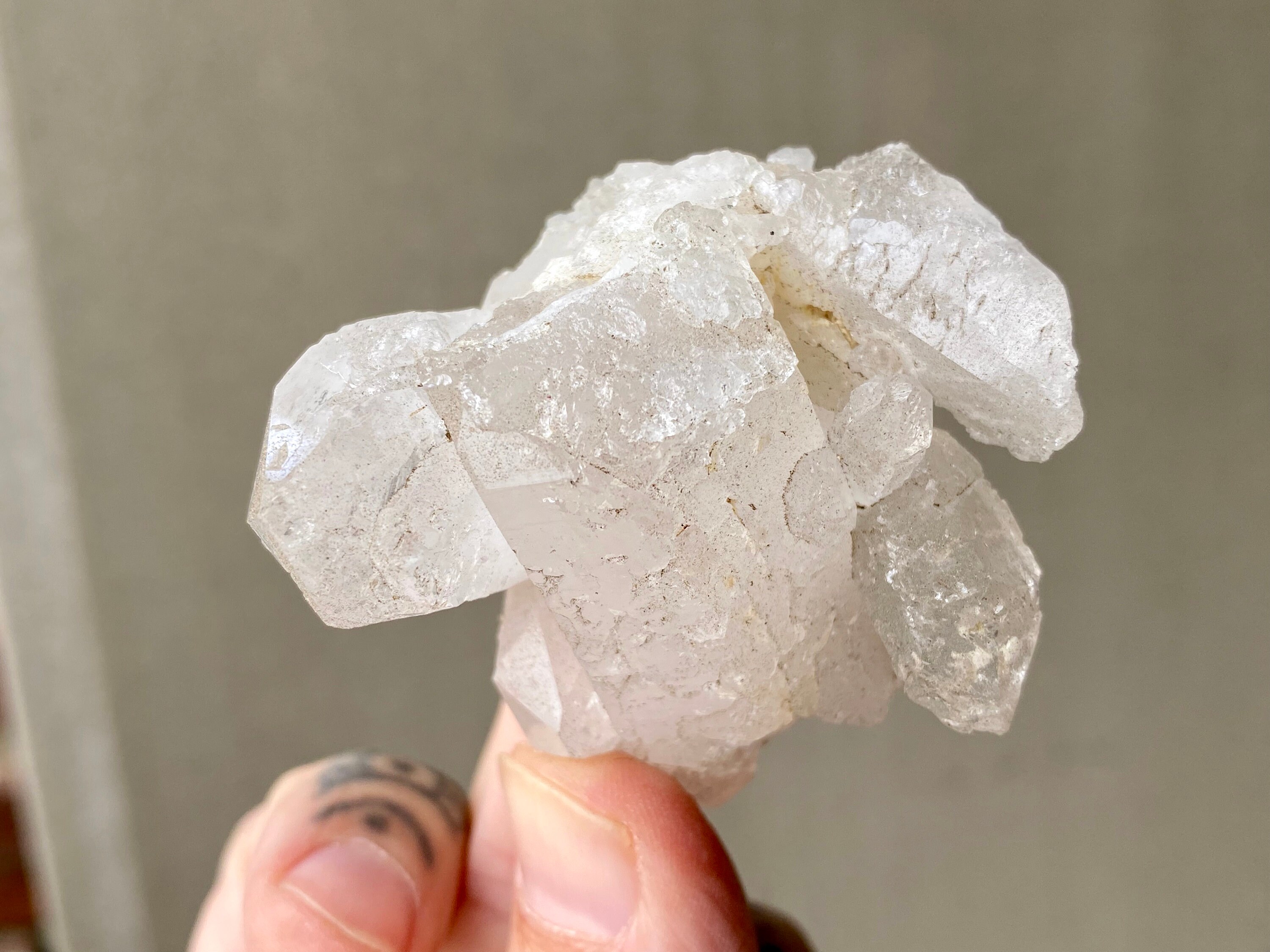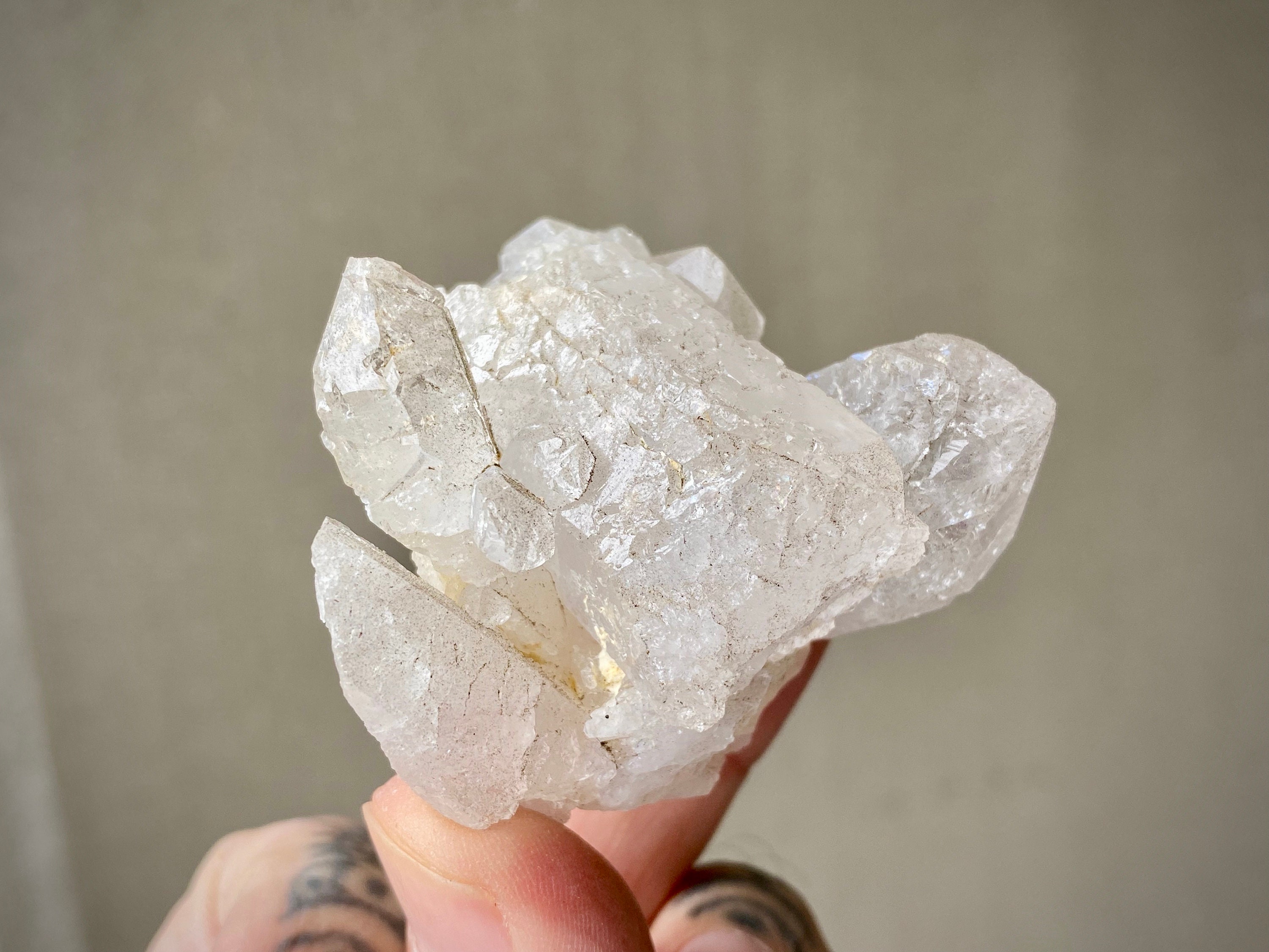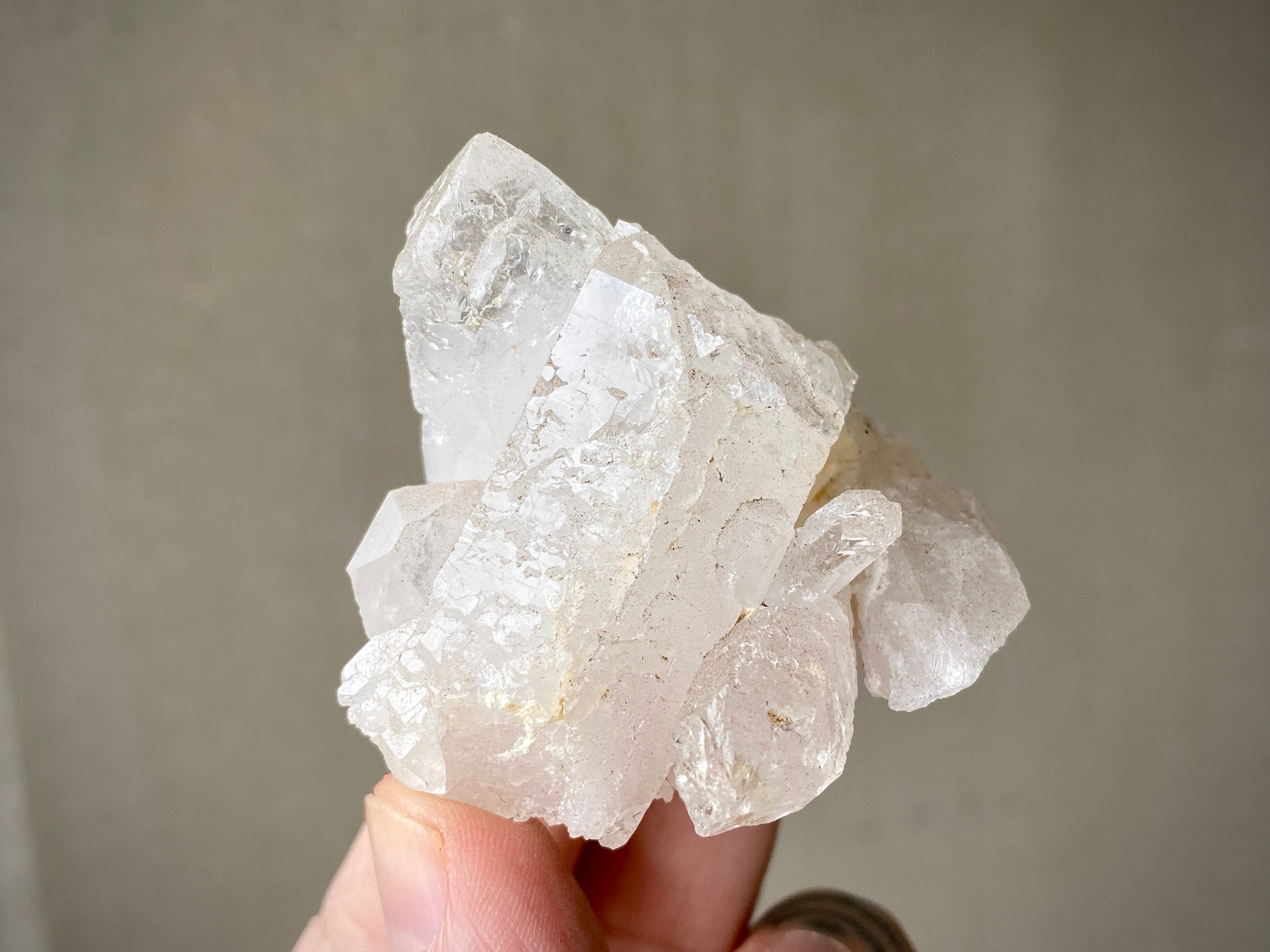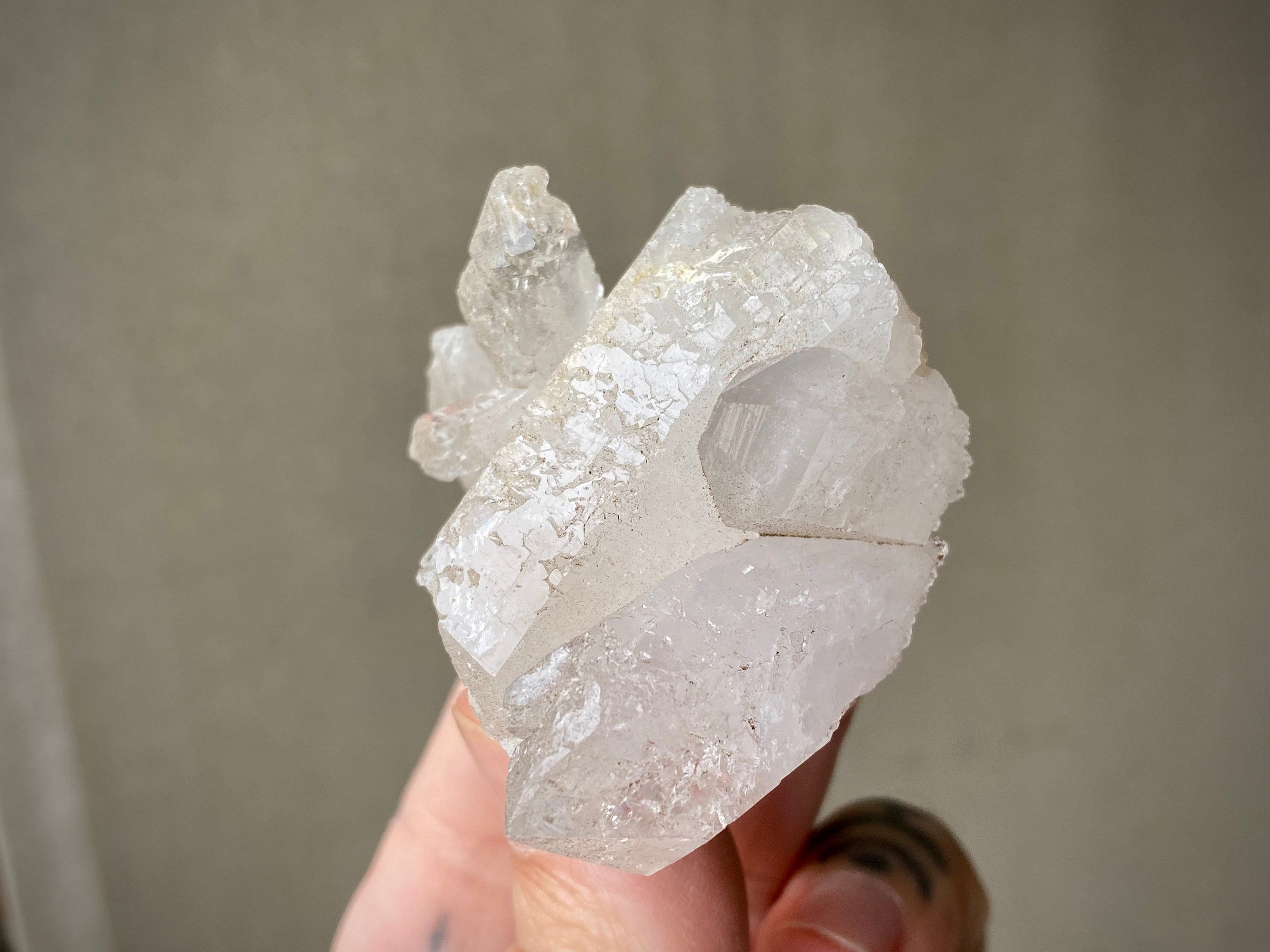 This unique Quartz Crystal is from a recent find in Corinto, Brazil. Formed over the course of millions of years, these crystals are hydrothermally etched, and are referred to as "dissolution" crystals. What this means is that, they form in the ground as crystals and a hydrothermal solution at their source comes through at some point in the later stages of development (in the form of very hot, mineralized water most likely) and, over the course of time, actually pulls molecules away, creating these even more beautiful forms. So these were essentially carved and molded by underground water flow over millions of years! These crystals carry an energy of evolution paired with activation of creativity, to evolve your desires into productive pursuits and get your creative juices flowing.
