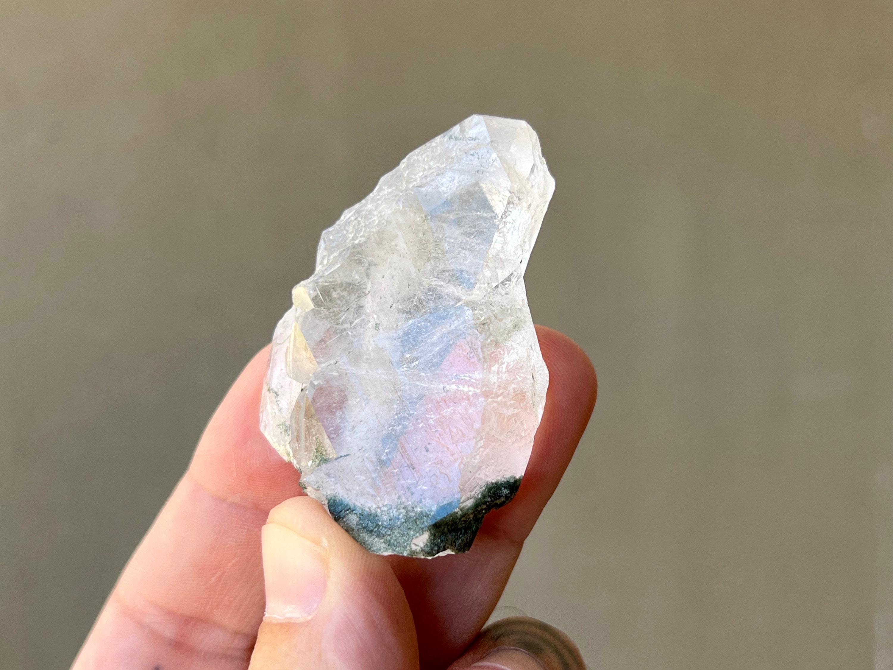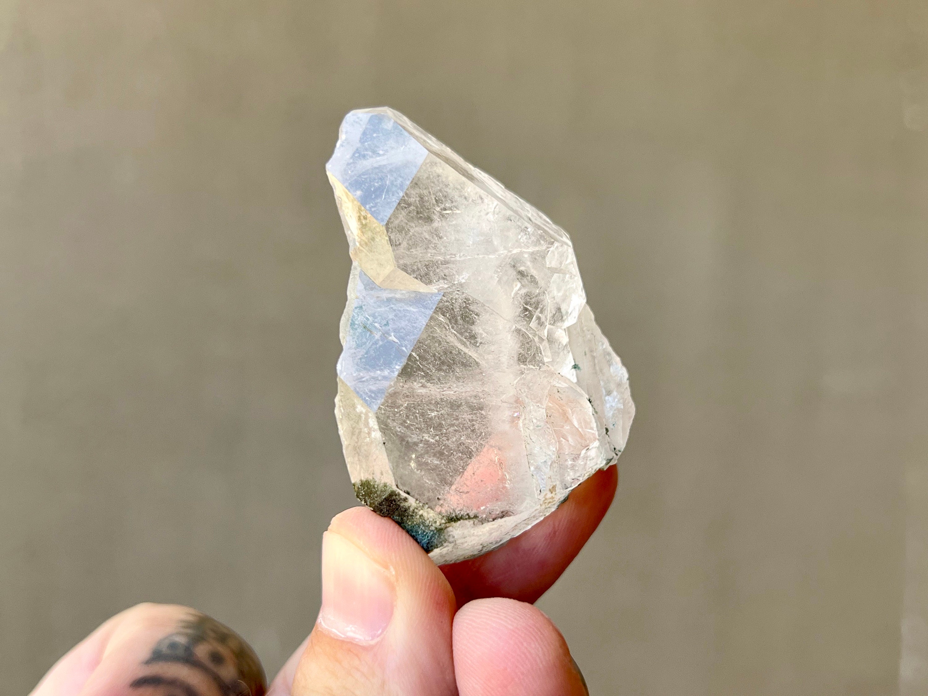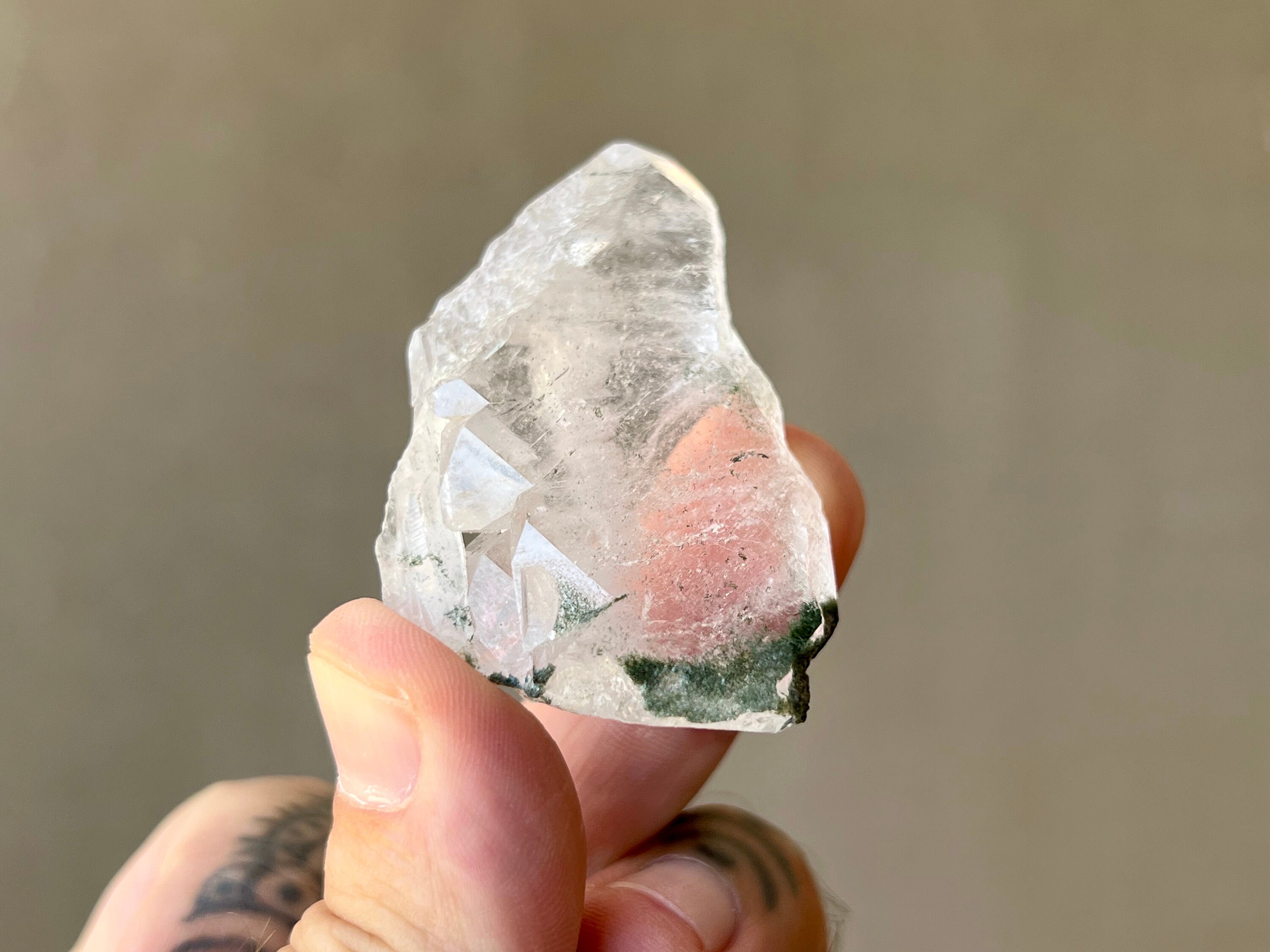 This spectacular Phantom Quartz crystal is from a recent find in Balochistan, Pakistan. This small find yielded crystals with marvelous luster and vibrant inclusions of Green Chlorite. Green Chlorite is one of the most powerful purifiers and heart healers in the mineral kingdom. When combined with quartz, these healing properties are significantly amplified, in both the physical body and auric body.