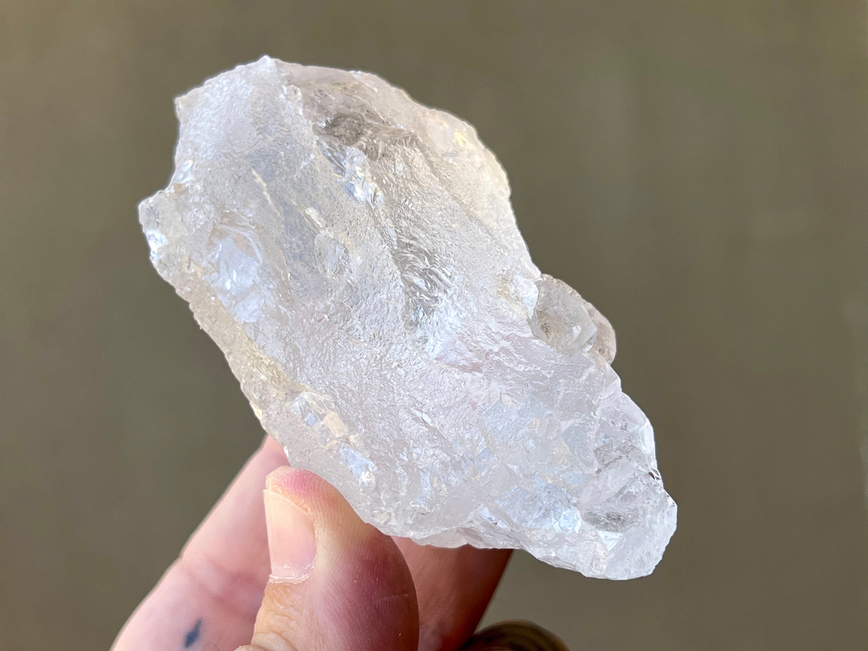 Ice Quartz are characterized by their highly lustrous exterior which is often heavily textured with many individual facets and other textural formations. Physically, they are incredibly reflective and do resemble actual ice! Because of their many facets, these crystals are not "unidirectional" like crystal points are. These crystals emanate their healing energies in all directions.