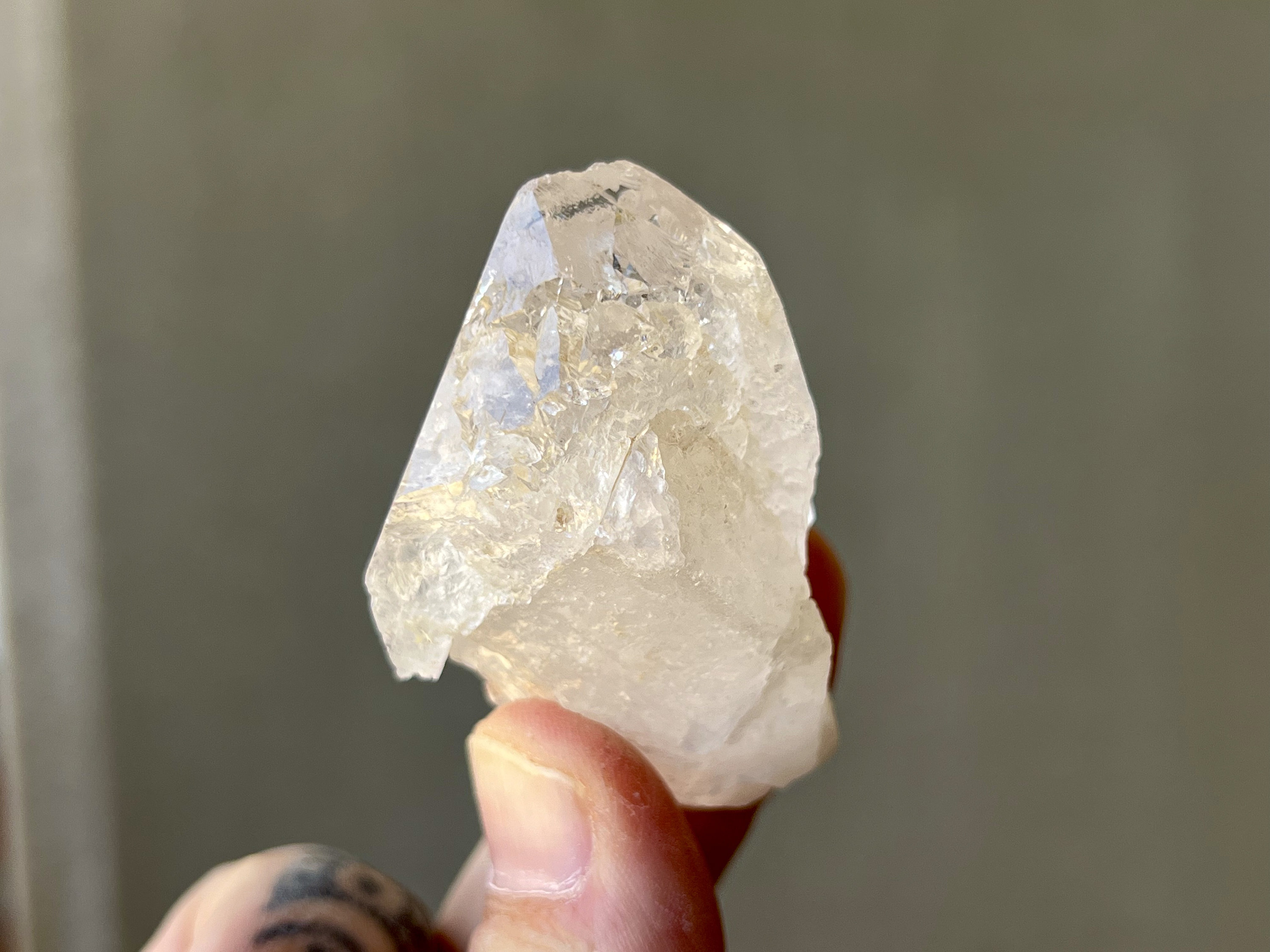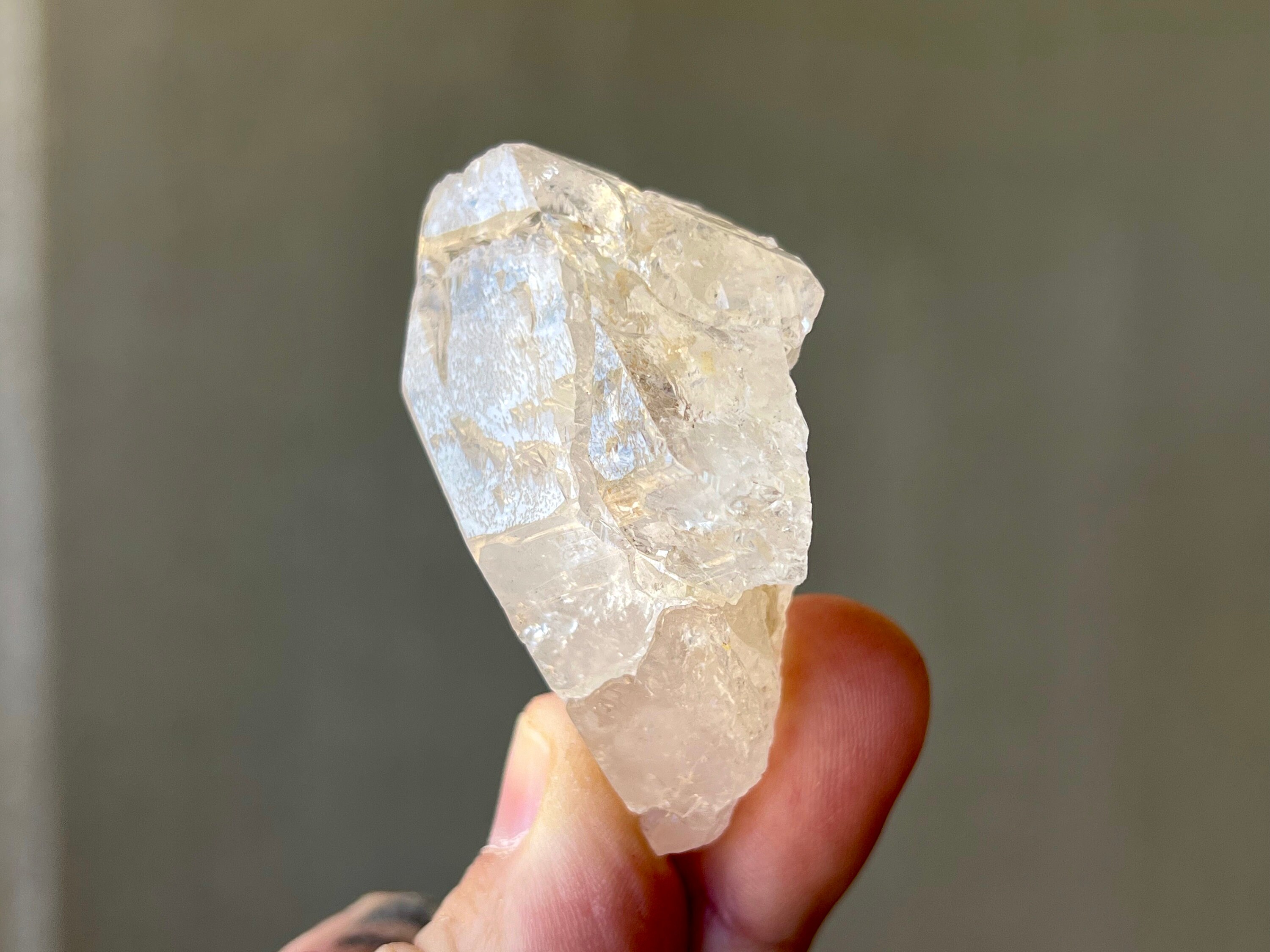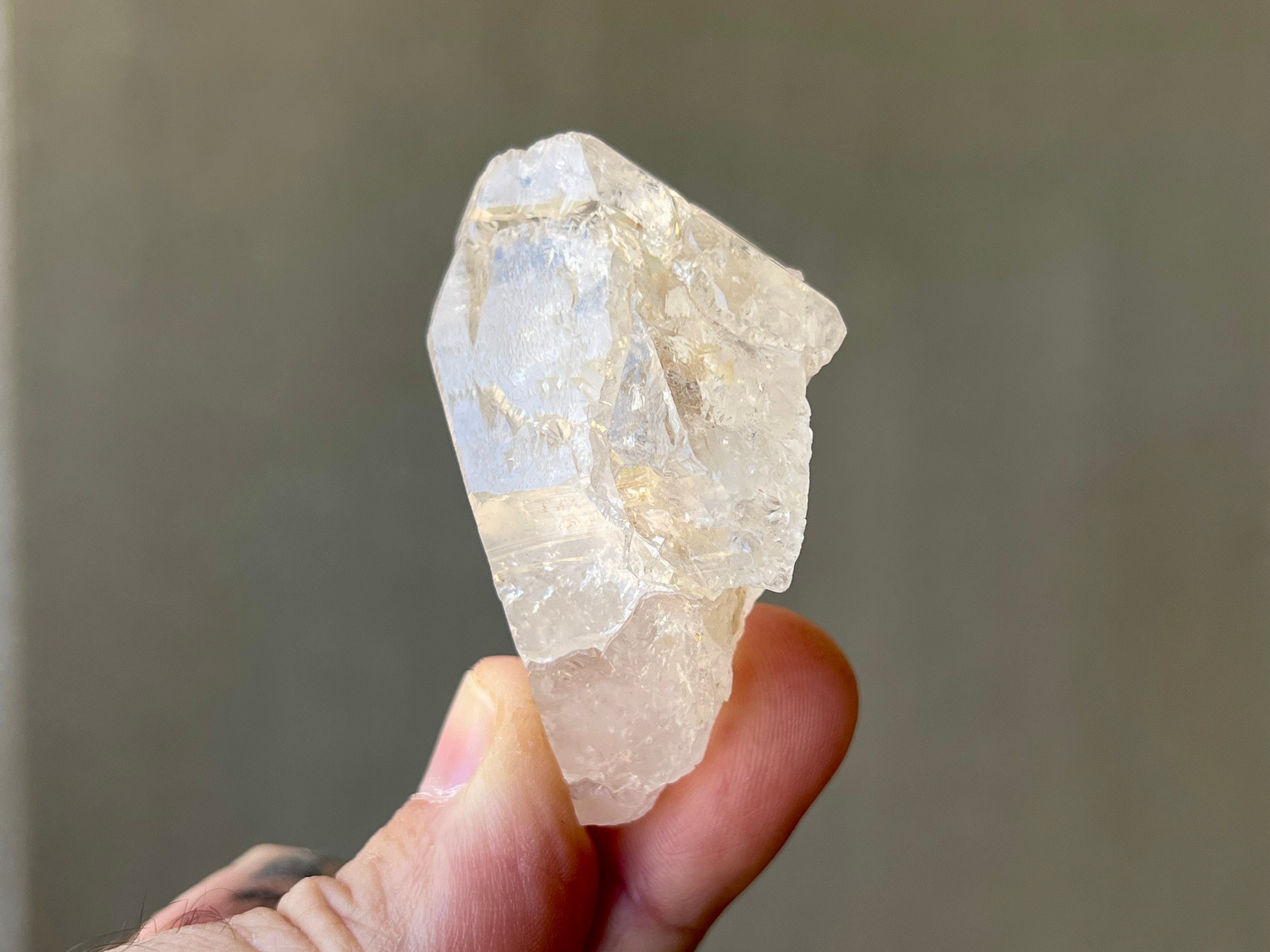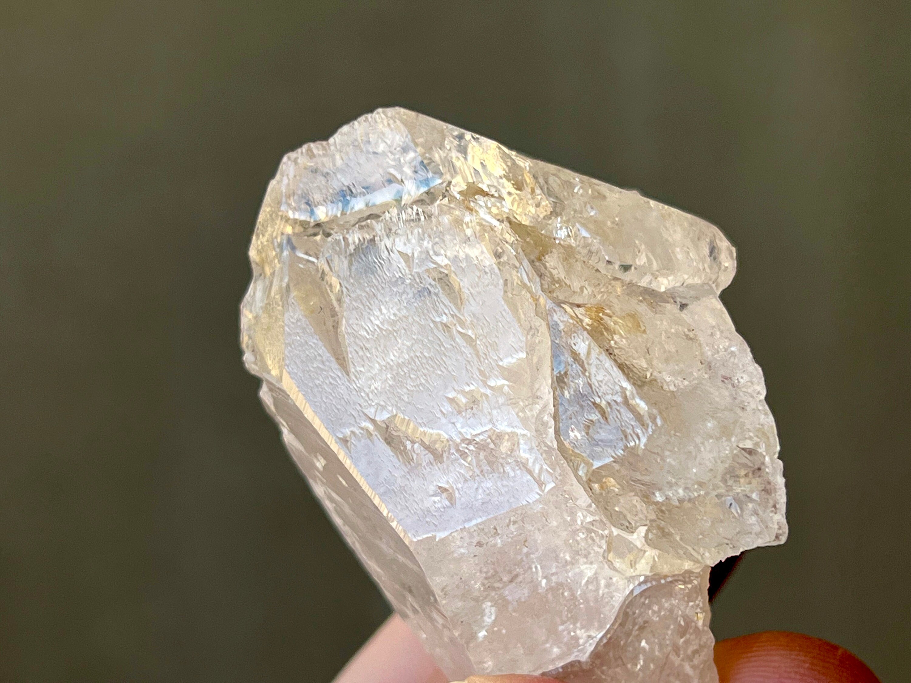 Outstanding luster to this very nicely sized Dissolution Quartz crystal with an ethereal quality to it and beautiful hydrothermal etchings and textures. What makes this crystal very special is the presence of some *very* prominent trigonic imprints on the main facet, as pictured in Photo 1. These are very well-defined and very deep trigons that are just so beautiful! This is one of the nicest crystals from this collection and has an excellent termination as well.
