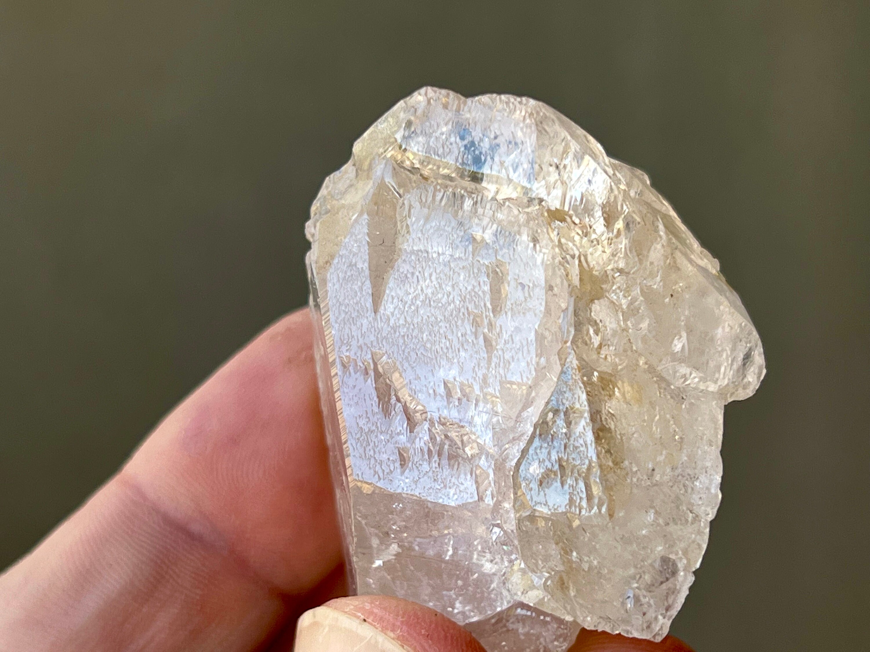Trigonic Quartz refers to crystals that have "trigons" or upside down triangles deeply etched into the face of the crystal. They are similar to Record Keepers, except Record Keepers are upright triangles and trigons are pointing downward.
