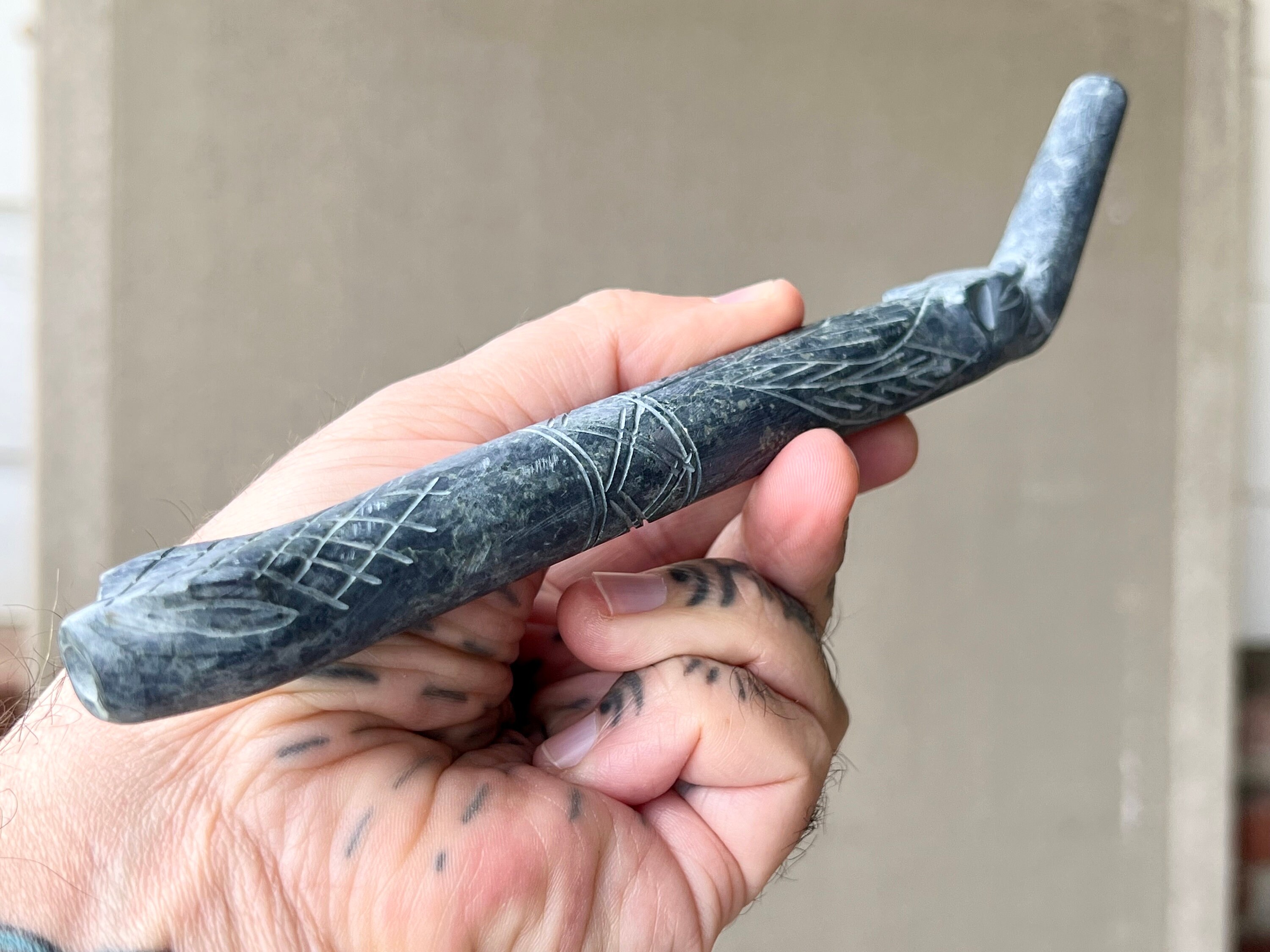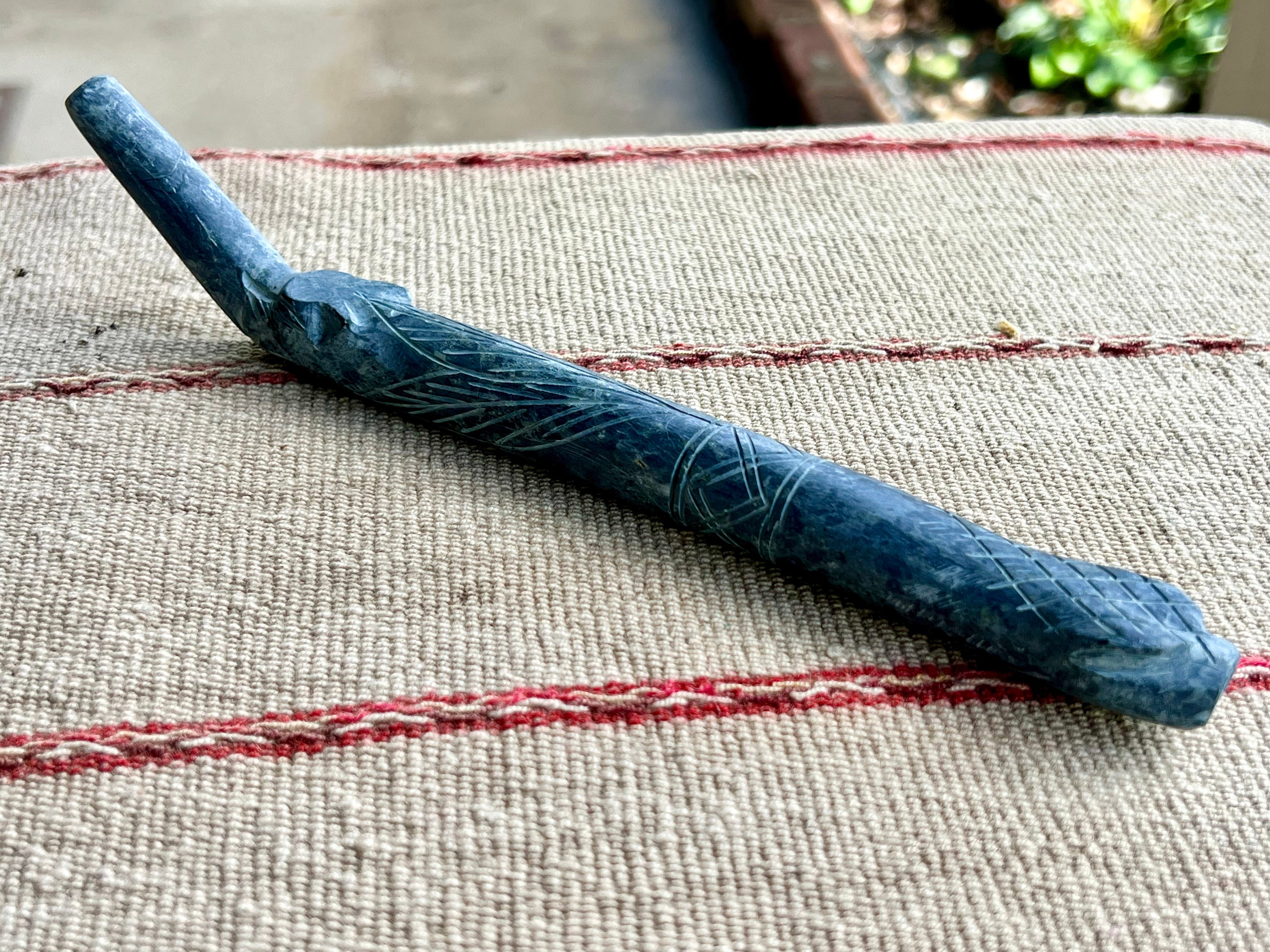 This tepi pipe comes from our master artisans in Peru's Sacred Valley. This is an authentic, high-quality tepi pipe (not a tourist souvenir), hand-carved from Piedra de Machu Picchu, a sacred stone that is abundant in the mountains of the Sacred Valley and in and around Cusco.
