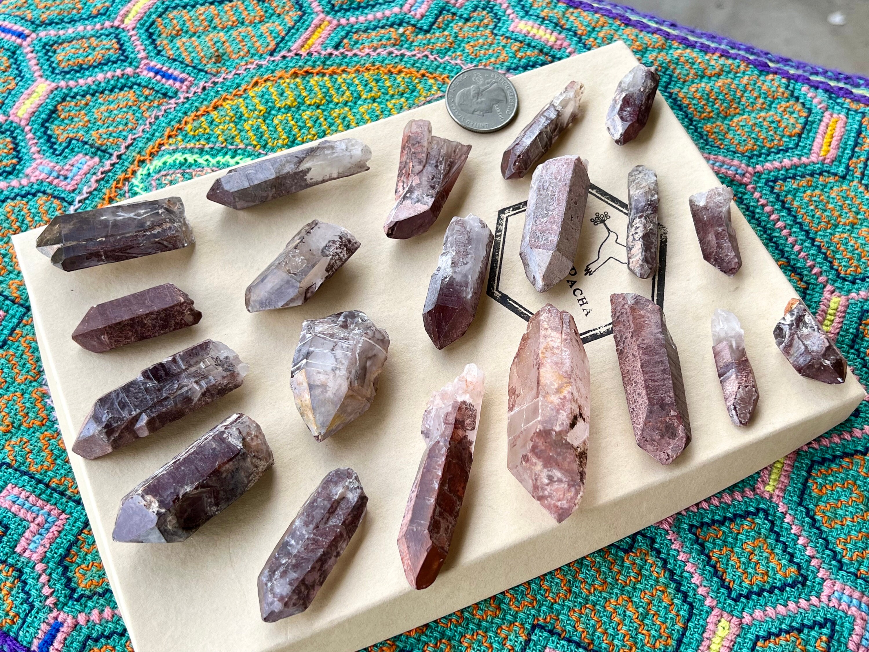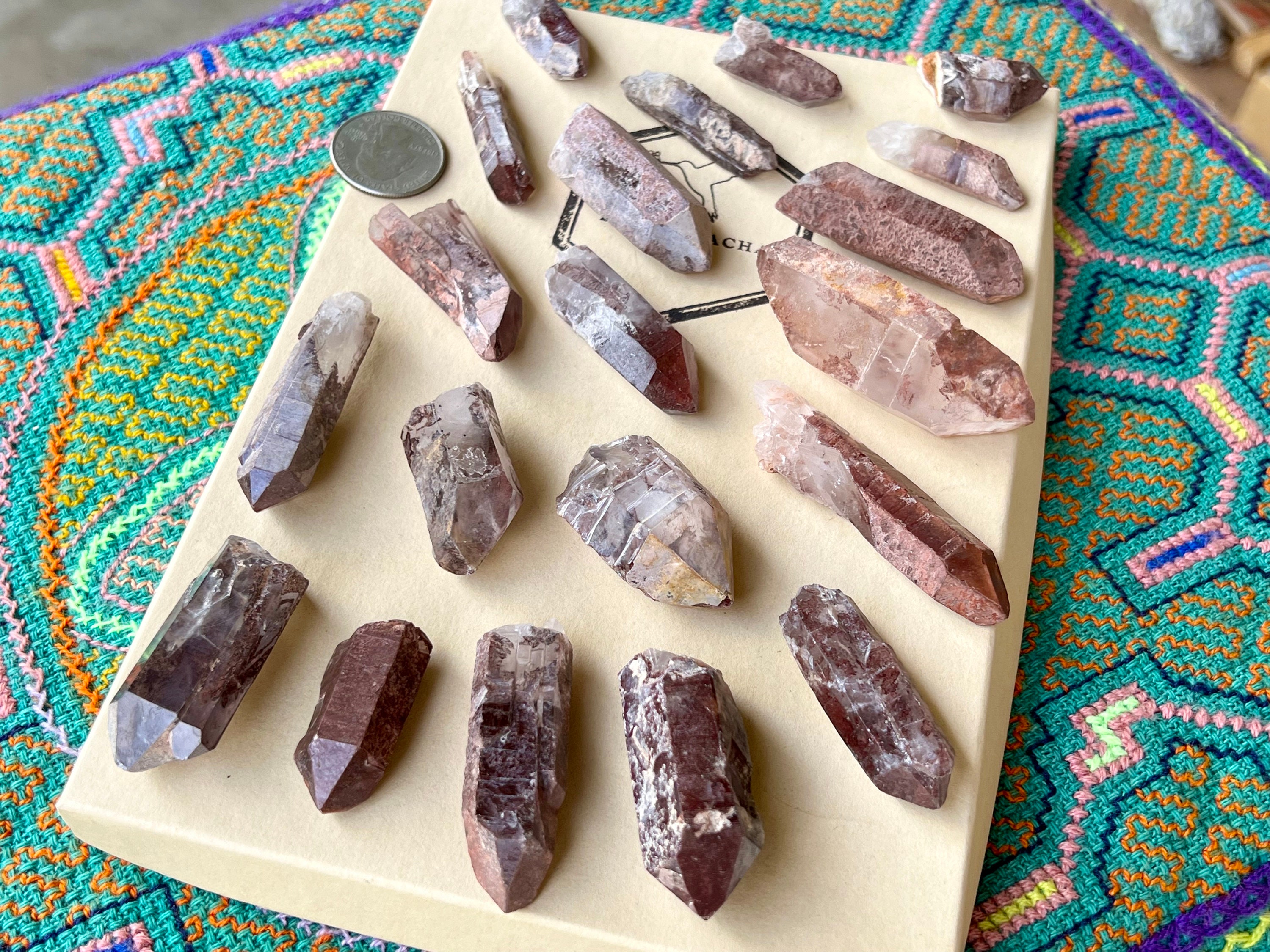 These crystals are nice quality and have deep, robust red hues due to Hematite inclusion. Some have a bit of a frosted exterior. A variety of formations are included and the terminations are excellent. These crystals would be ideal for use in jewelry making, wire wrapping, crystal grids, or even resale, etc.