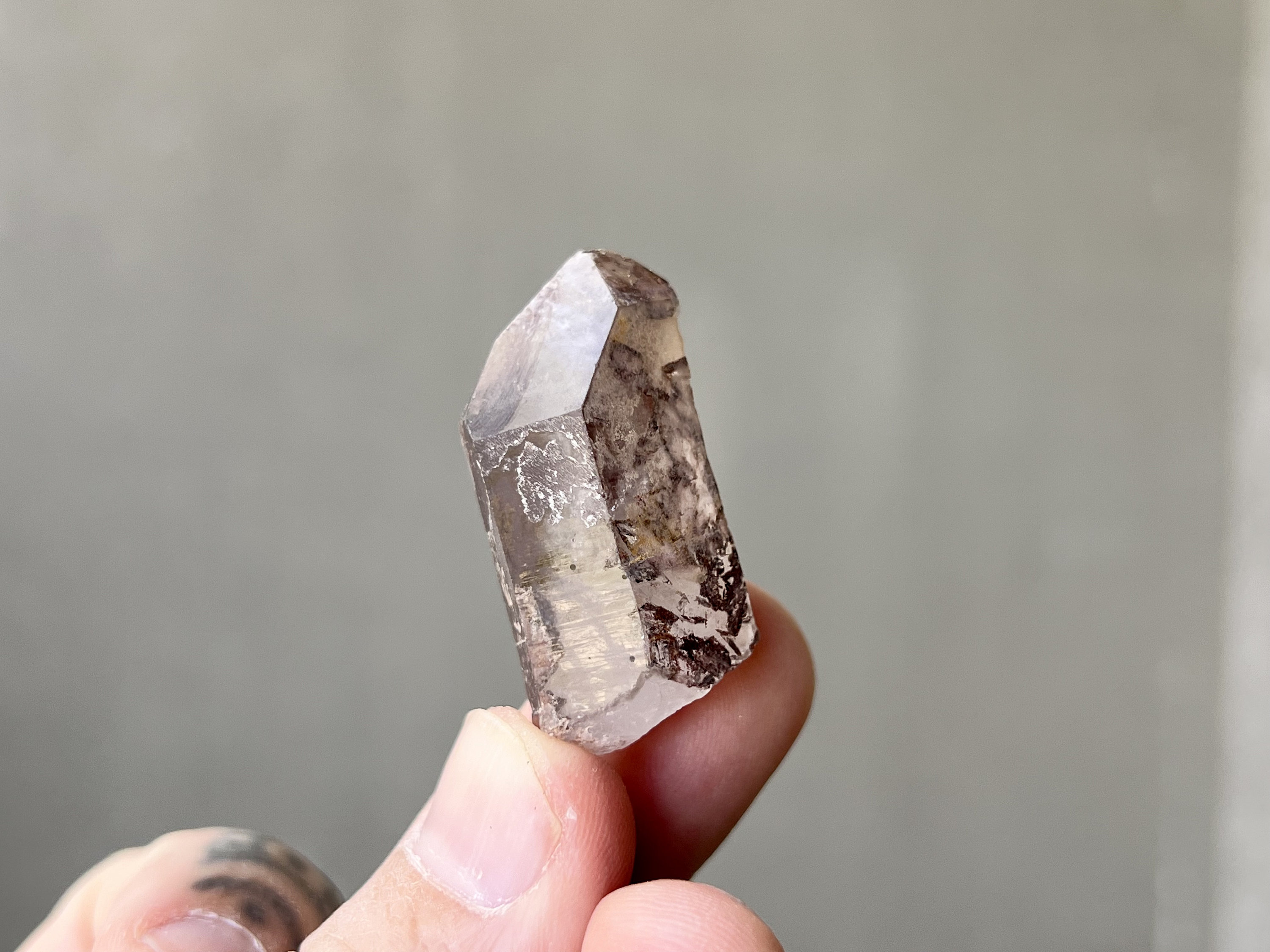 This lot of TWENTY (20) beautiful quartz crystals is from a new find in Madagascar. The crystals from this find have vibrant hues of oranges, rust and reds due to Hematite inclusion. They are sometimes called "Picture Quartz" as the inclusions often will create scenic patterns or pictures on the crystals. Hematite is a powerful stone that absorbs negative (heavy) energy and recycles it into a more positive vibration. It is a wonderful grounding stone to correlate to the Root Chakra, and its properties are amplified by the quartz it encases.