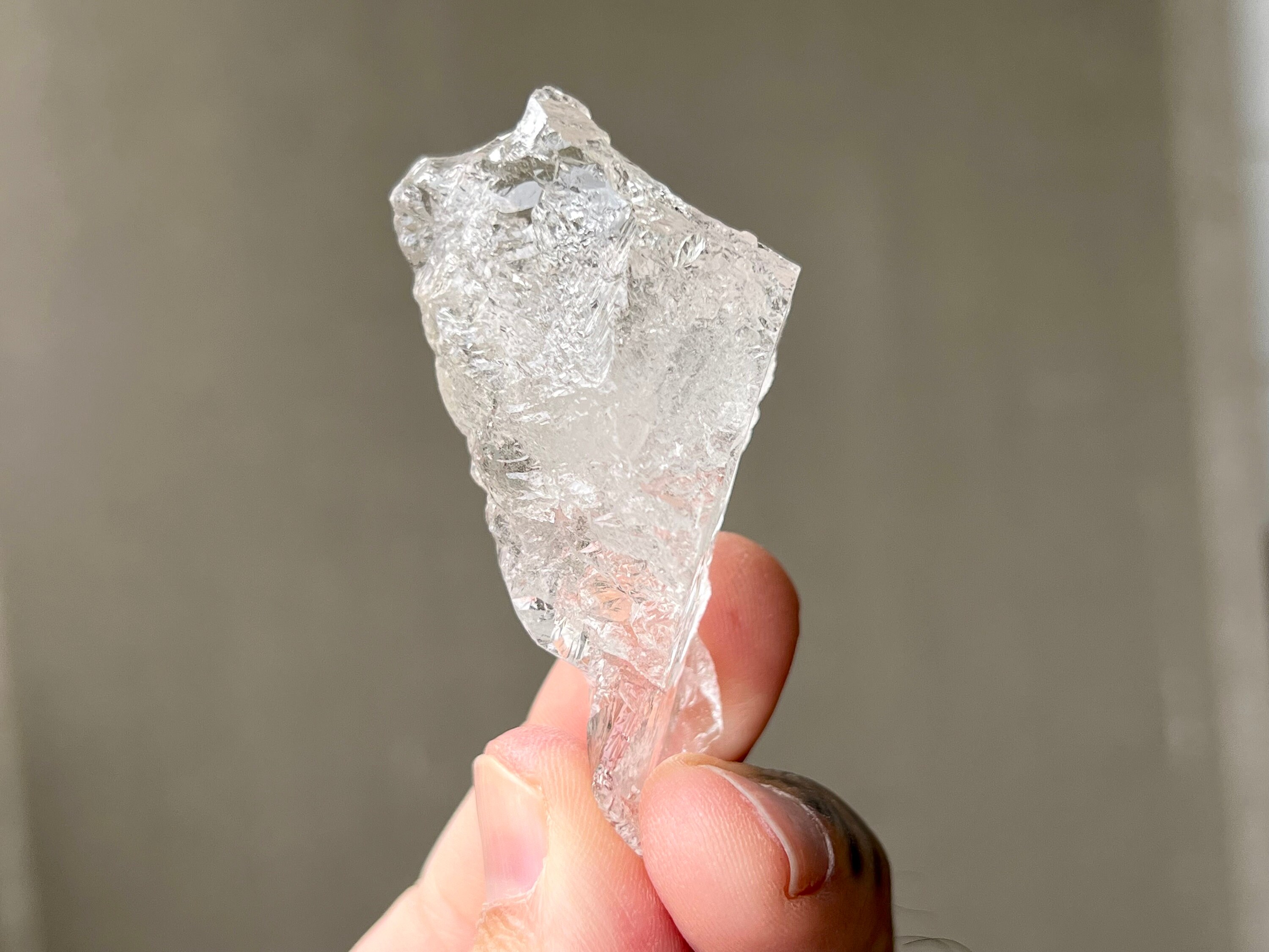 Ice Quartz are characterized by their highly lustrous exterior which is often heavily textured with many individual facets and other textural formations. Physically, they are incredibly reflective and do resemble actual ice! Because of their many facets, these crystals are not "unidirectional" like crystal points are. These crystals emanate their healing energies in all directions.