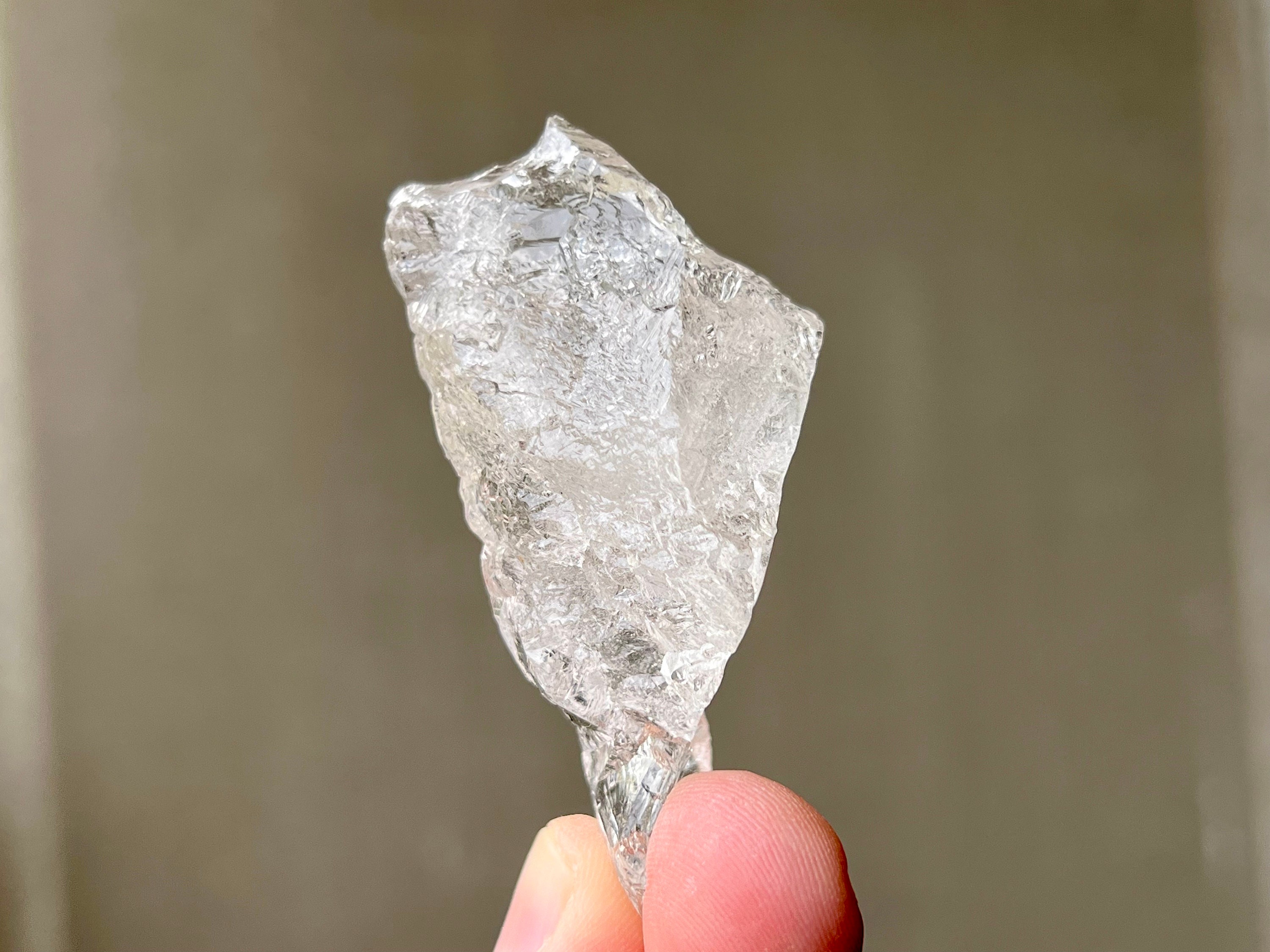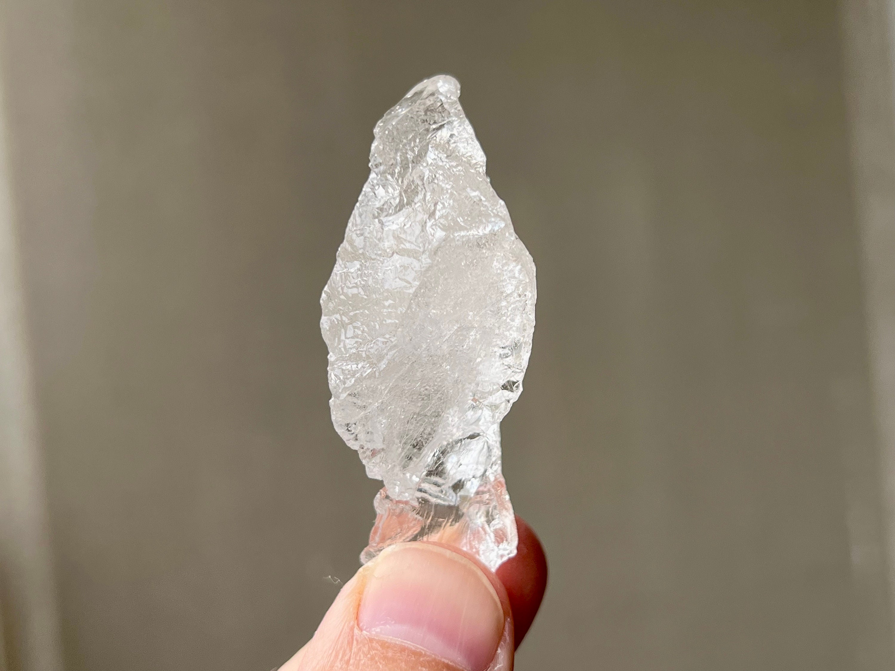 This incredible Quartz crystal comes from a new find (2020) in Corinto, Brazil. Known as Ice Quartz, they are characterized by their highly lustrous exterior which is often heavily textured with many individual facets and other textural formations. Physically, they are incredibly reflective and do resemble actual ice! Their unique formations are due to a hydrothermal solution at their source which comes through in the later stages of development (in the form of very hot, mineralized water most likely) and, over the course of time, actually pulls molecules away, creating these beautiful forms. So these were essentially carved by underground water flow over millions of years!