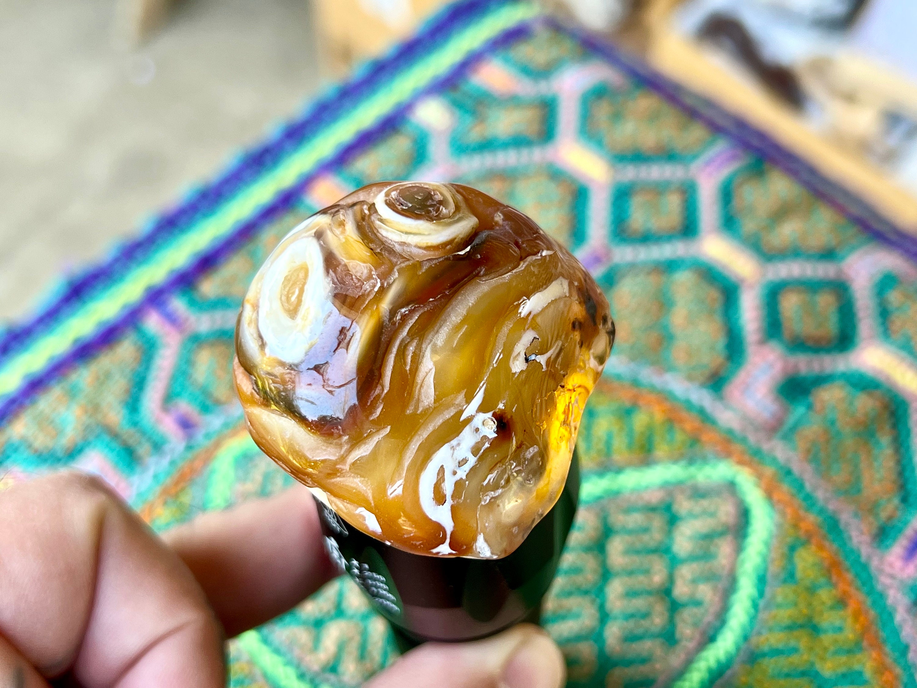 An Enhydro is the term for the natural phenomenon that occurs when water is trapped inside of an Agate (or crystal, etc) during its million-of-years development. In most cases of Enhydro Quartz (or other crystals), only a droplet of water is included, and it may move if contained within an air pocket. In the case of these Enhydro Agates, there is an ample amount of water included, so much that in most cases one can see it move if the Agate is backlit (with a flashlight), and in some cases even hear it swishing around when shaken.