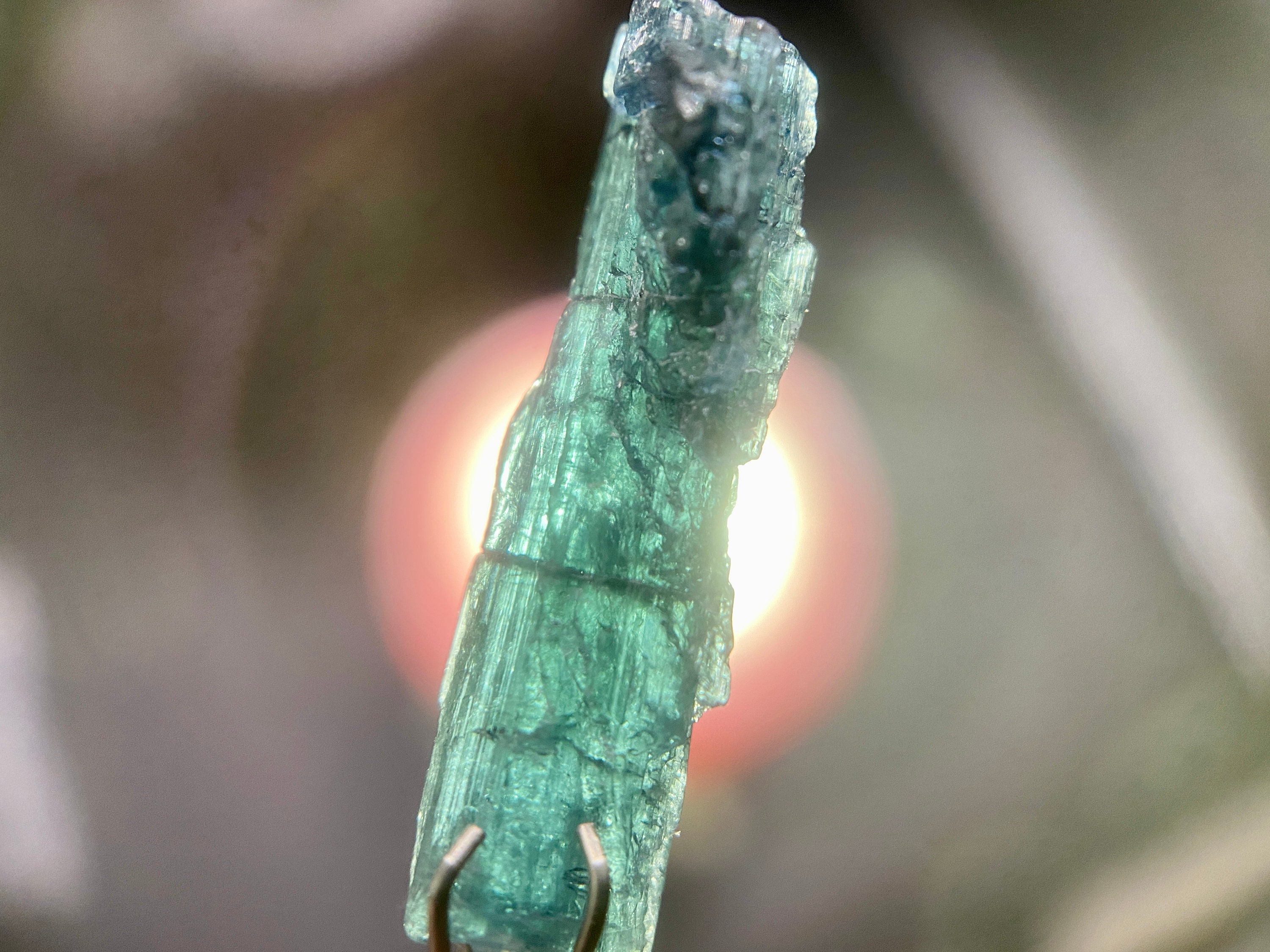 Green Tourmaline purifies and strengthens the nervous system, allowing it to carry greater amounts of Life Force (Prana Energy). As more energy is carried within the physical body, higher degrees of consciousness can be maintained. It is a wonderful protection stone, deal for sealing holes in the aura that leave one vulnerable to negativity.