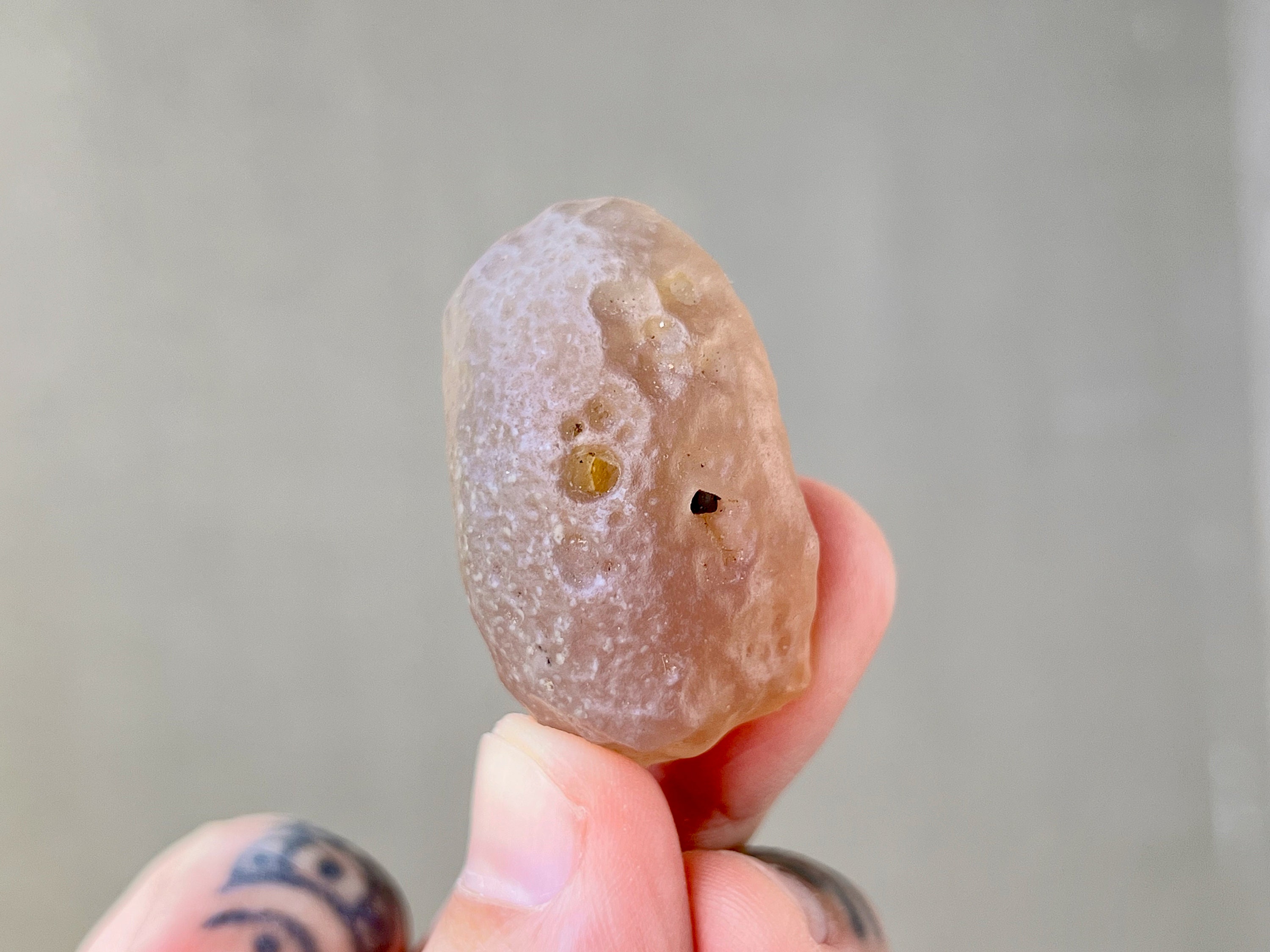 Gobi Agates are found in the Gobi Desert of Northern China and Inner Mongolia, and are a combination of Agate and Chalcedony (both of the Quartz family) that have been tumbled and smoothed by the desert winds and sands in the region in which they're found.
