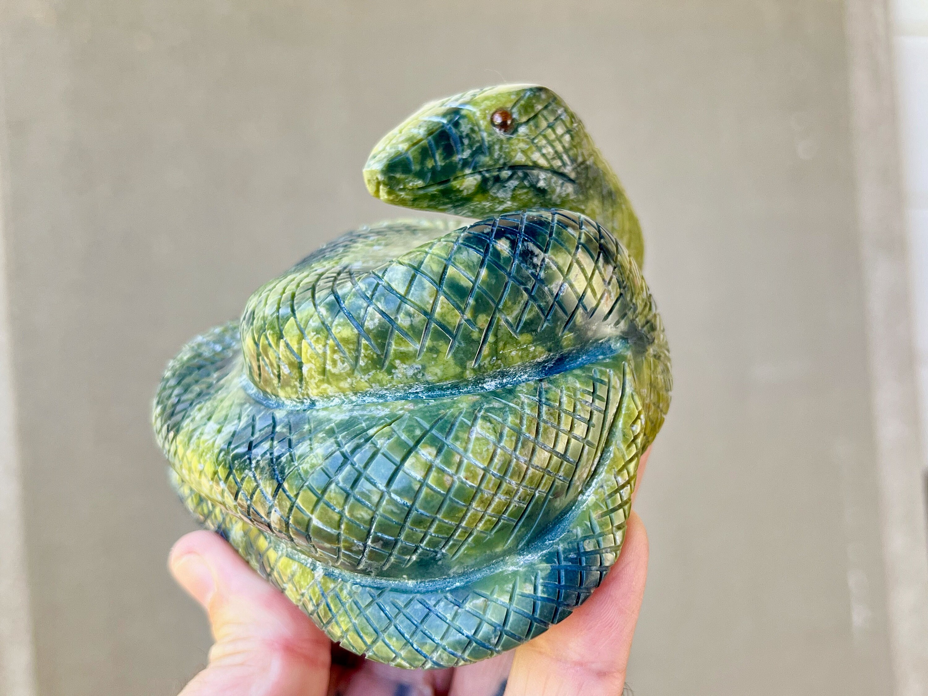 Fierce and majestic! This is a magnificent serpent statue with such vibrant colors and beautiful detail.