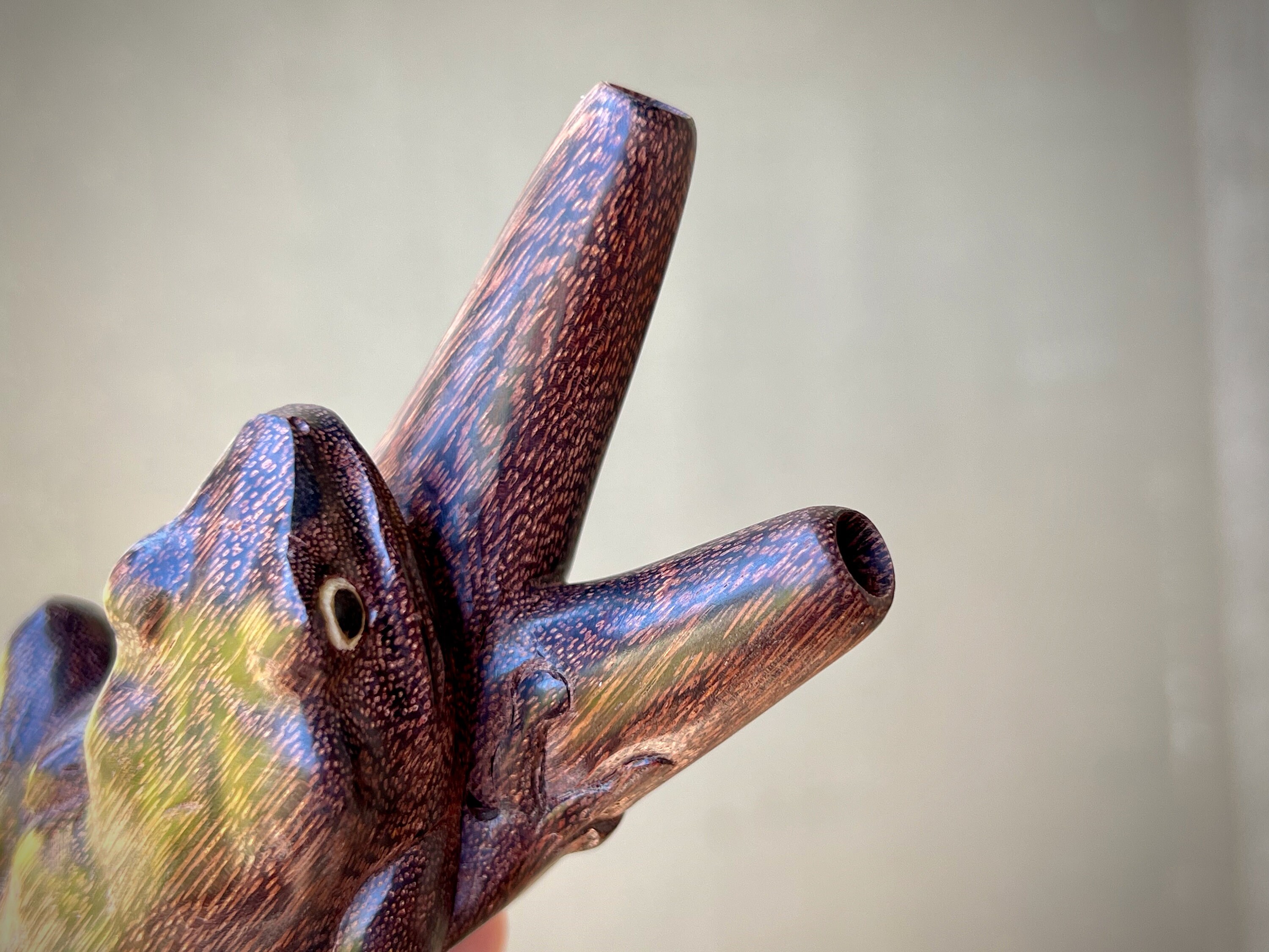 At HanaqPacha, we work with master woodcarvers all over the world who create outstanding custom works of art for us. These exquisite pipes are made with high-grade, indigenous wood and handcrafted with precision. Each design is extremely high-quality, destined to last a lifetime and made with loving intention for ceremonial use. The attention to detail is extraordinary and their functionality is excellent.