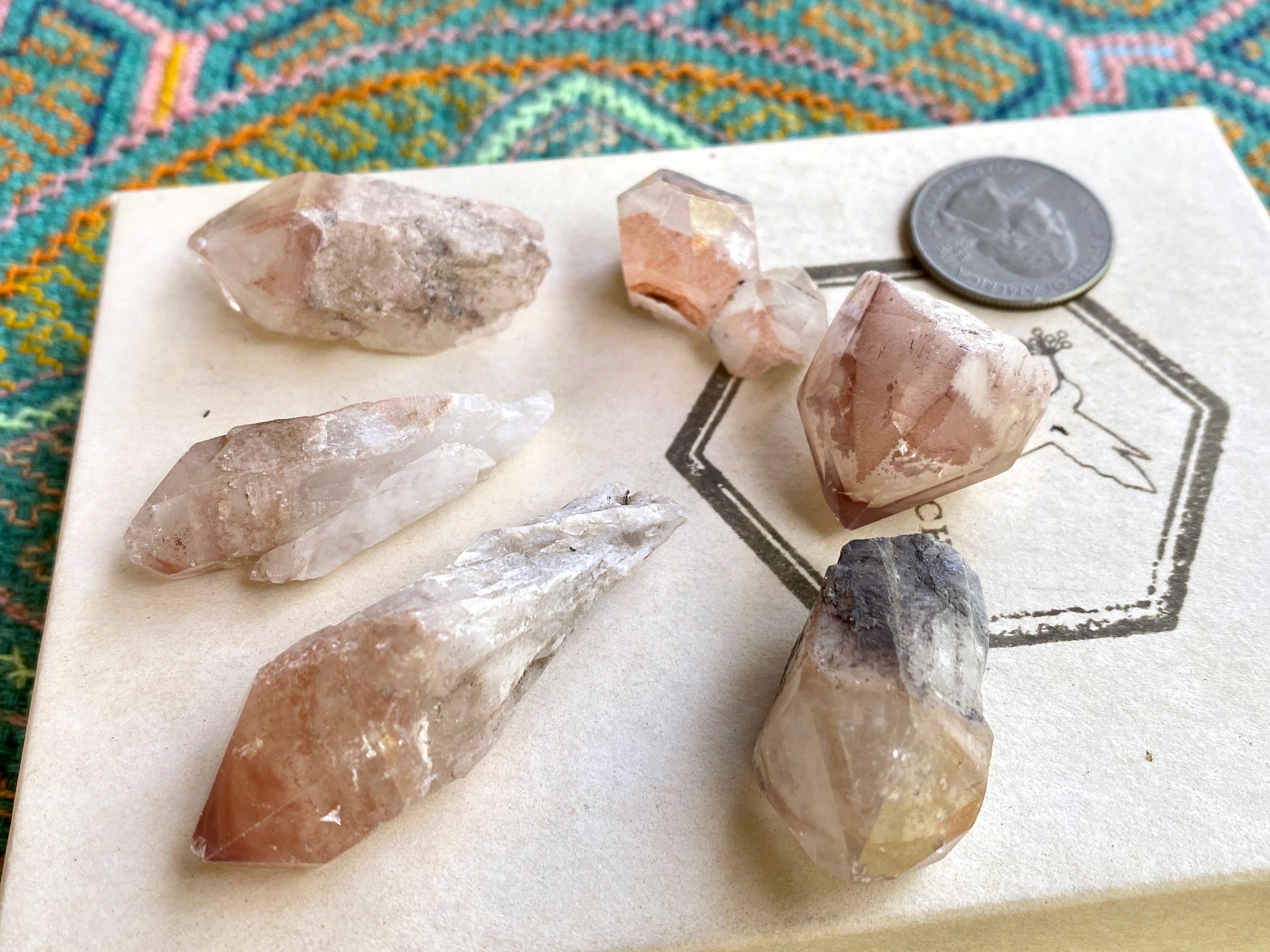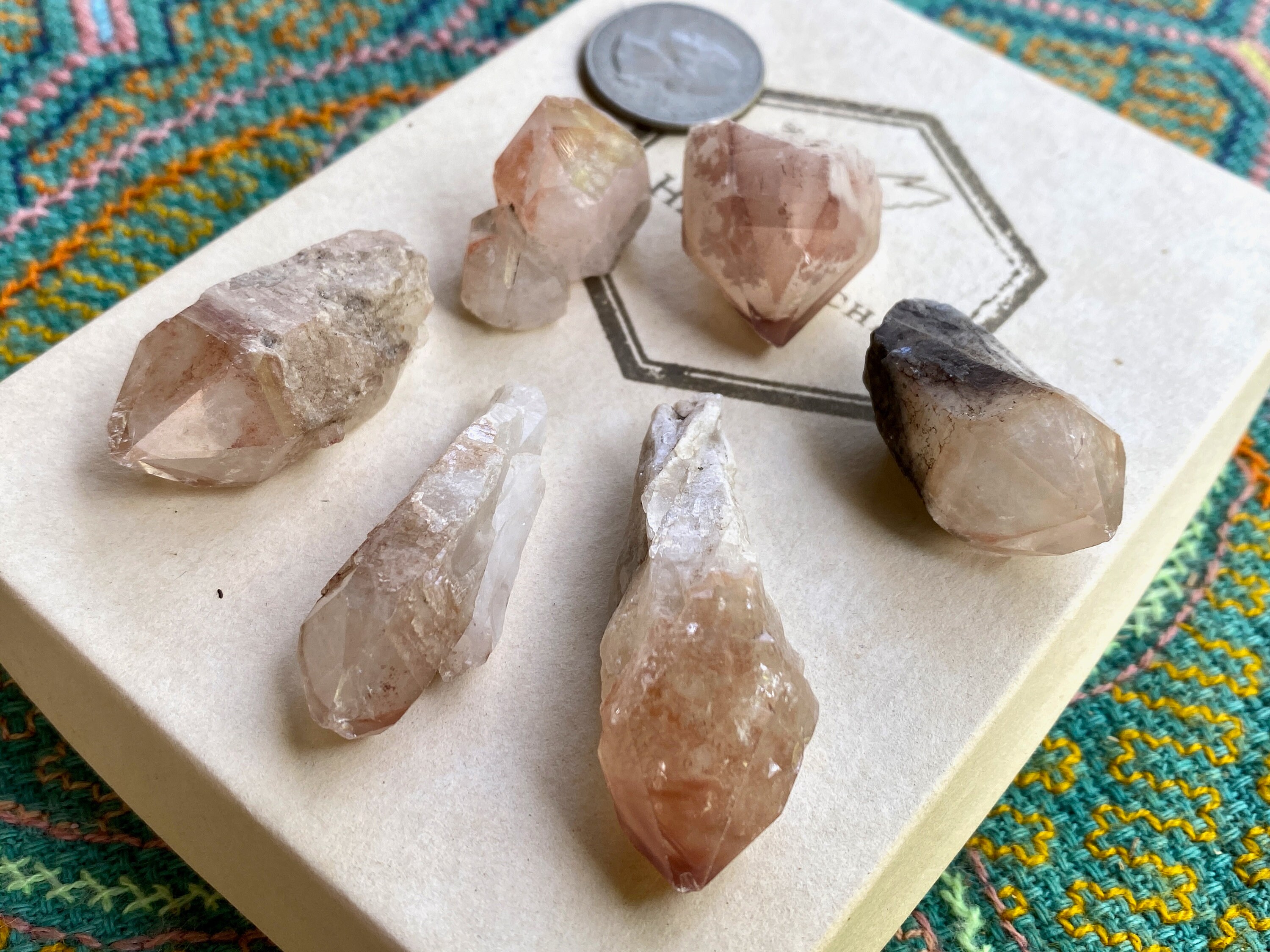 This lot of SIX crystals is from a recent find in Minas Gerais, Brazil. Many of the crystals from this small find featured beautiful pale pink inclusions of Lithium. Lithium has a strong relaxing, balancing and calming effect. Because of this it is widely known and used for many emotional issues, especially relief of stress and anxiety.