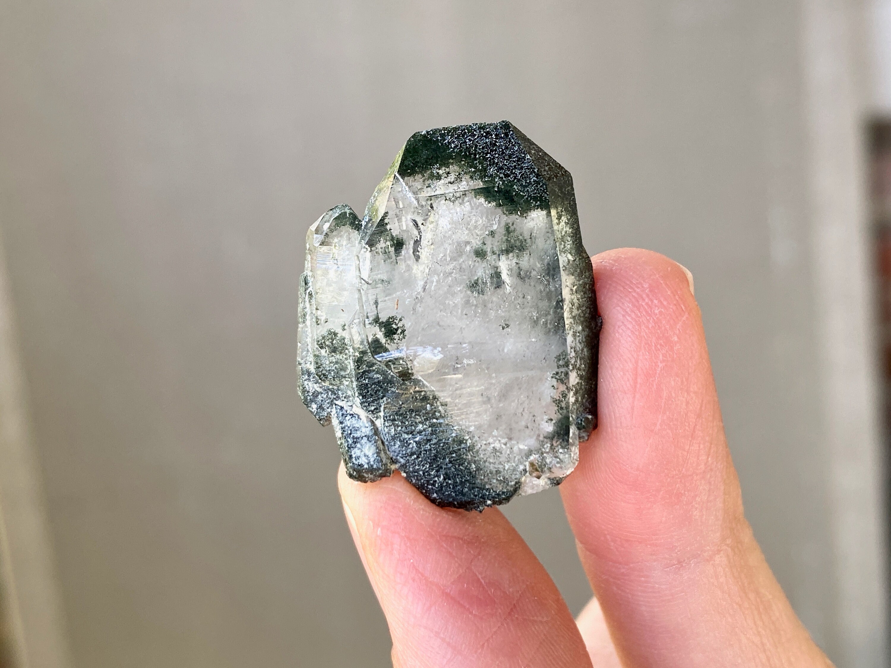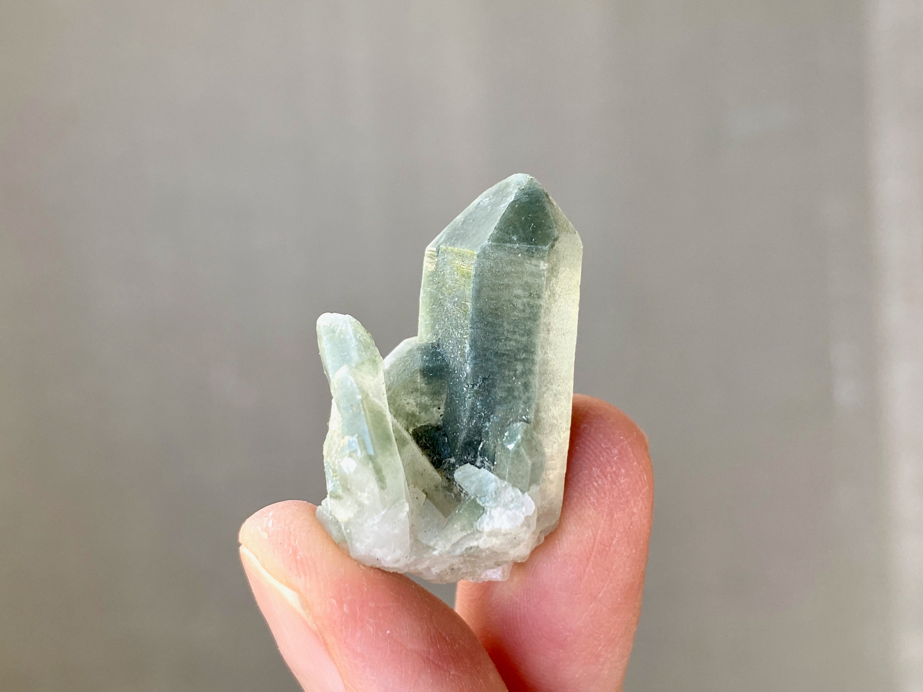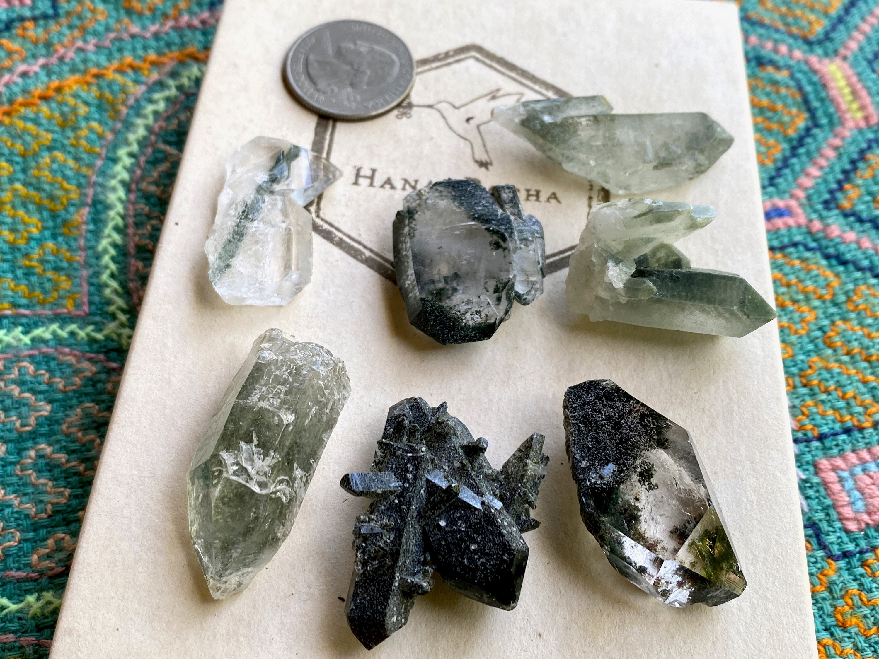 This lot of SEVEN spectacular Phantom Quartz crystals is from a recent find in Balochistan, Pakistan. This small find yielded crystals with vibrant inclusions of Green Chlorite. Green Chlorite is one of the most powerful purifiers and heart healers in the mineral kingdom. When combined with quartz, these healing properties are significantly amplified, in both the physical body and auric body.