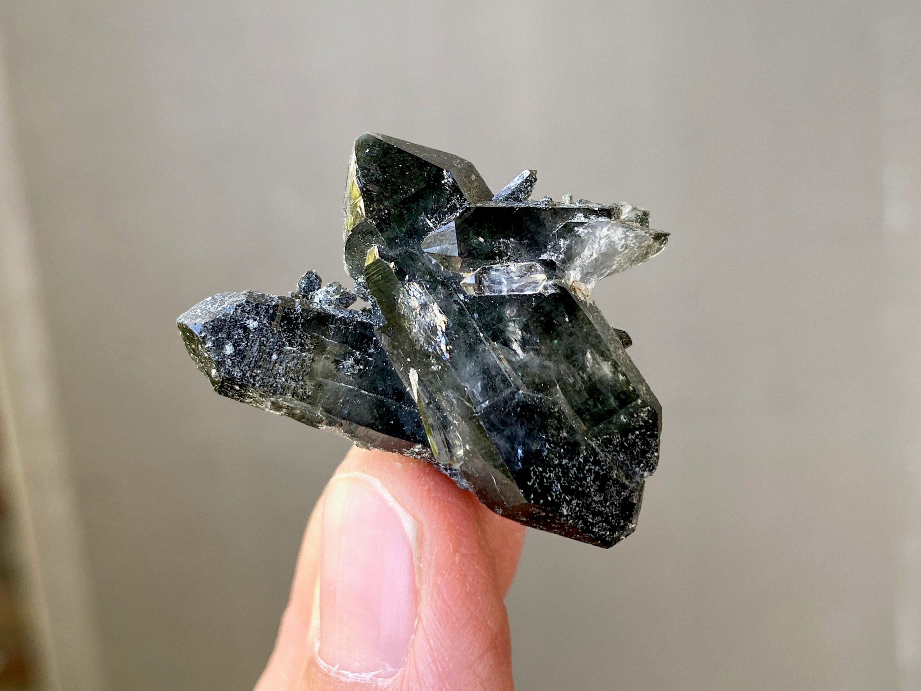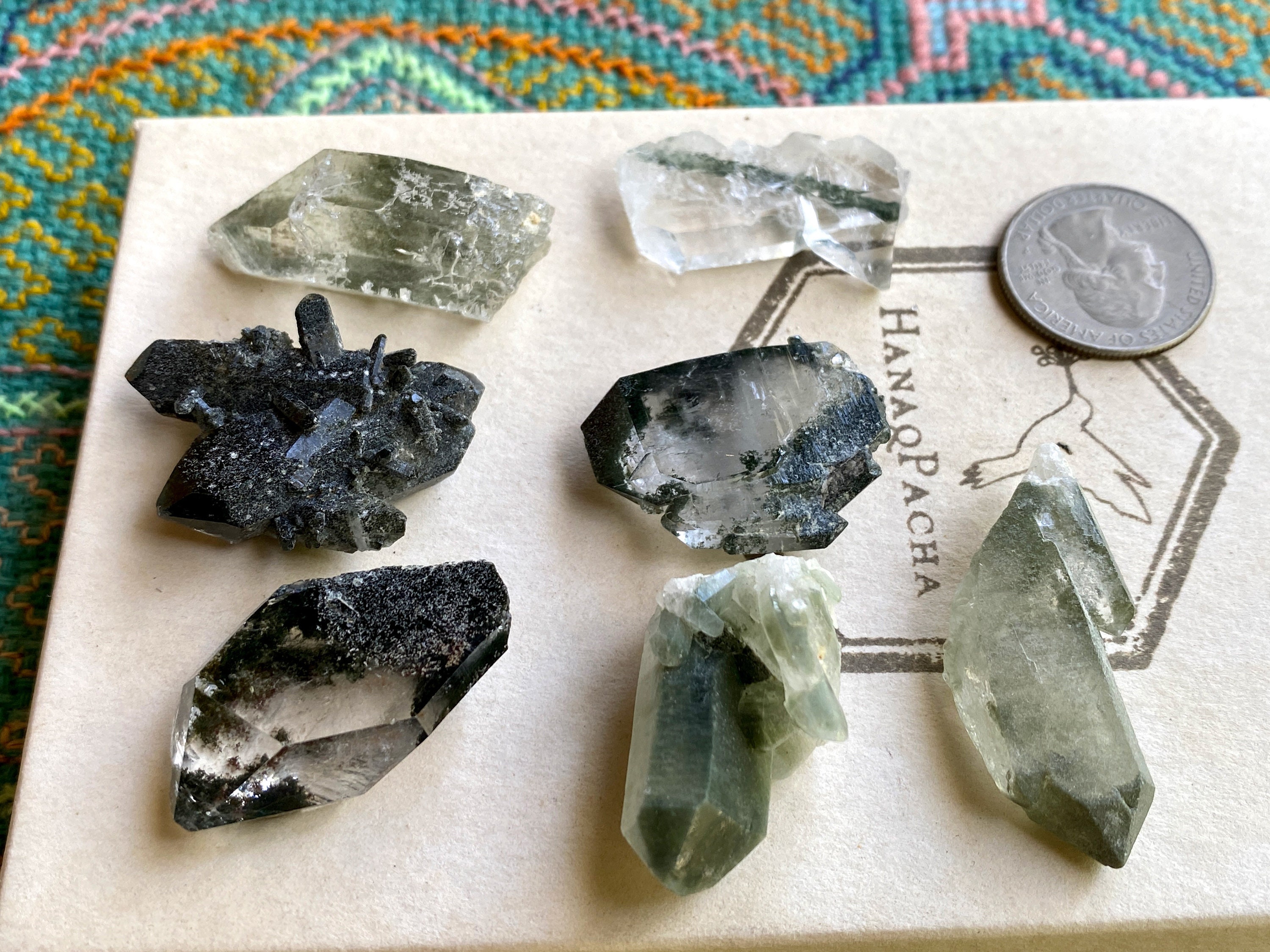 A great collection of crystals from this wonderful find! Each of these crystals has inclusions of vibrant Green Chlorite, ranging from deep forest green to a brighter green. This lot includes a variety of beautiful formations, some tabular with Faden lines, all with excellent terminations. These crystals are smaller in size and may be ideal for use in crystal grids, jewelry, etc.