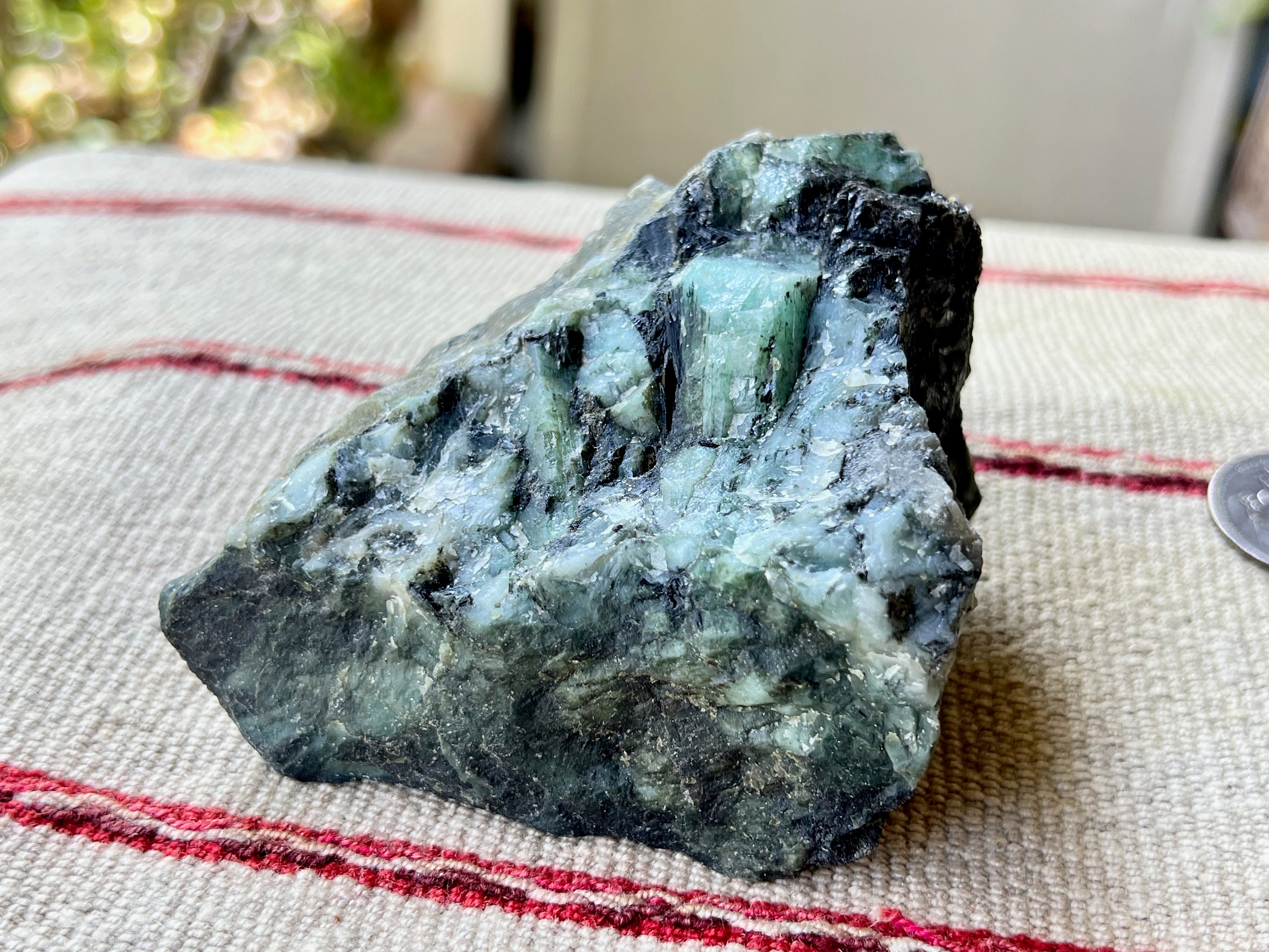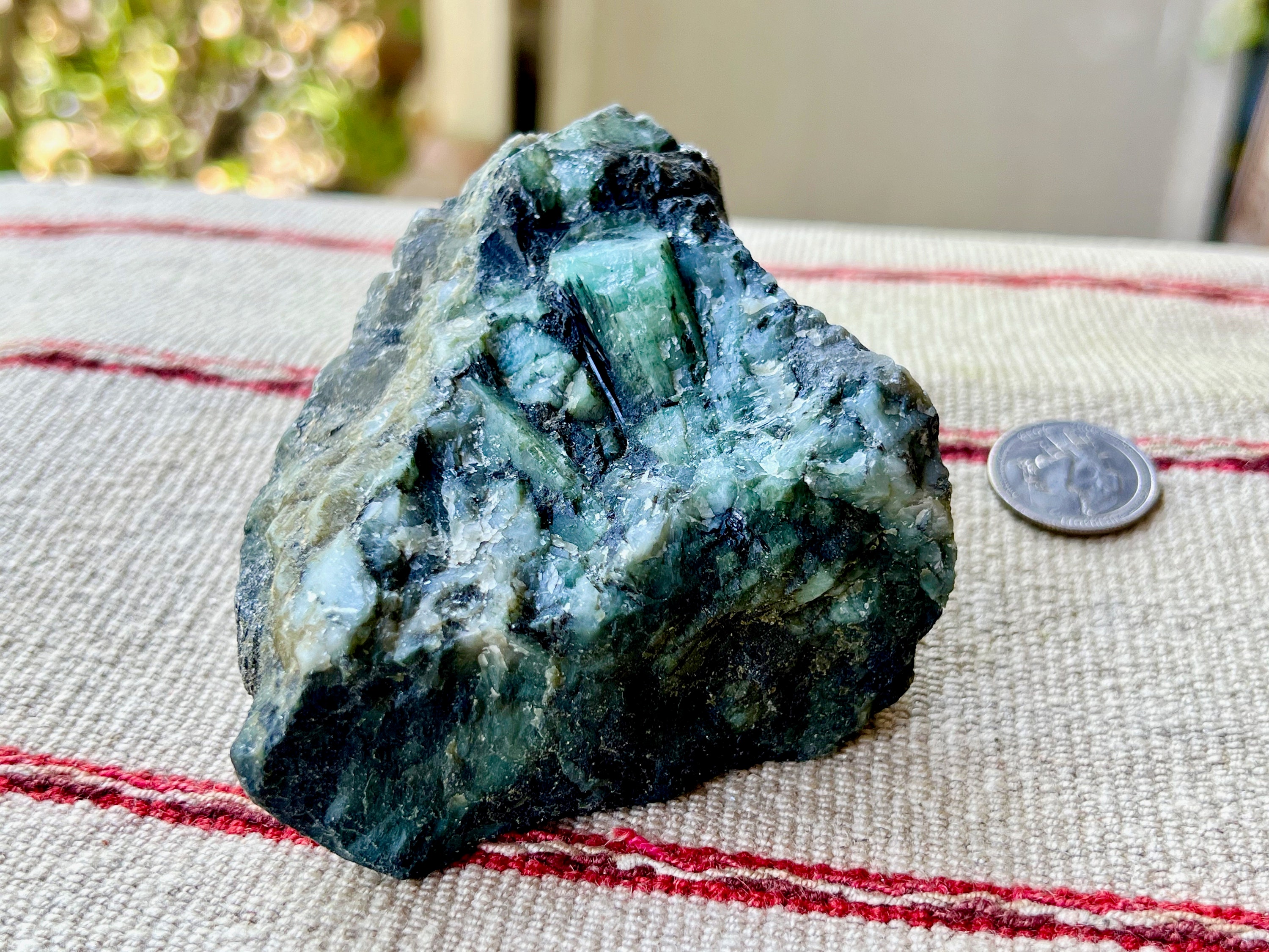 This is an incredible natural Emerald crystal from a recent find in Bahia, Brazil. Emerald is a variety of the Beryl mineral family, colored green by trace amounts of Chromium and sometimes Vanadium. Emerald is one of the most powerful crystals for heart healing and heart opening. It is also a supremely powerful crystal to aid in attracting abundance into one's life.