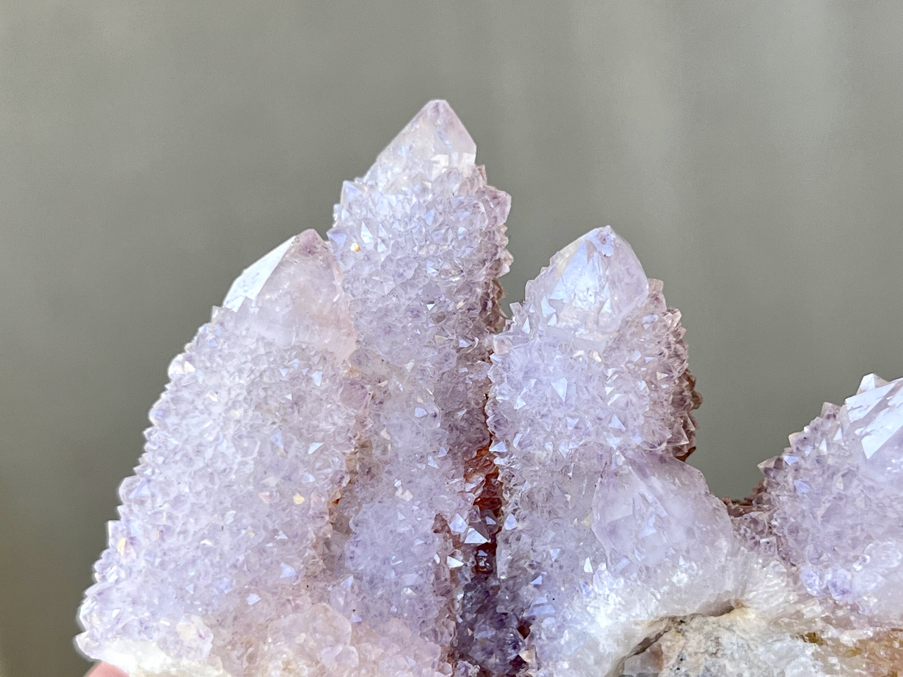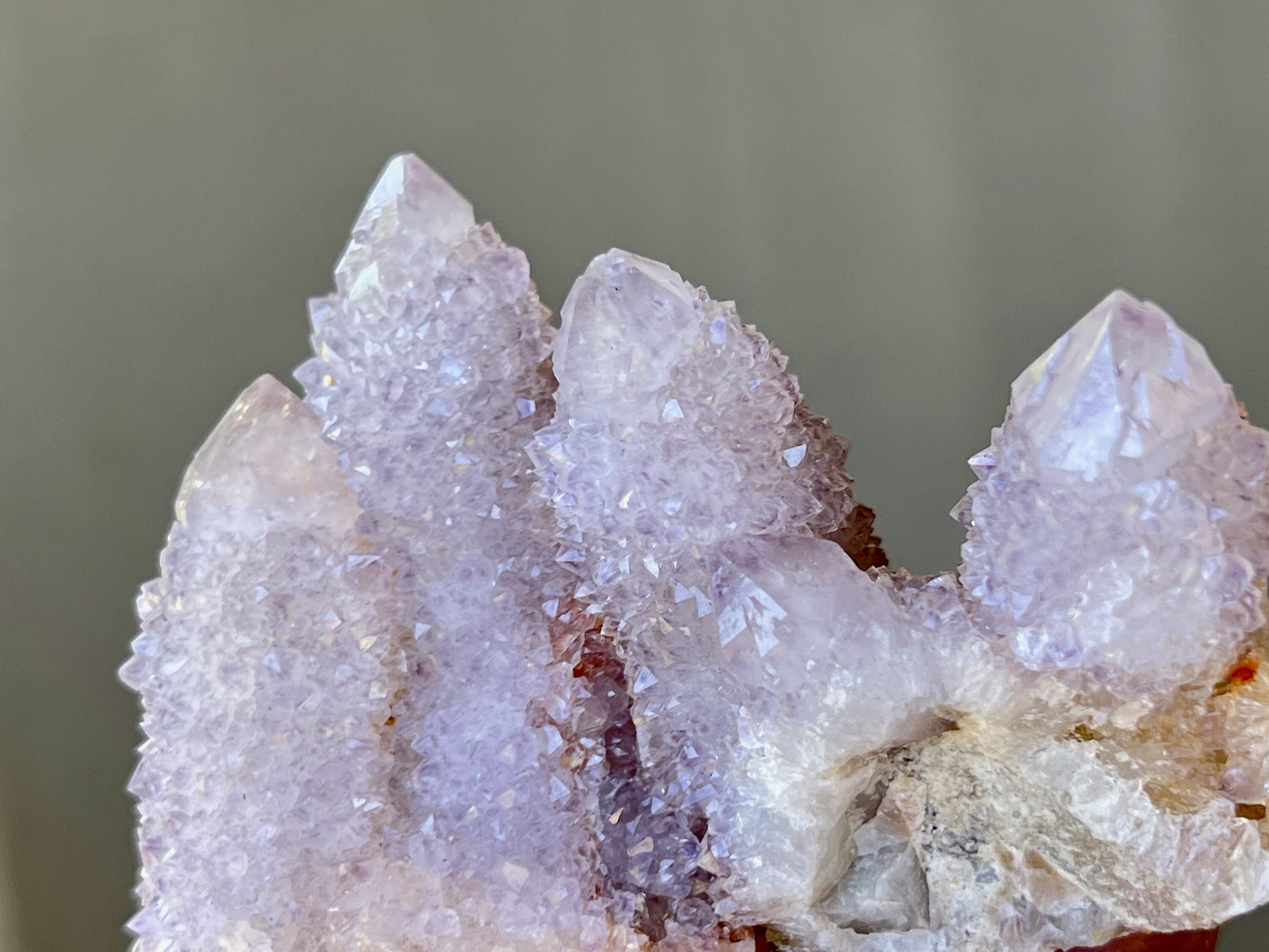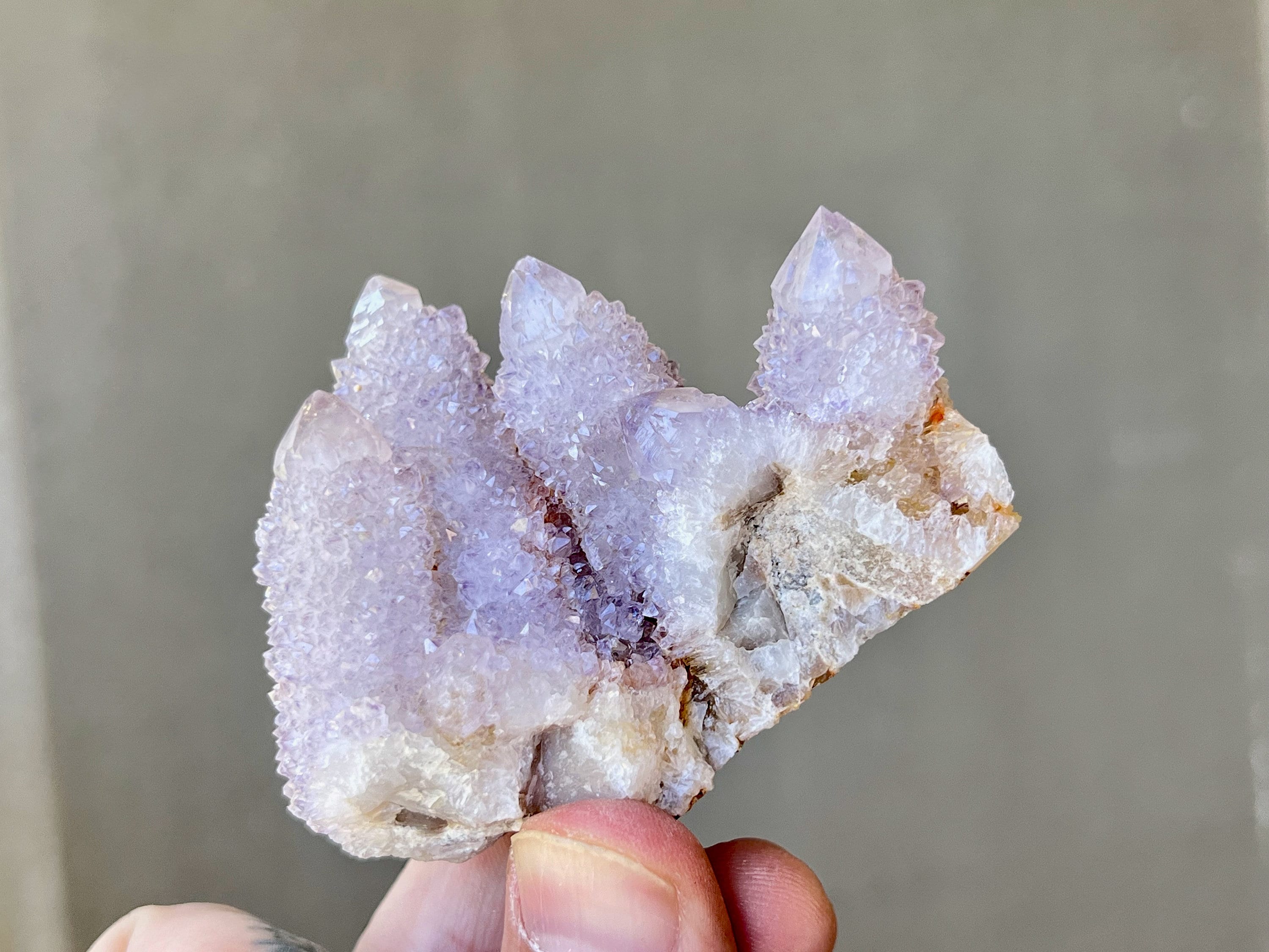 Sometimes called “Cactus Quartz” due to their unique growth pattern or even "Fairy Quartz," these ethereal crystals are entirely natural and include a combination of Quartz and Amethyst (as well as Citrine in some instances), and are characterized by tiny, druzy crystals covering the entire shaft of the primary crystal. Spirit Quartz is a crystal associated with the Crown Chakra, though it activates all chakras. It is a wonderful crystal for dream work, astral travel, protection and shamanic journeying.