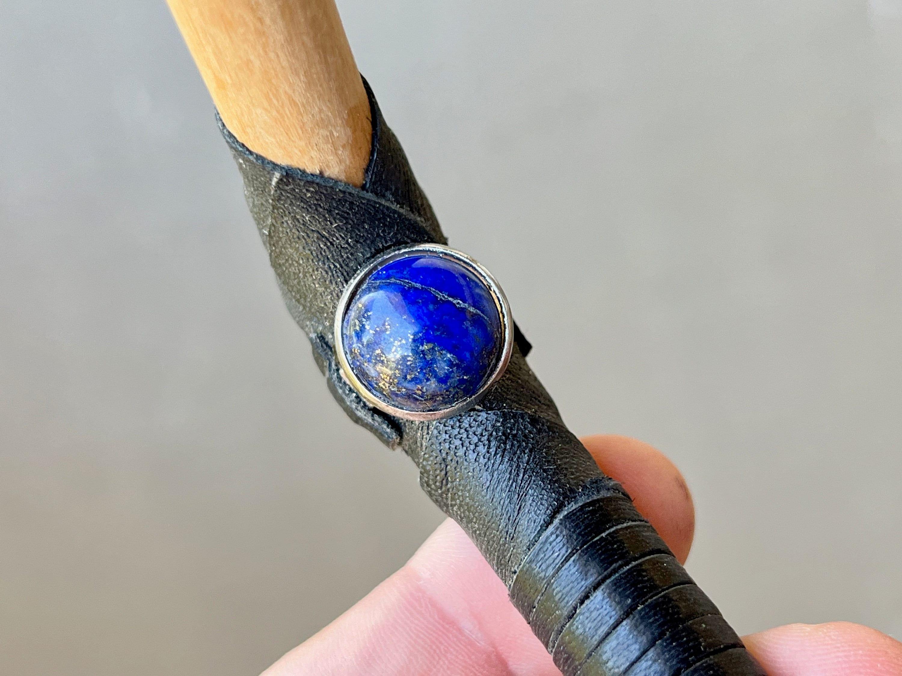 Additional ornamentation: Lapis Lazuli stone in bezeled brass setting