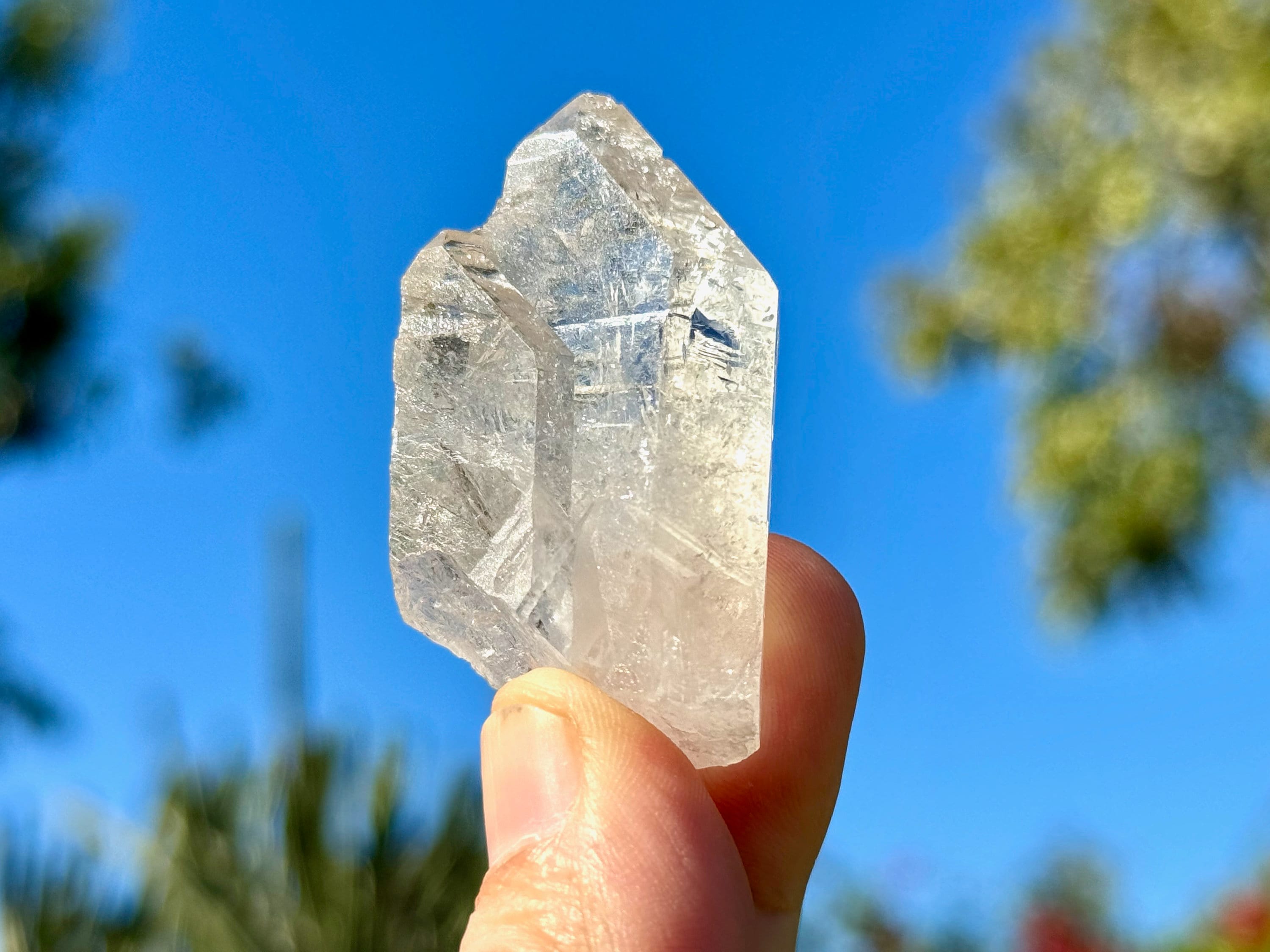 This unique Dissolution Quartz Crystal is from a recent find in Corinto, Brazil. Formed over the course of millions of years, these crystals are hydrothermally etched, and are referred to as "dissolution" crystals. What this means is that, they form in the ground as crystals and a hydrothermal solution at their source comes through at some point in the later stages of development (in the form of very hot, mineralized water most likely) and, over the course of time, actually pulls molecules away, creating these even more beautiful forms. So these were essentially carved and molded by underground water flow over millions of years! These crystals carry an energy of evolution paired with activation of creativity, to evolve your desires into productive pursuits and get your creative juices flowing.