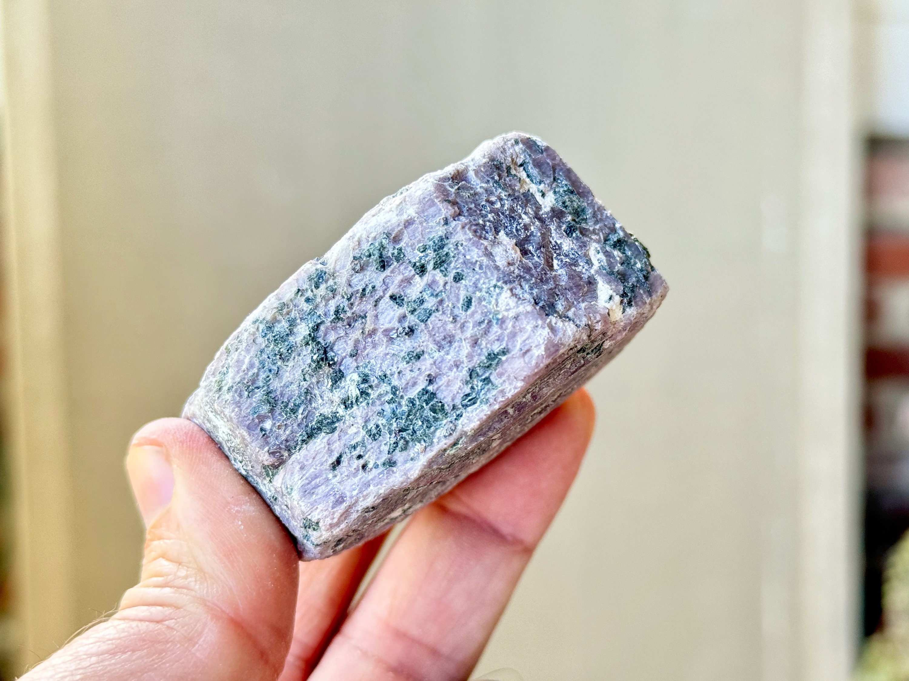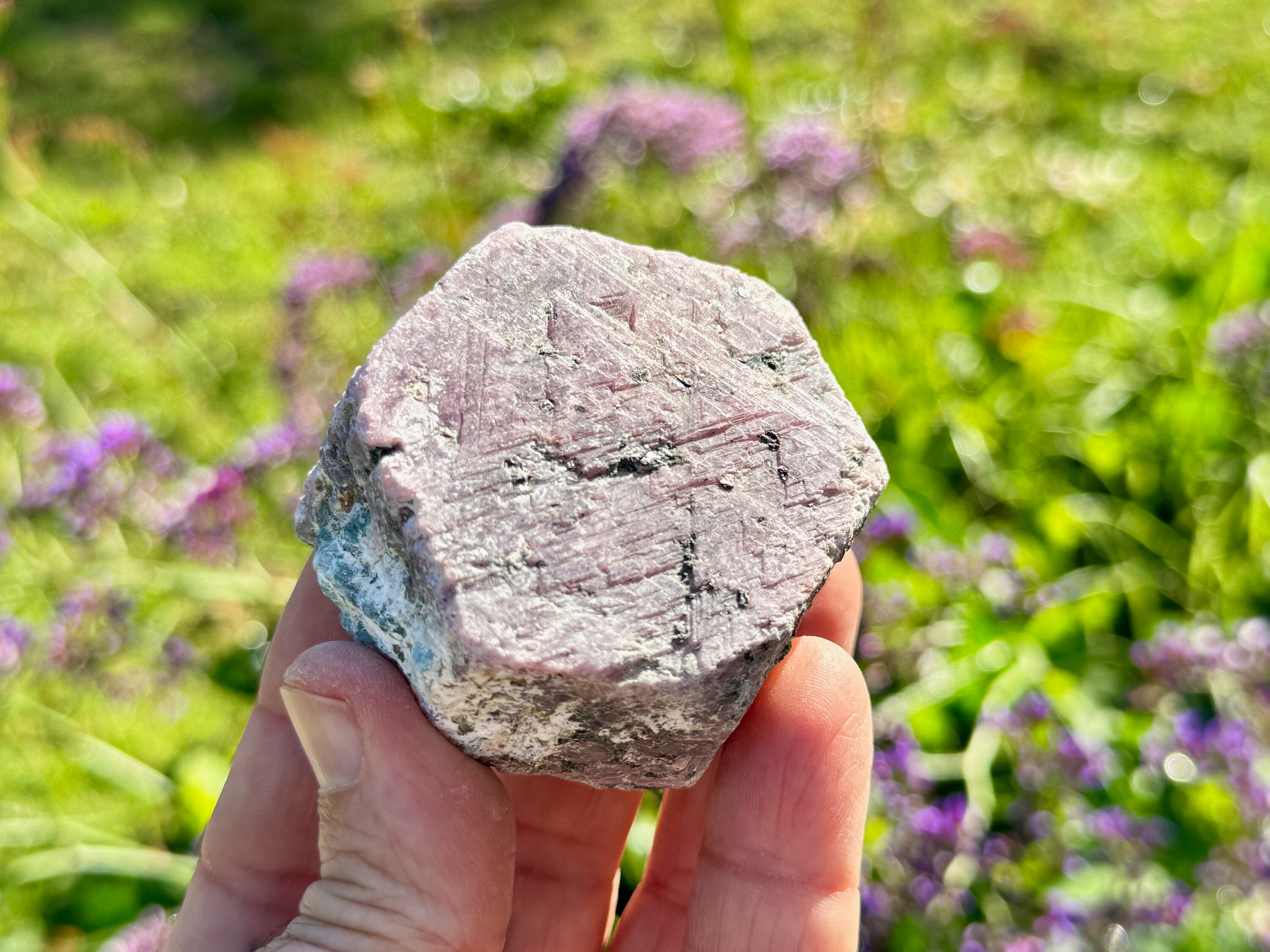 What's also special about this piece is the inclusion of Aquamarine embedded in one of the sides, as well as a green inclusion we believe to be Schist. A really strong and powerful piece!