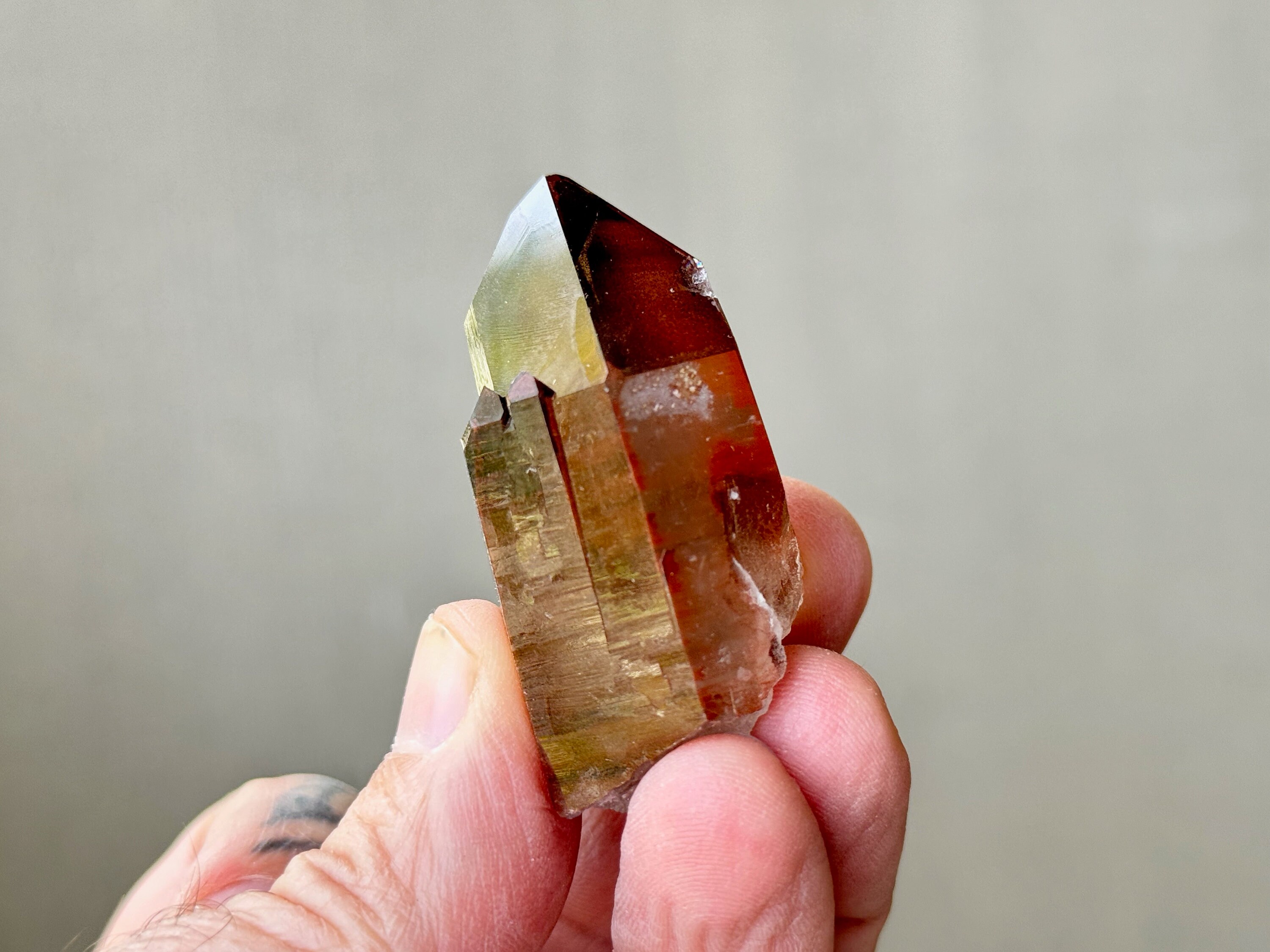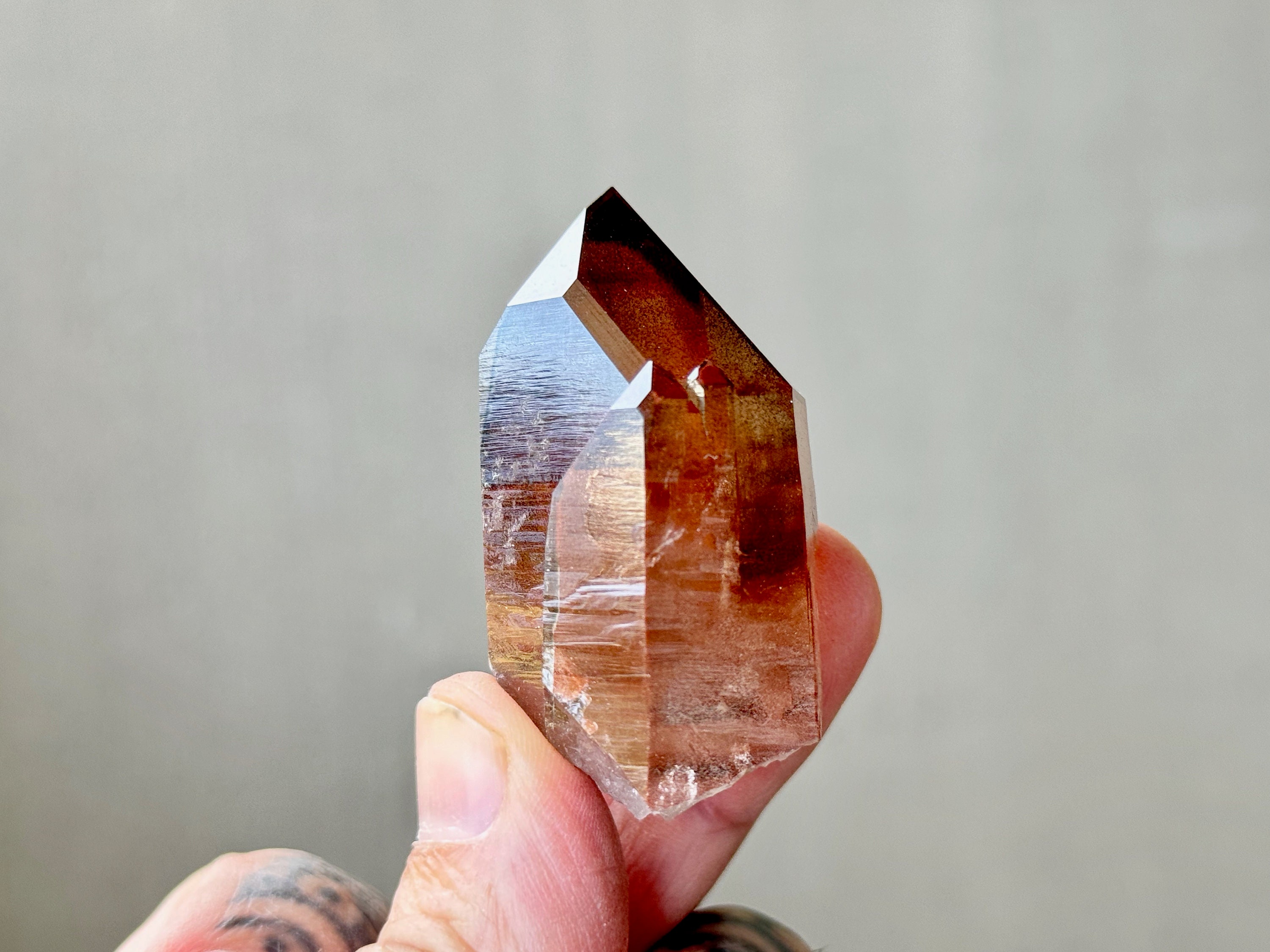 The crystals from this find have exceptional clarity and beautiful deep red and plum hues due to Hematite inclusion. Hematite is a powerful stone that absorbs negative (heavy) energy and recycles it into a more positive vibration. It is a wonderful grounding stone to correlate to the Root Chakra, and its properties are amplified by the quartz it encases.