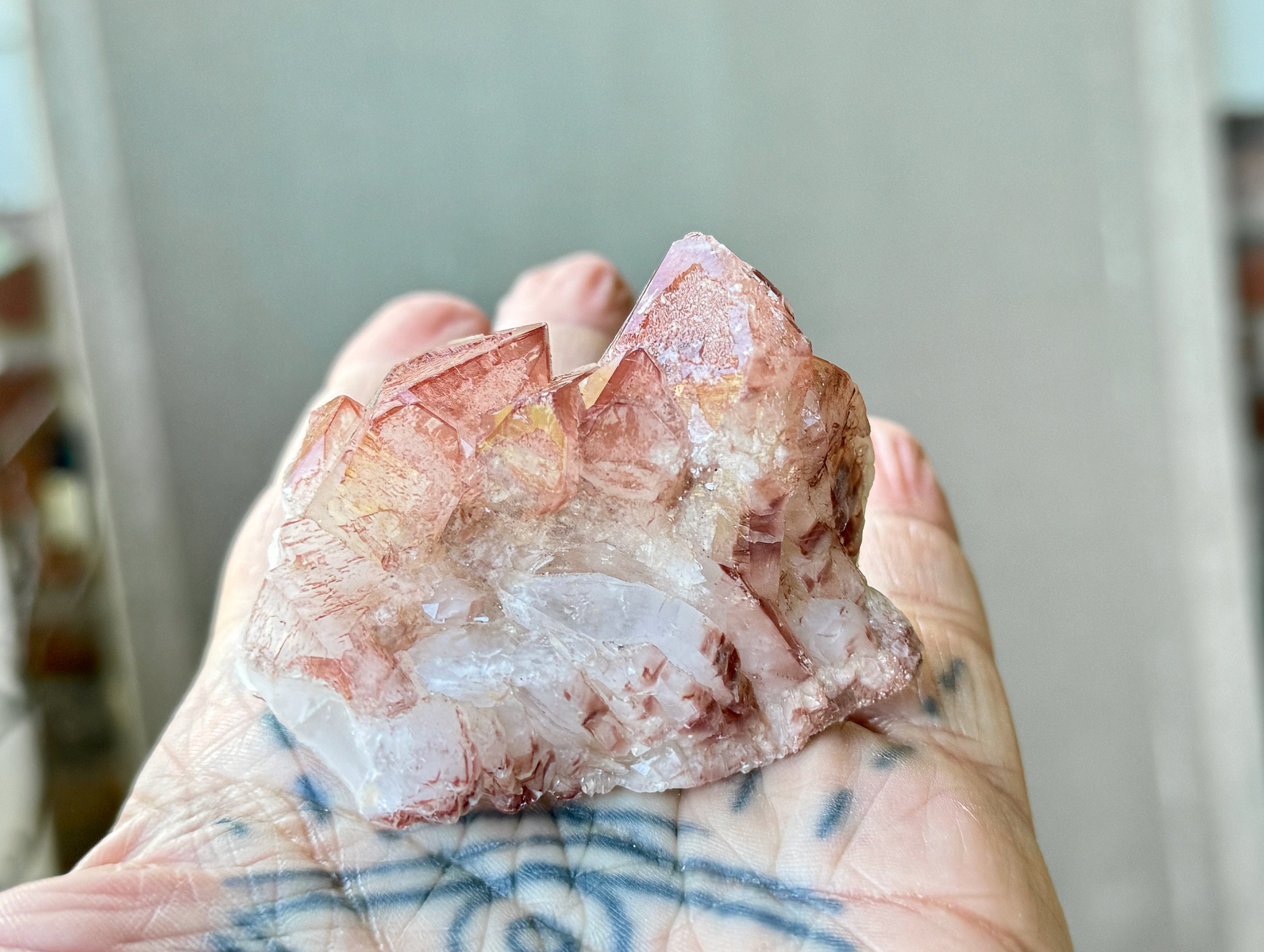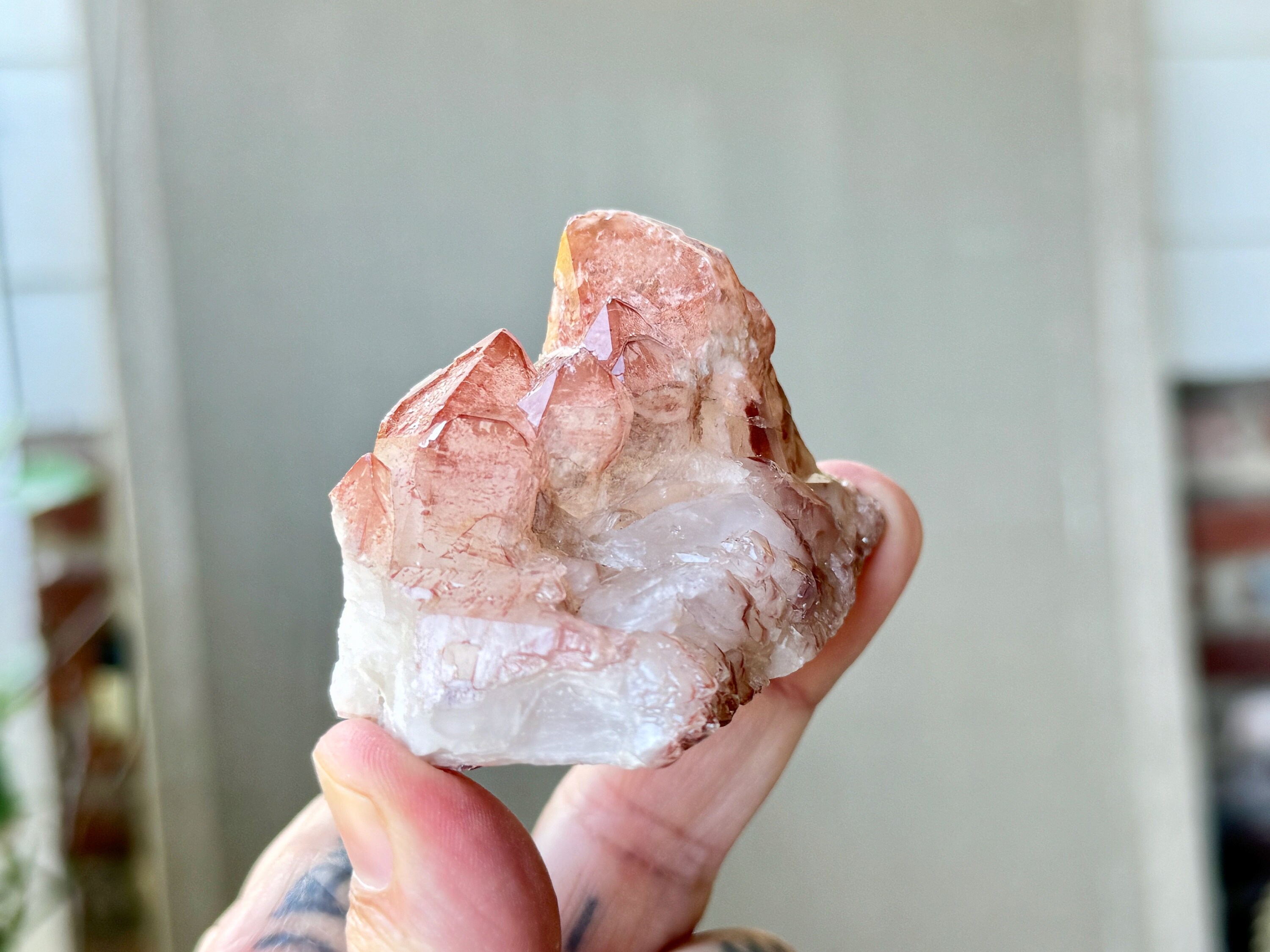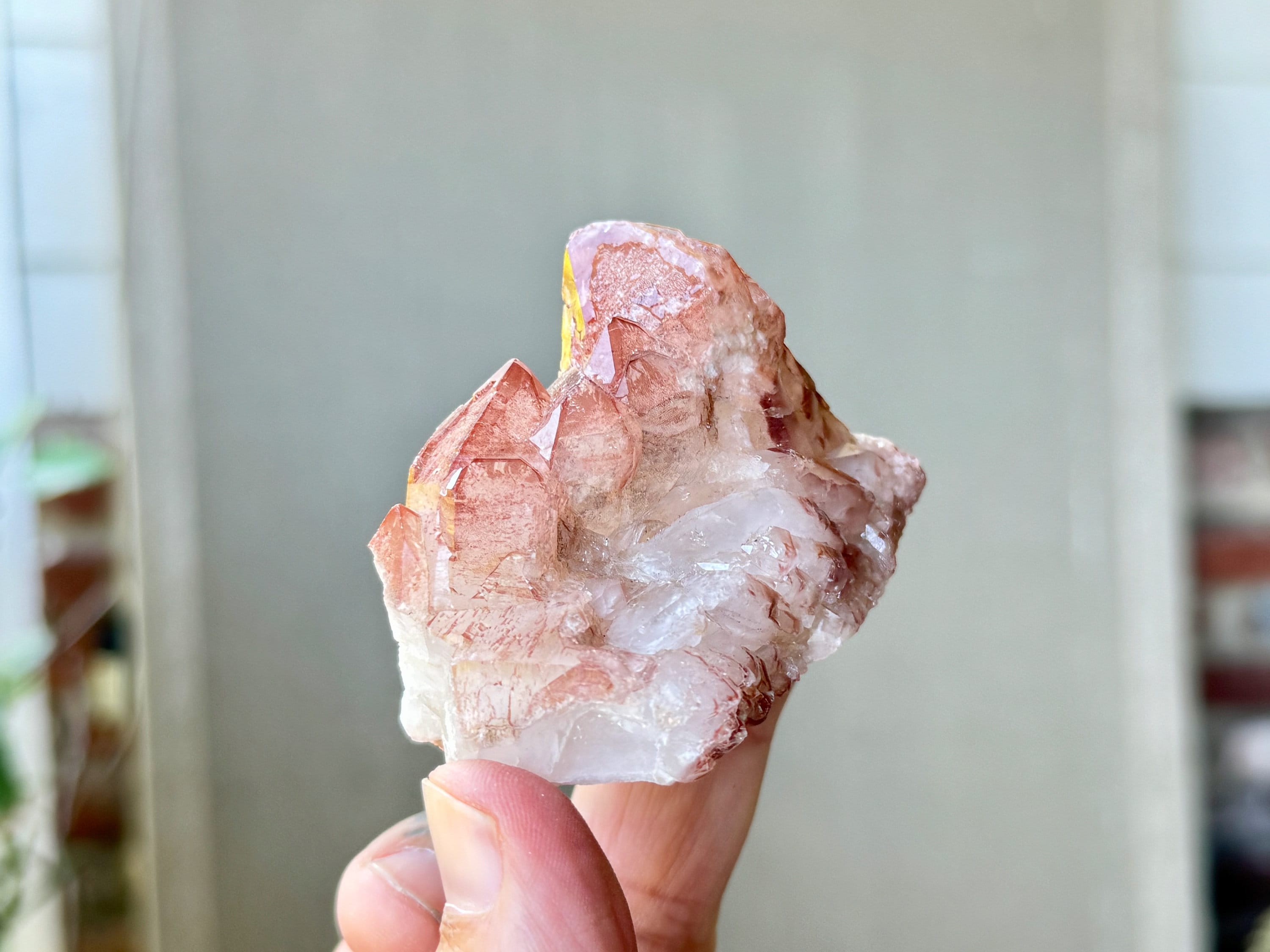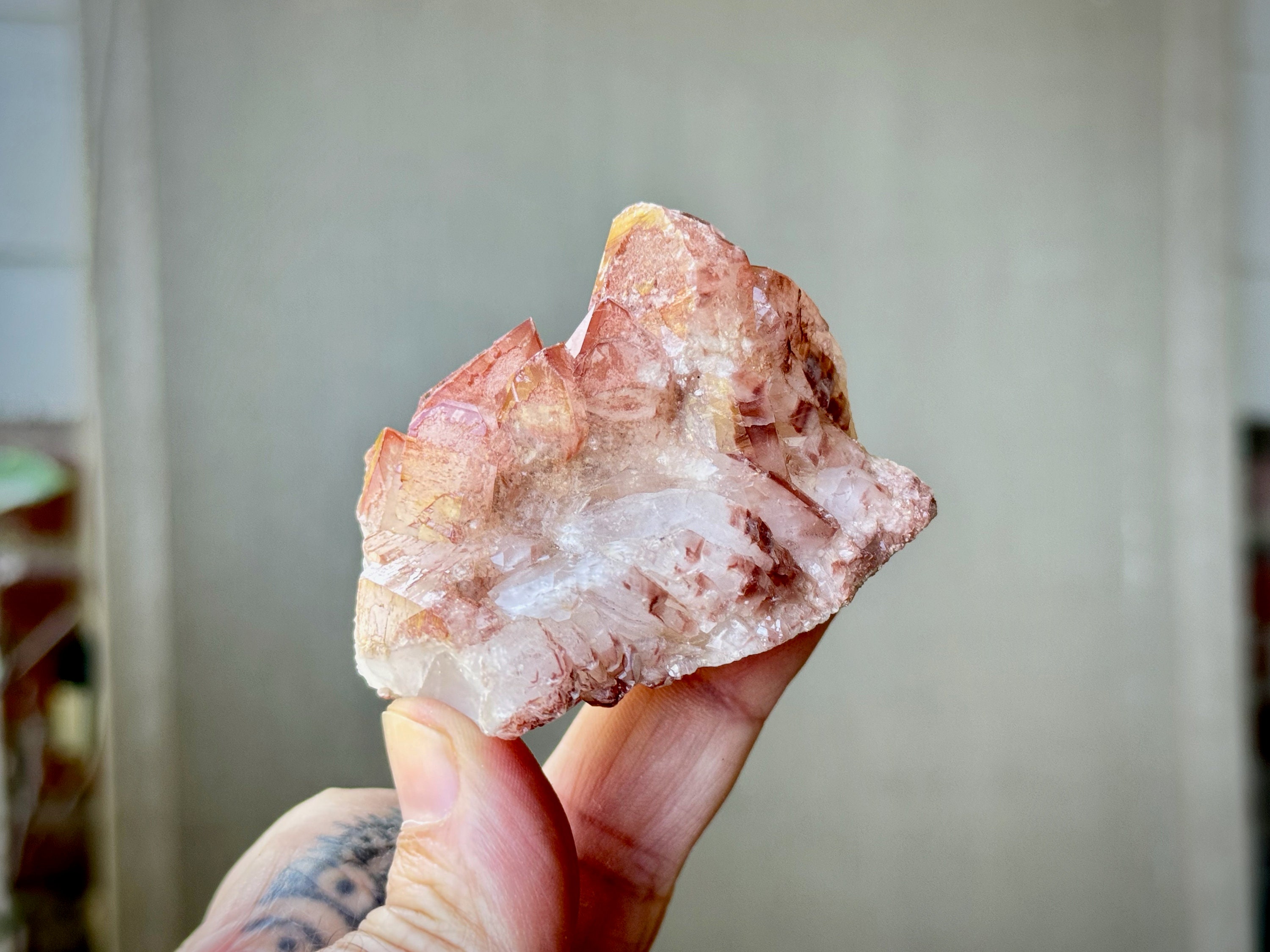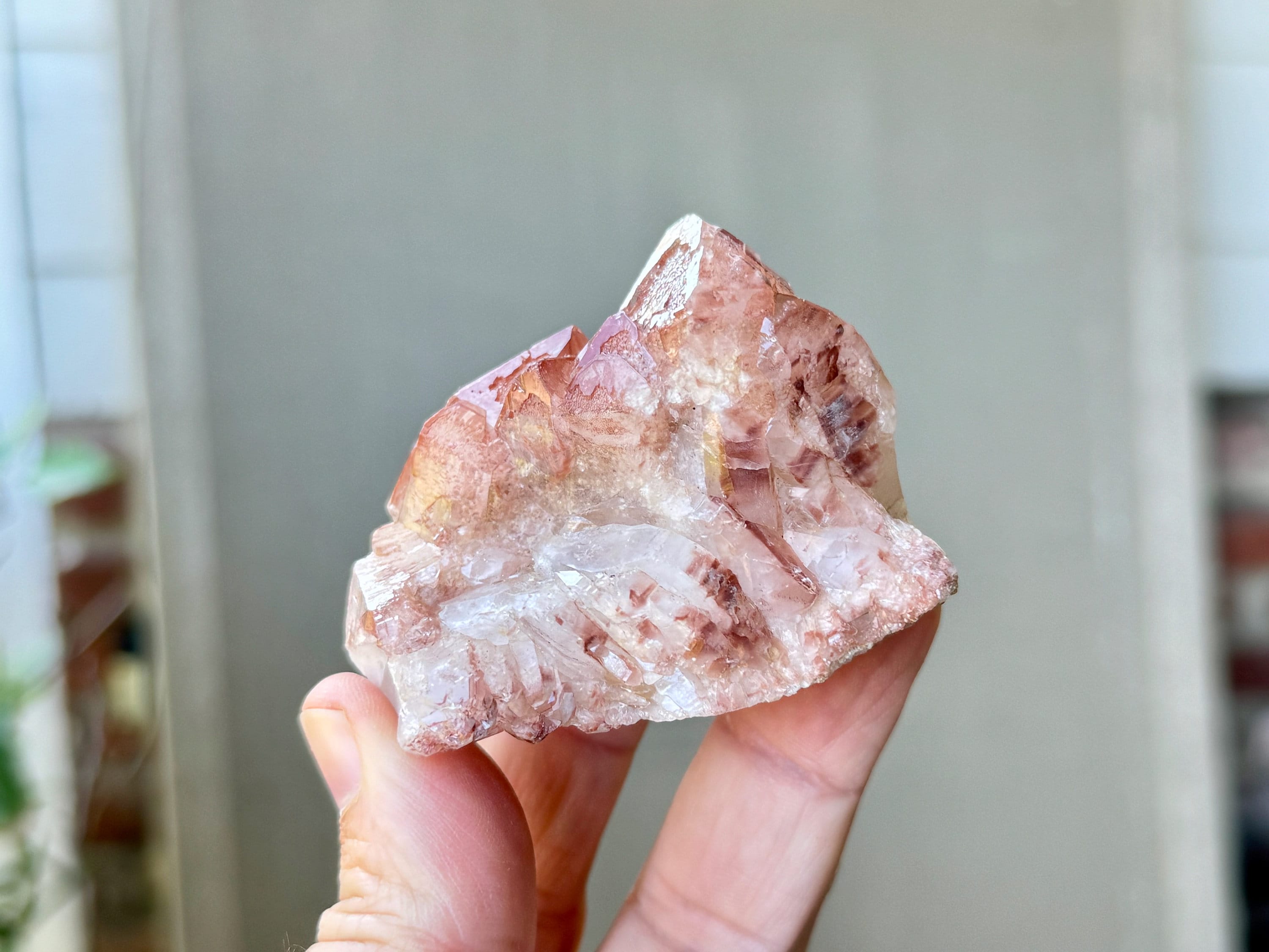 These unique and beautiful crystals have vibrant pink hues and unique textures. Due to being mined near Lithium-rich areas, these crystals were initially regarded as getting their pink hues from Lithium inclusion. However, it is now being reconsidered that these are most likely Hematite-included crystals.