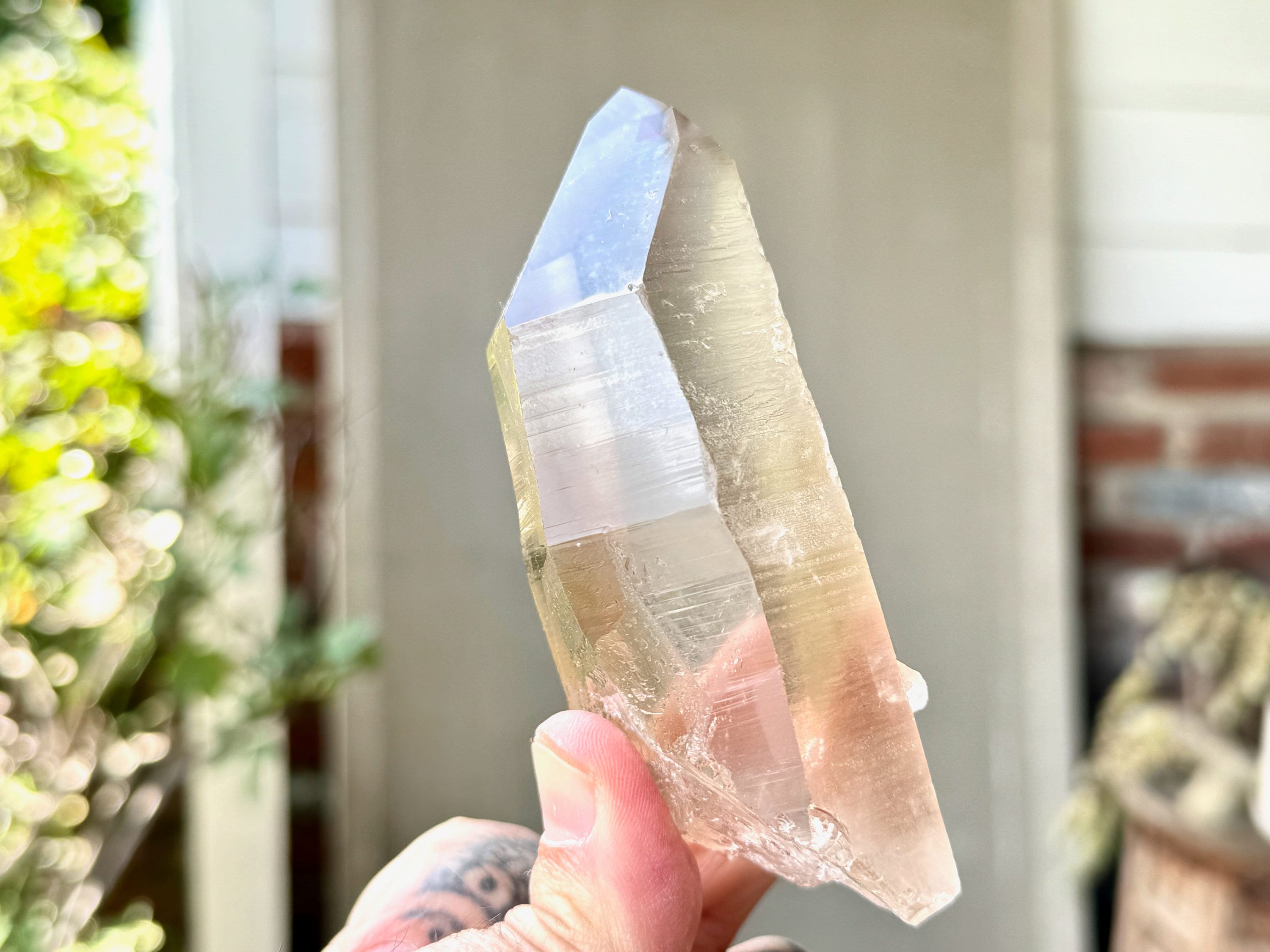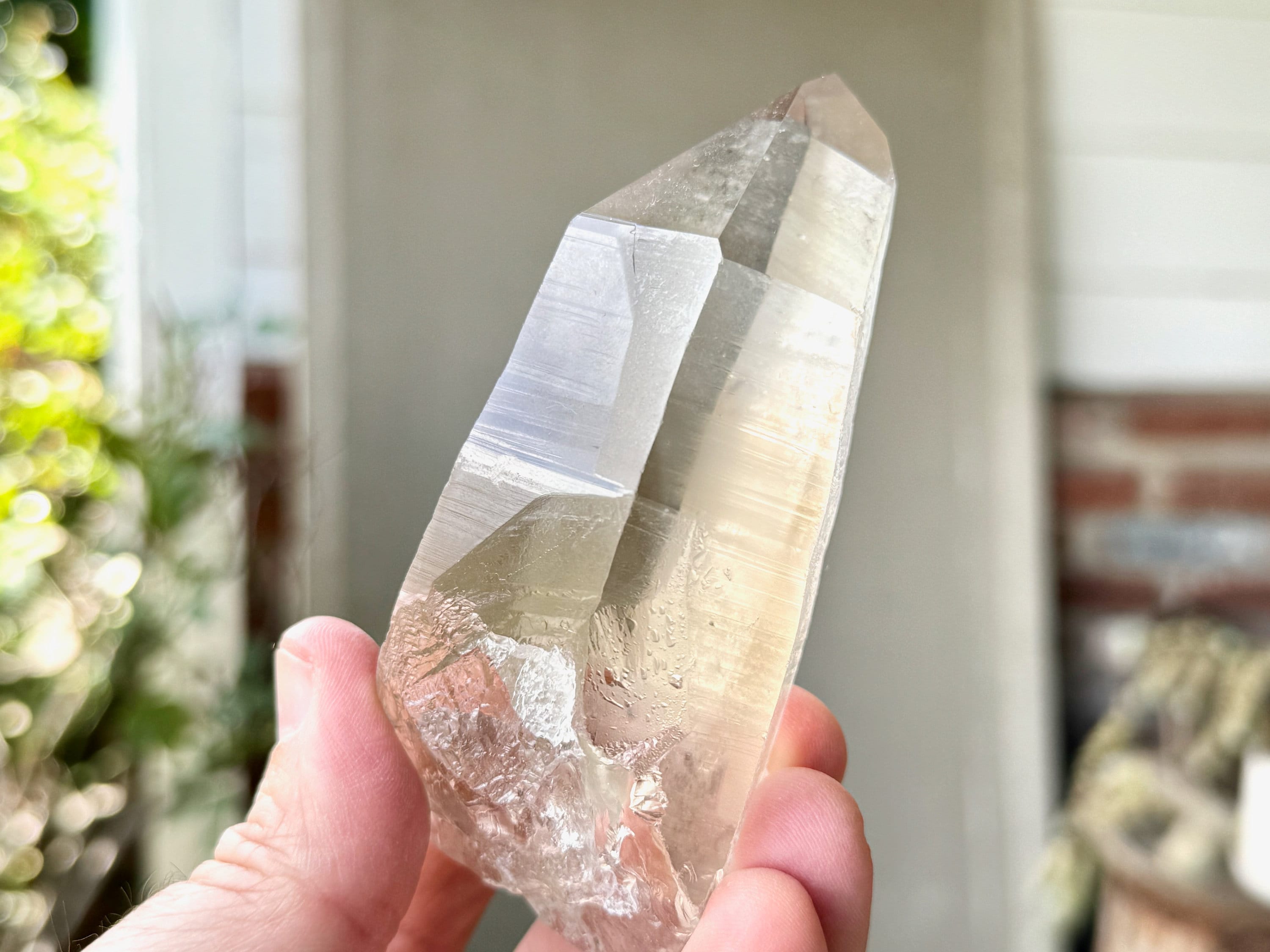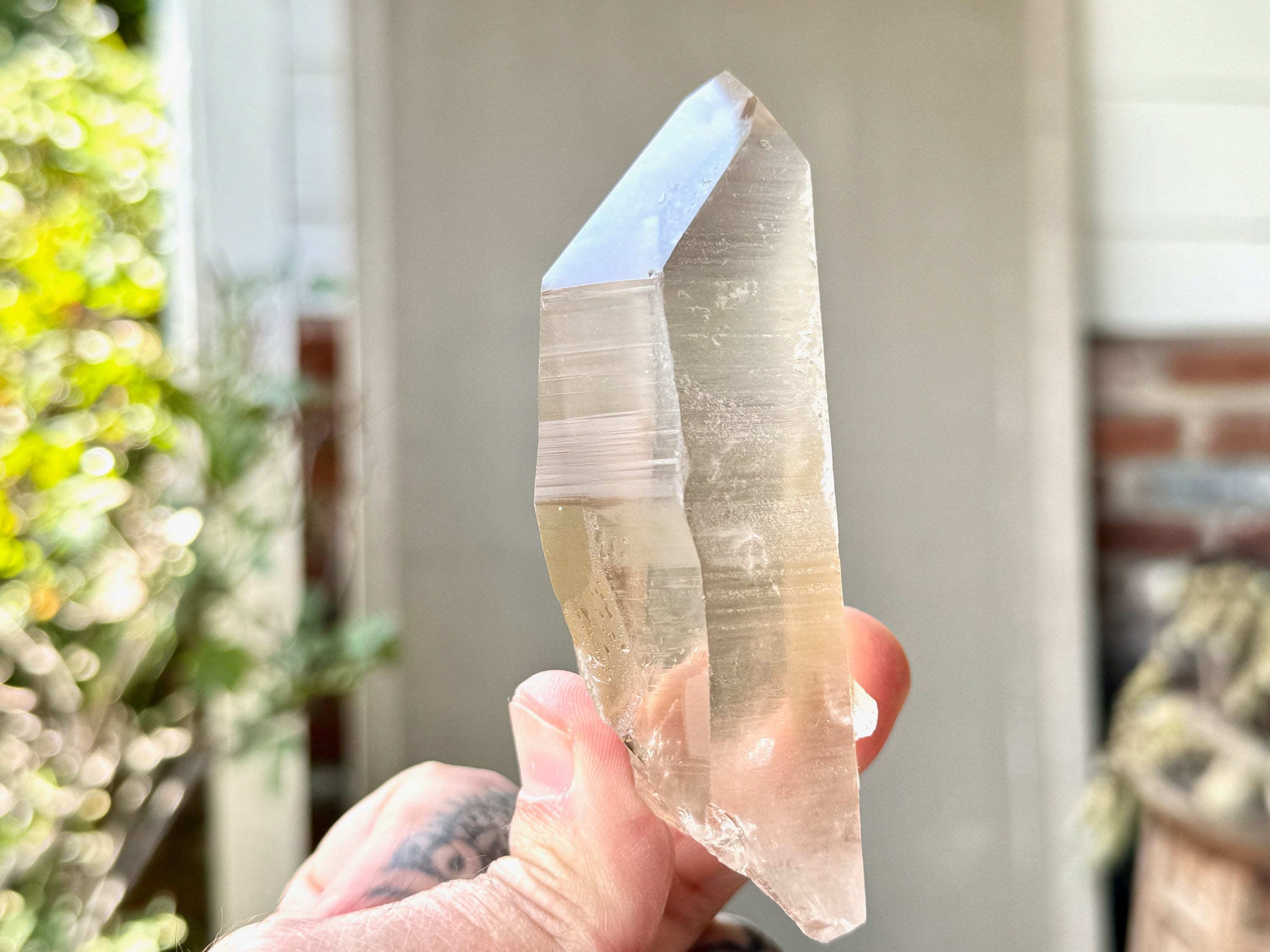 Gorgeous, water-clear clarity and brilliant luster to this nicely sized Lemurian Quartz crystal with a very mild smoky hue and finely defined Lemurian lines on its sides. Excellent termination as well to this high grade crystal.