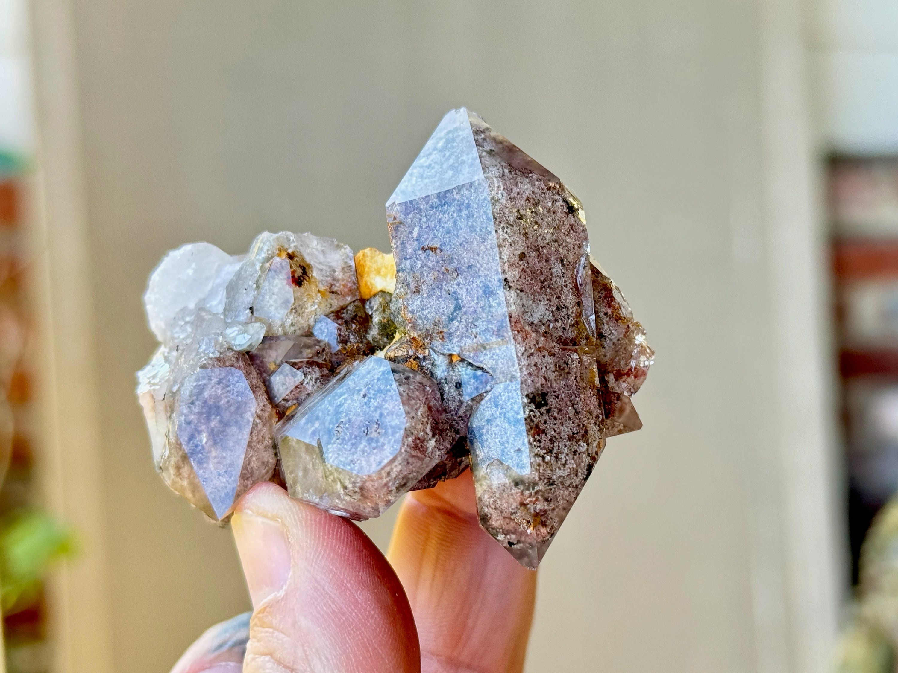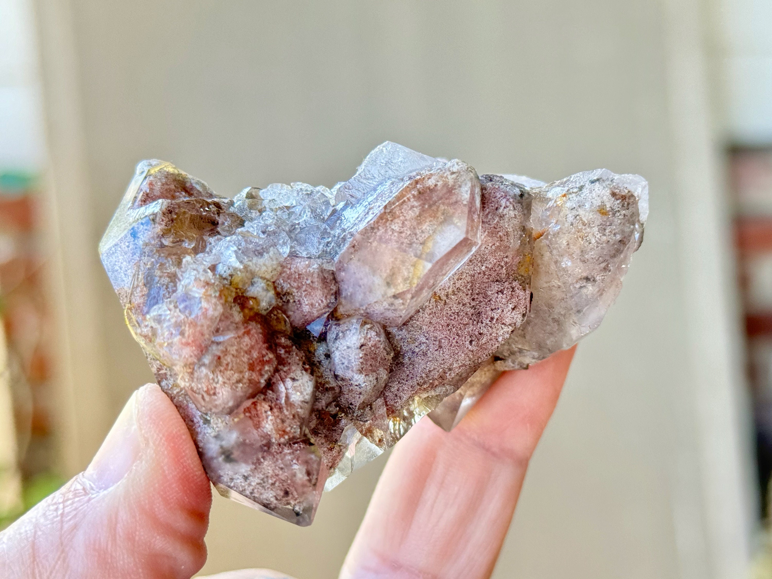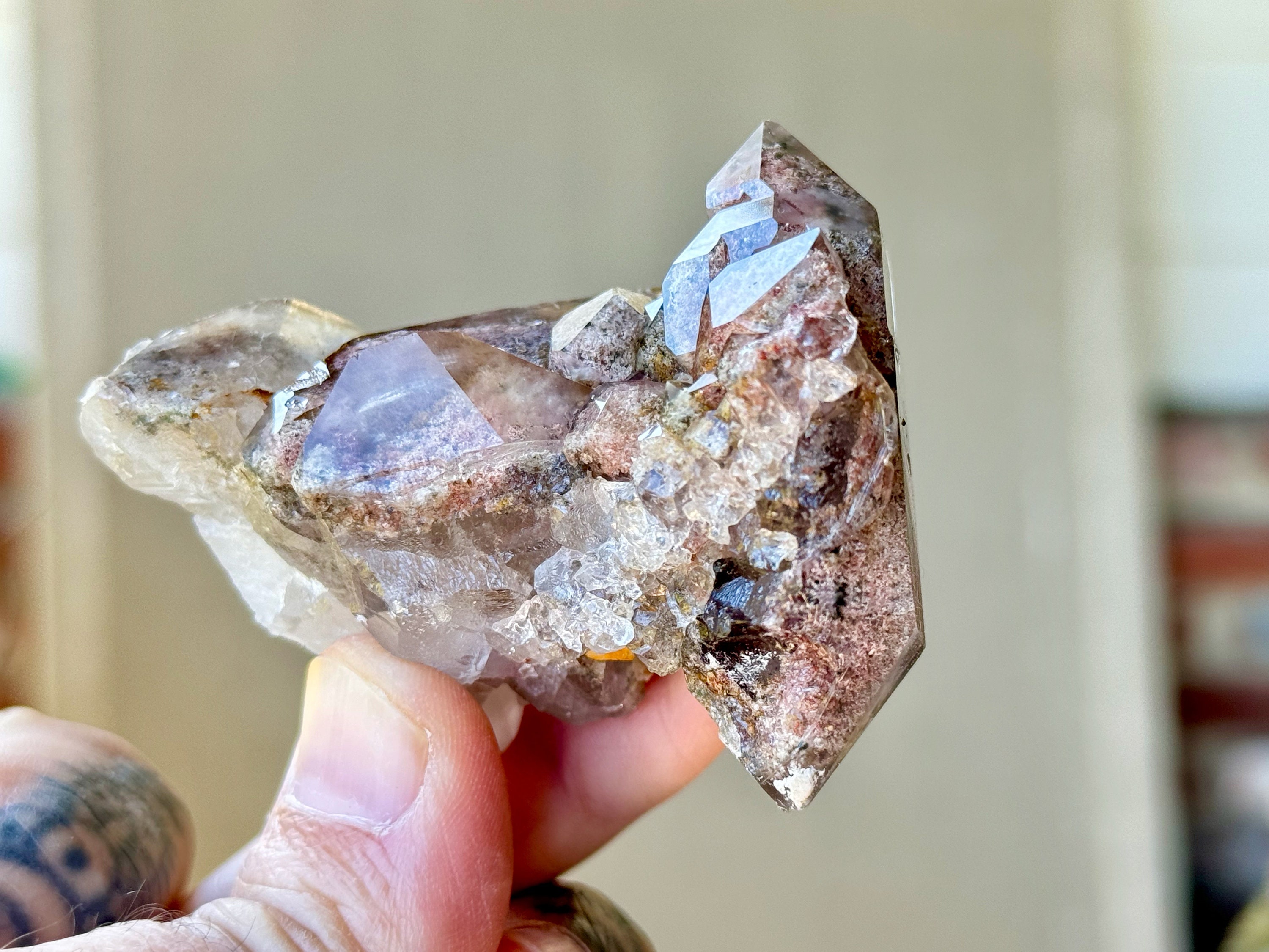 Lodolite Quartz, sometimes referred to as Garden Quartz for their beautiful inner landscapes, refers to crystals with colorful inclusions that may include Green Chlorite, Kaolinite, Hematite, Sulfite and other inclusions that all fall under the umbrella of "Lodolite." Each of these inclusions carries a particular energy of purification, grounding or healing, and the combination of these elements together, amplified by the Quartz surrounding them, creates a powerful healing energy. Aesthetically, they often have stunning inner landscapes that often look like mossy underwater gardens.