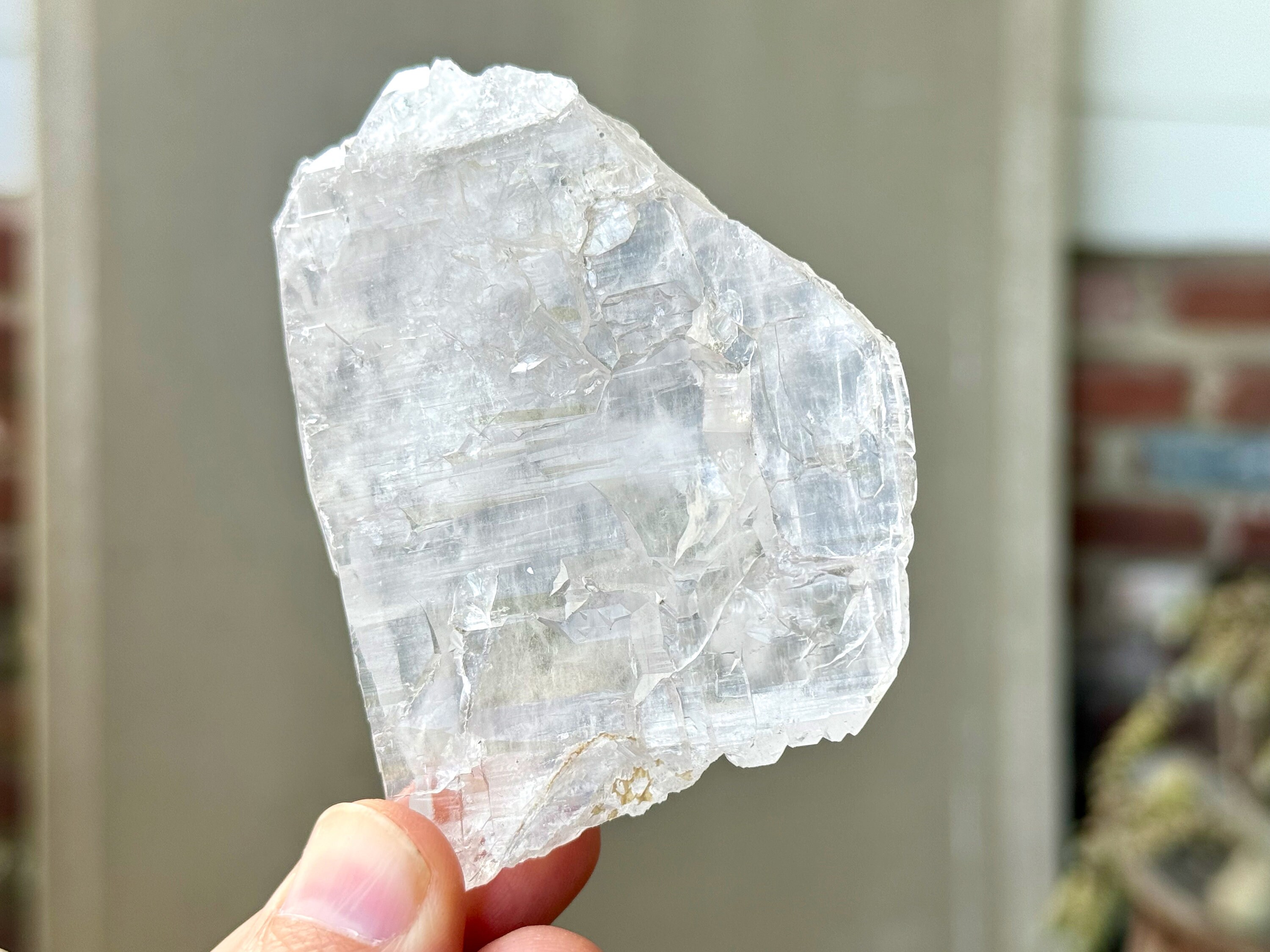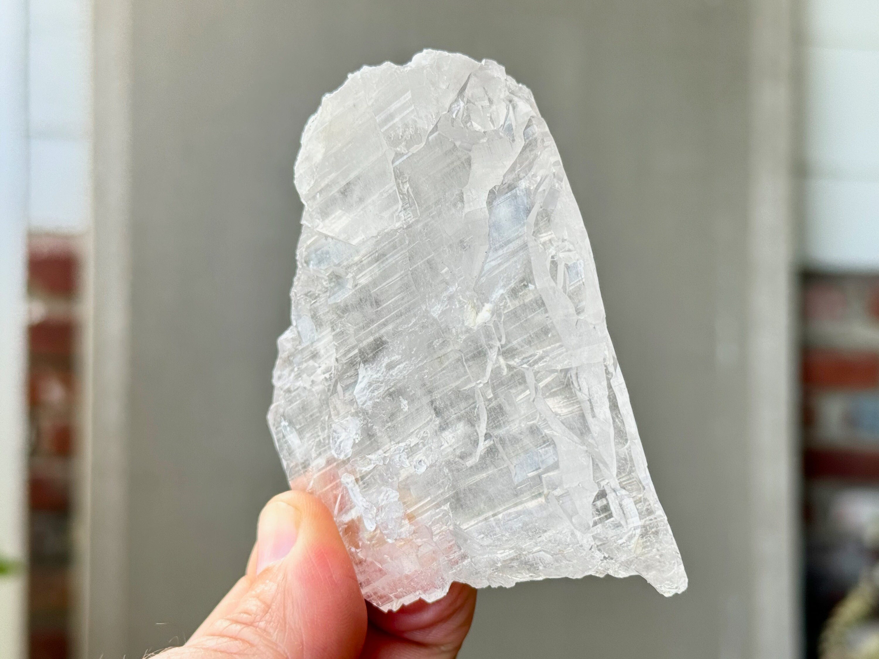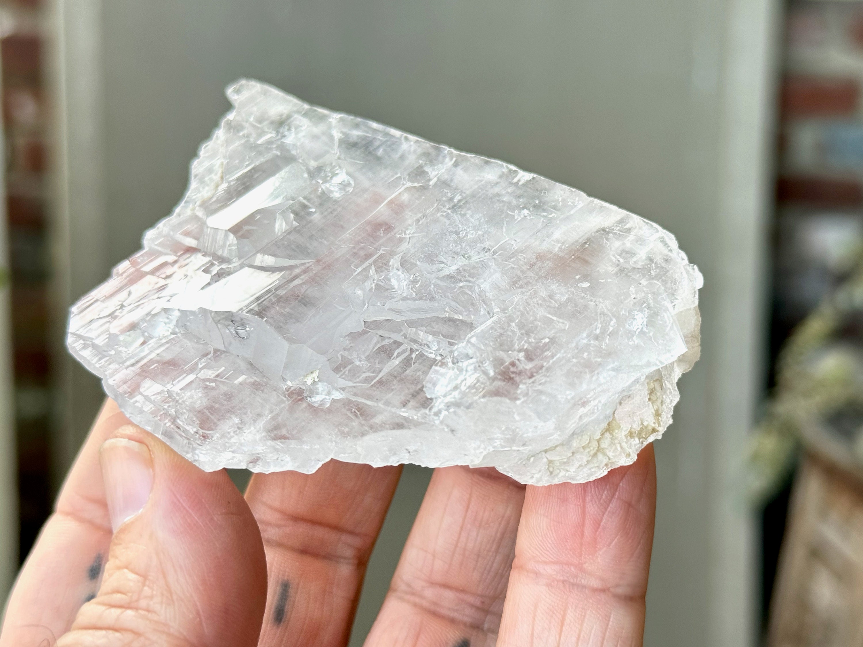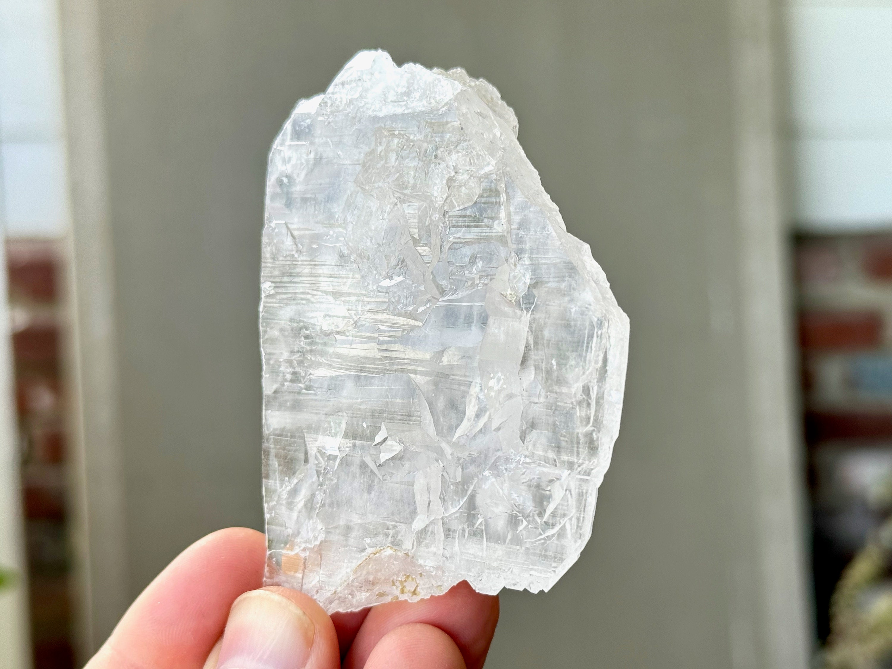 This crystal is what we would consider a "floater" or "galactic key" formation, having broken off a larger crystal at some point hundreds of millions of years ago in the Earth, due to shifting tectonic plates, and managed to healed itself to be "complete" again. The broad sides of this piece show off beautiful textures that occurred due to this healing process.