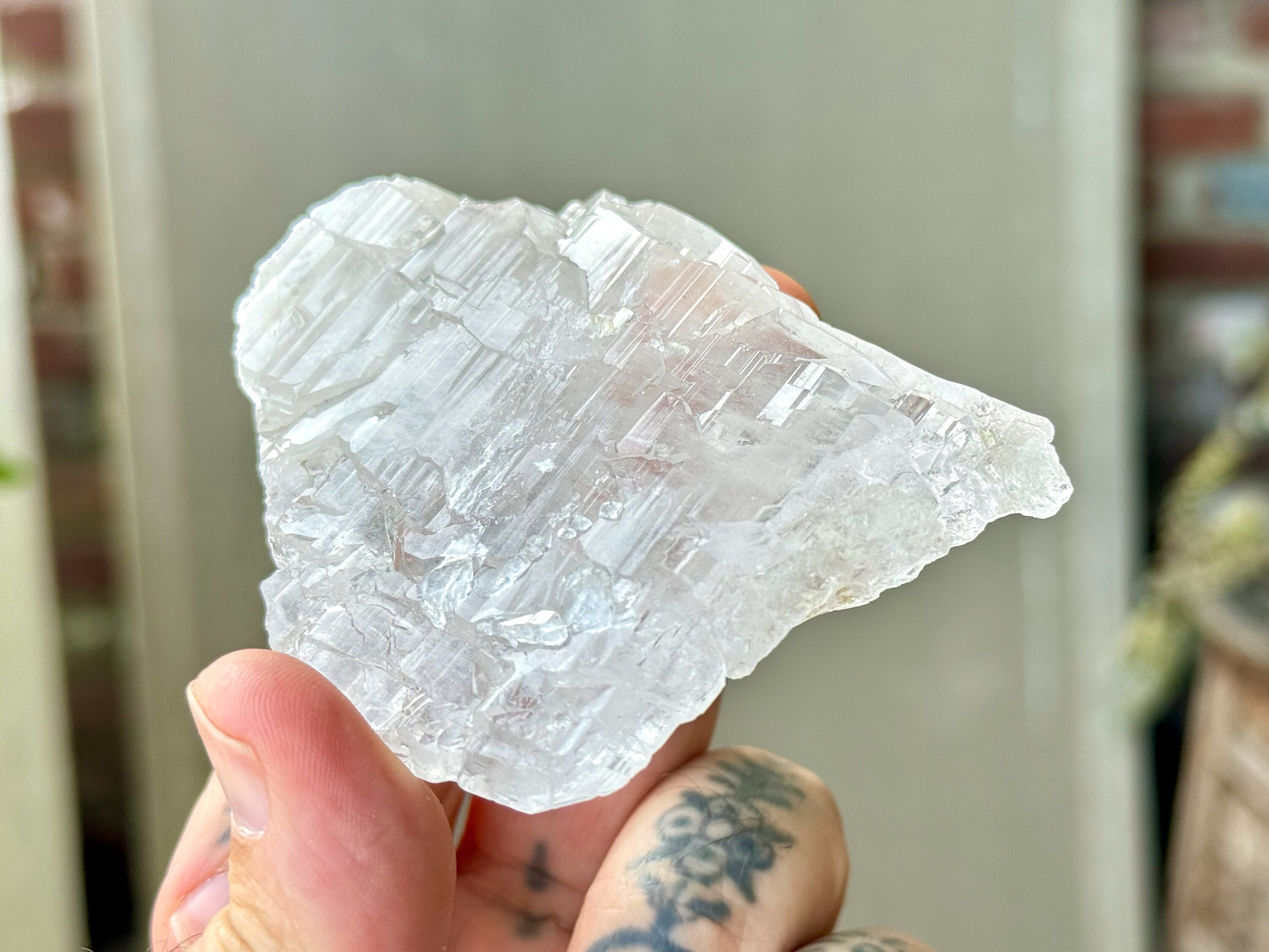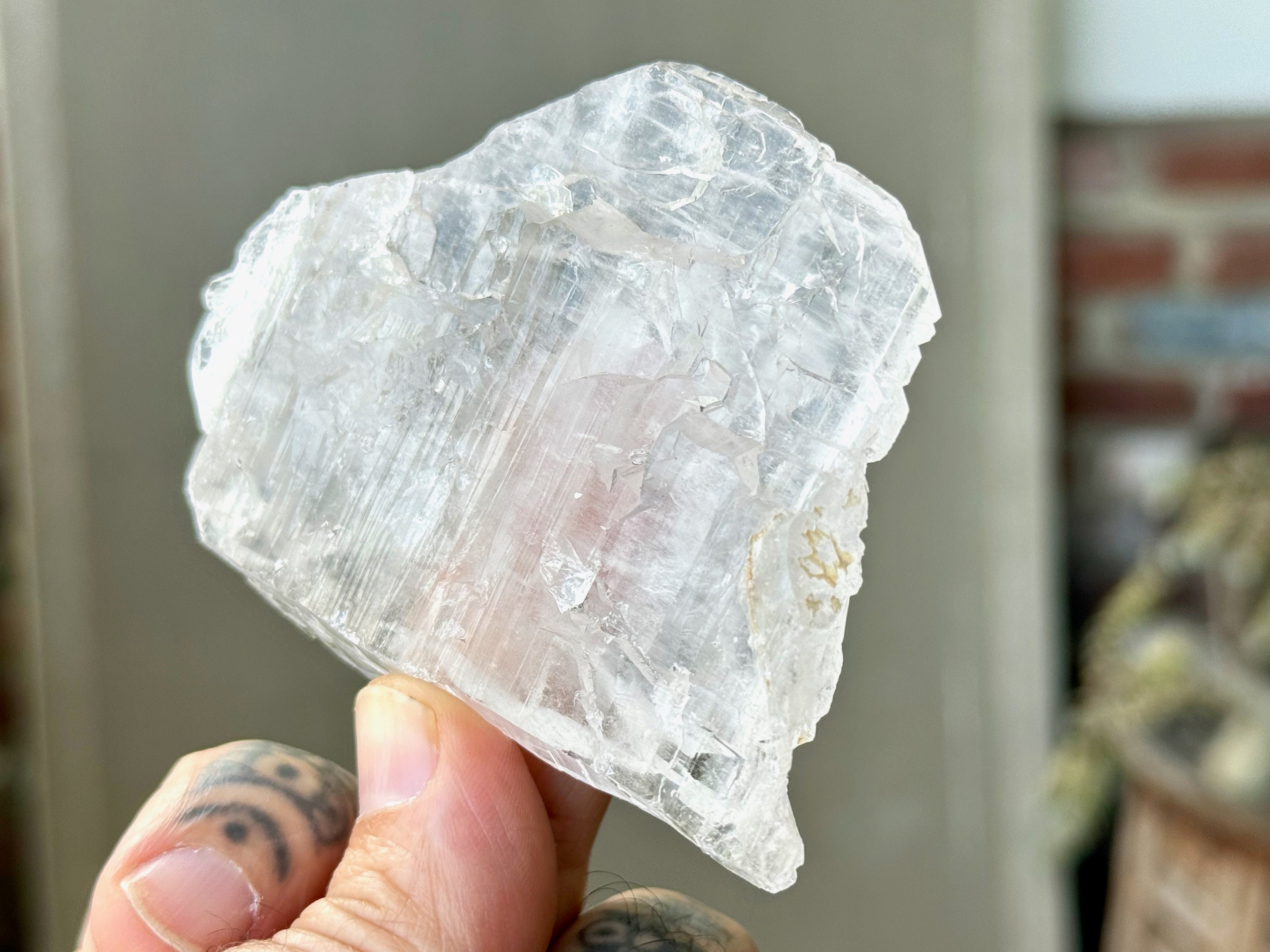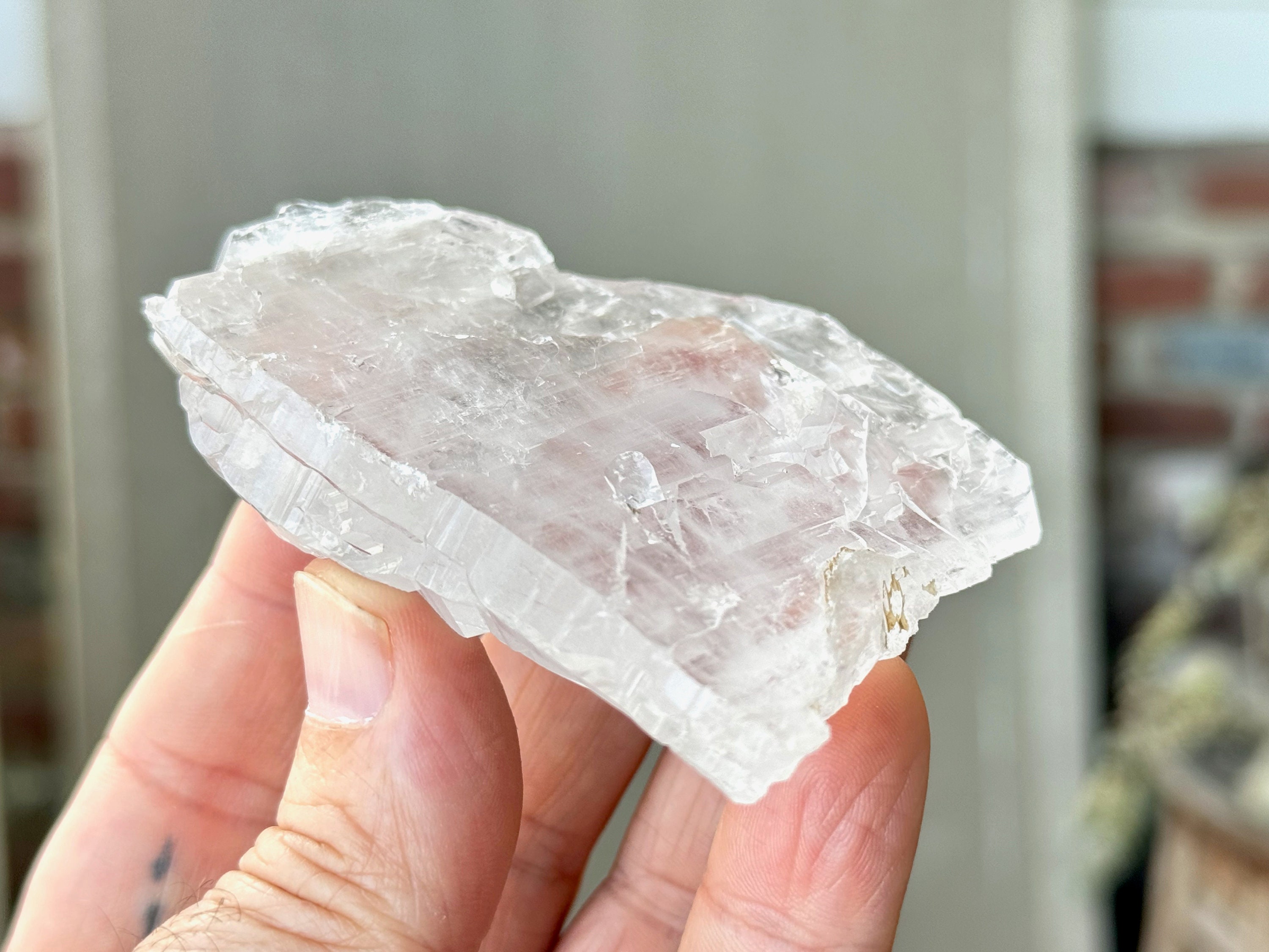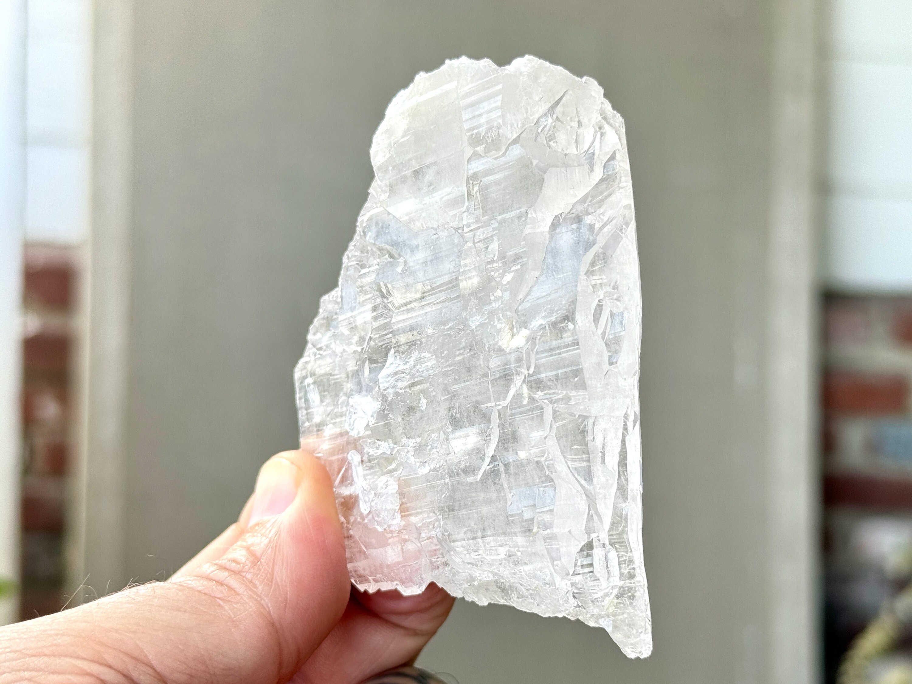 This crystal is what we would consider a "floater" or "galactic key" formation, having broken off a larger crystal at some point hundreds of millions of years ago in the Earth, due to shifting tectonic plates, and managed to healed itself to be "complete" again. The broad sides of this piece show off beautiful textures that occurred due to this healing process.