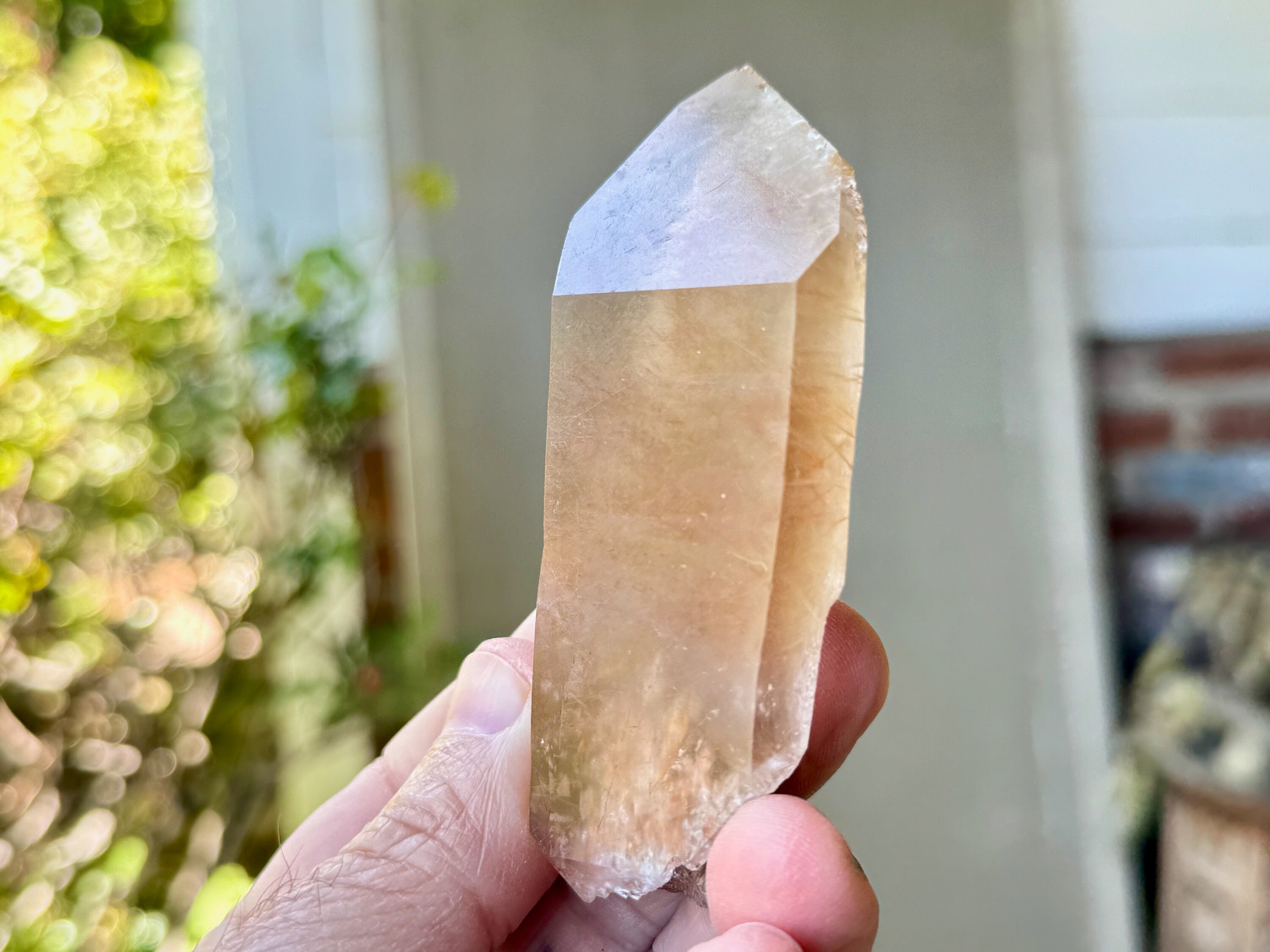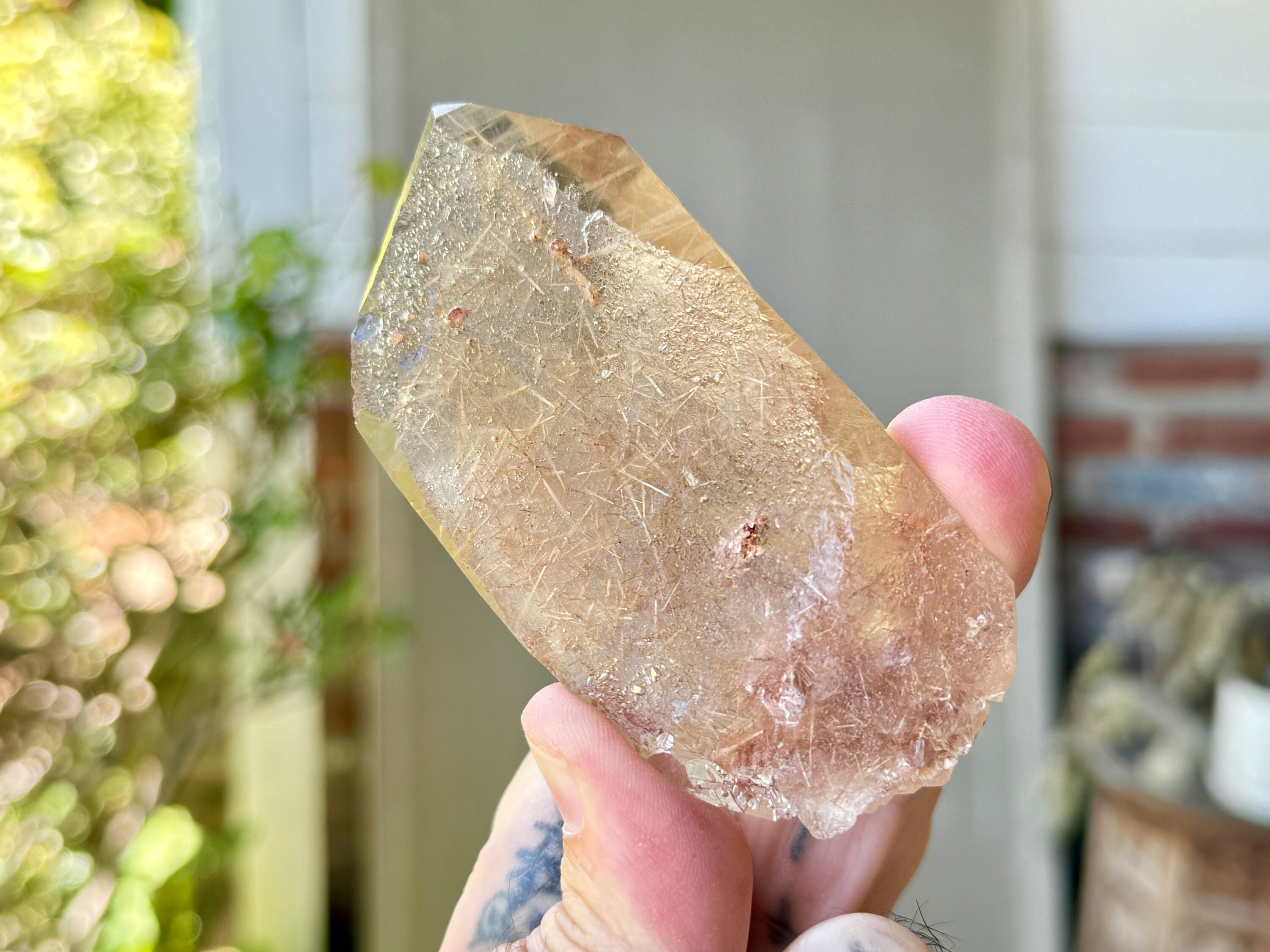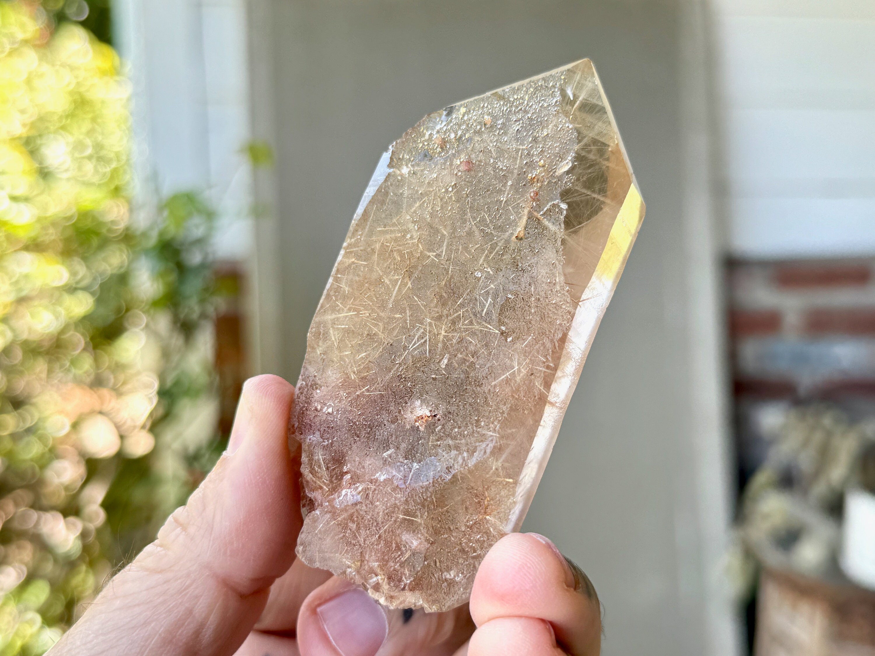 Here is a beautiful Lemurian Quartz crystal from a new find (2023) in Diamantina, Minas Gerais, Brazil. This piece comes from a small find where some of the crystals had a unique new inclusion of White Rutile in beautiful formations. In some cases, the rutile look on new colors (like red and gold) from Hematite inclusion in the soil.