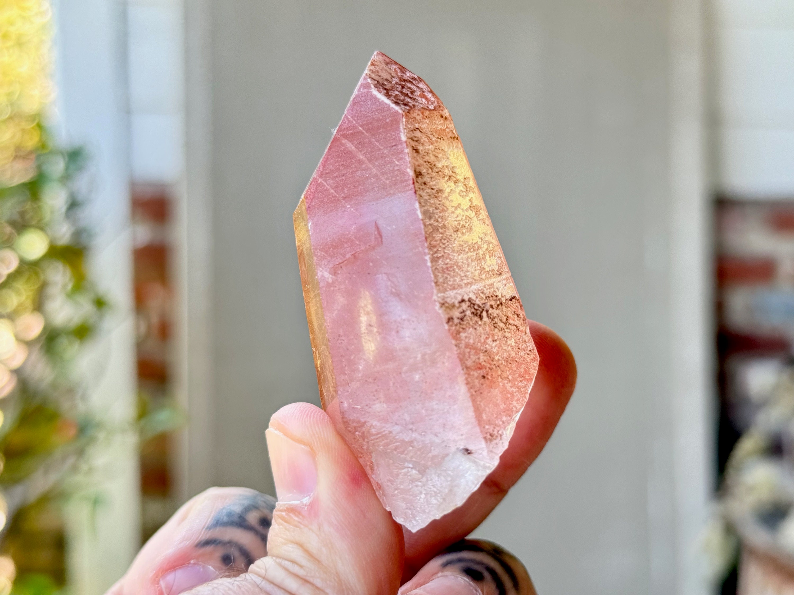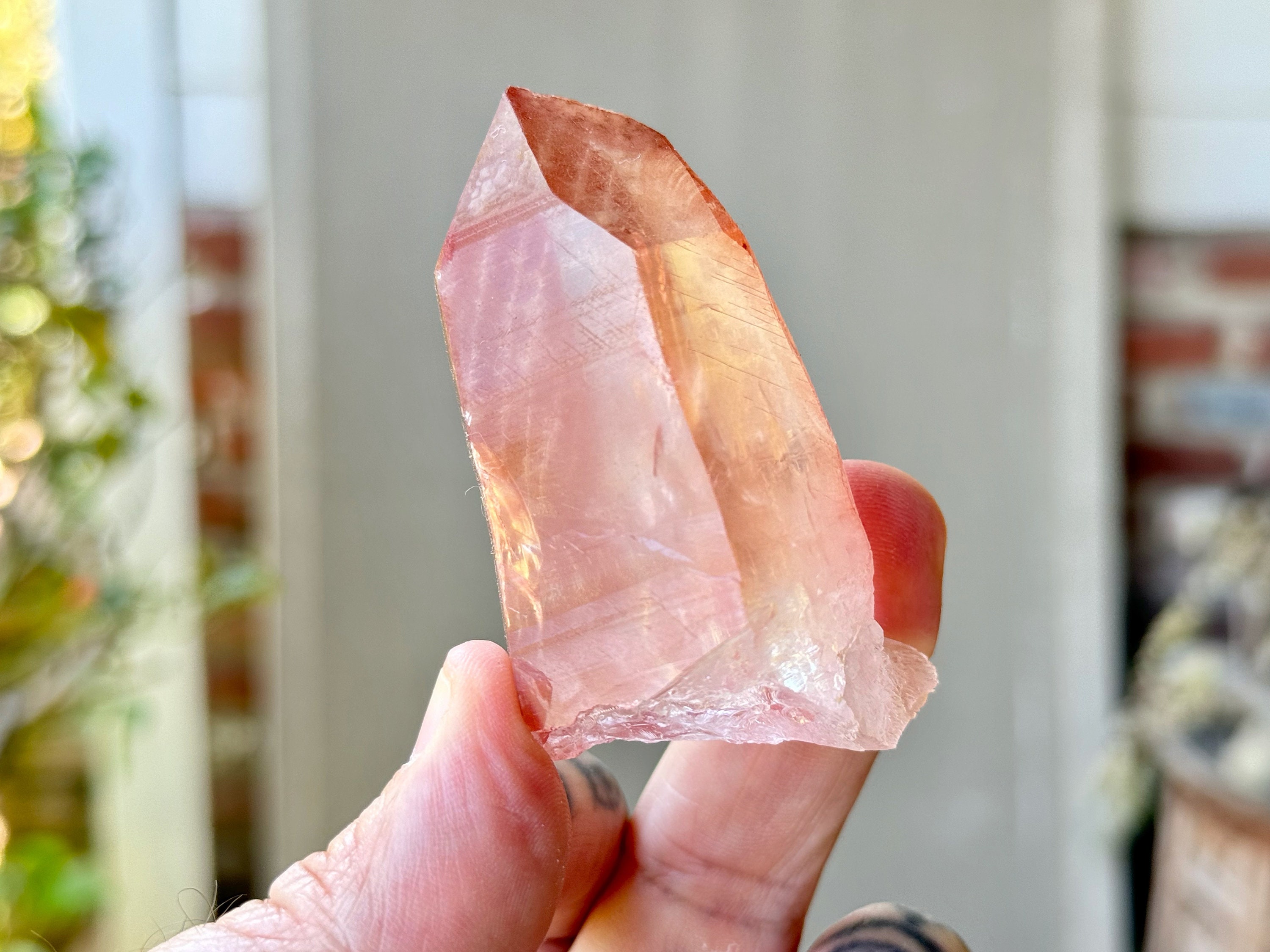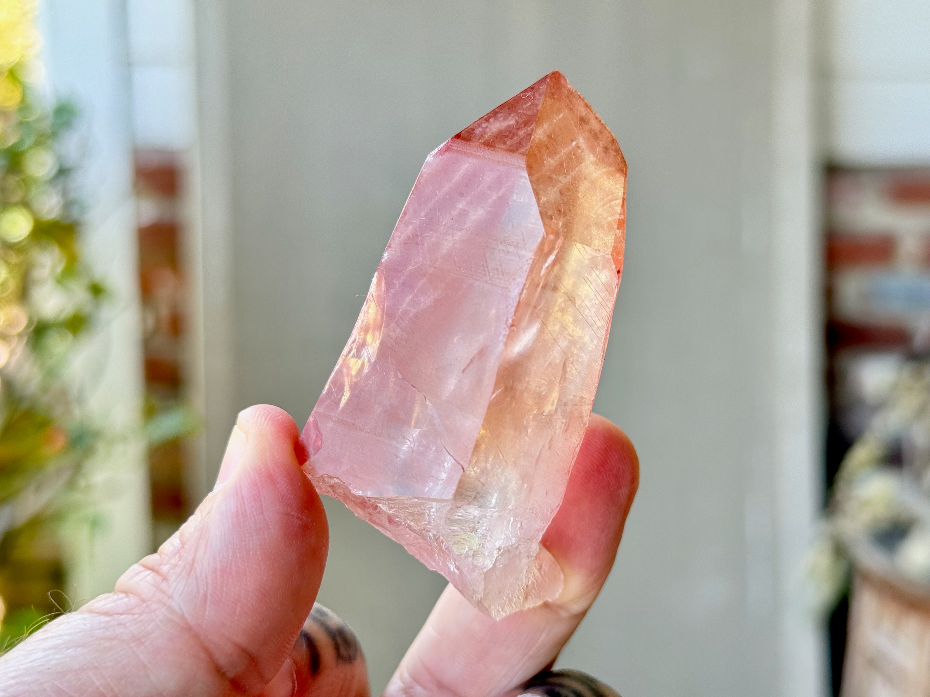 This Pink Scarlet Temple Lemurian Quartz crystal comes from a recent find (2024) in Diamantina, Minas Gerais, Brazil.