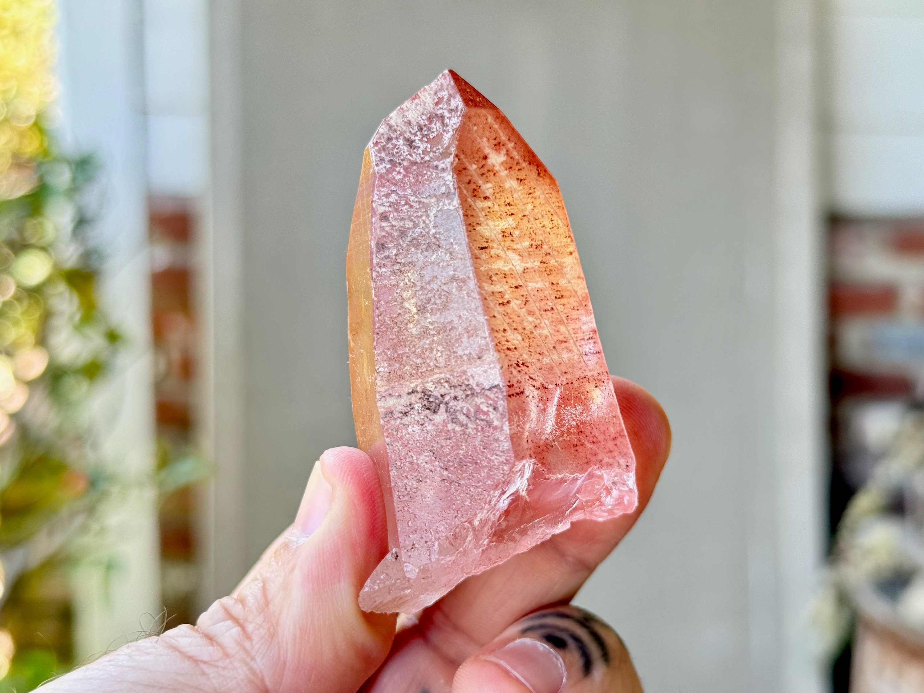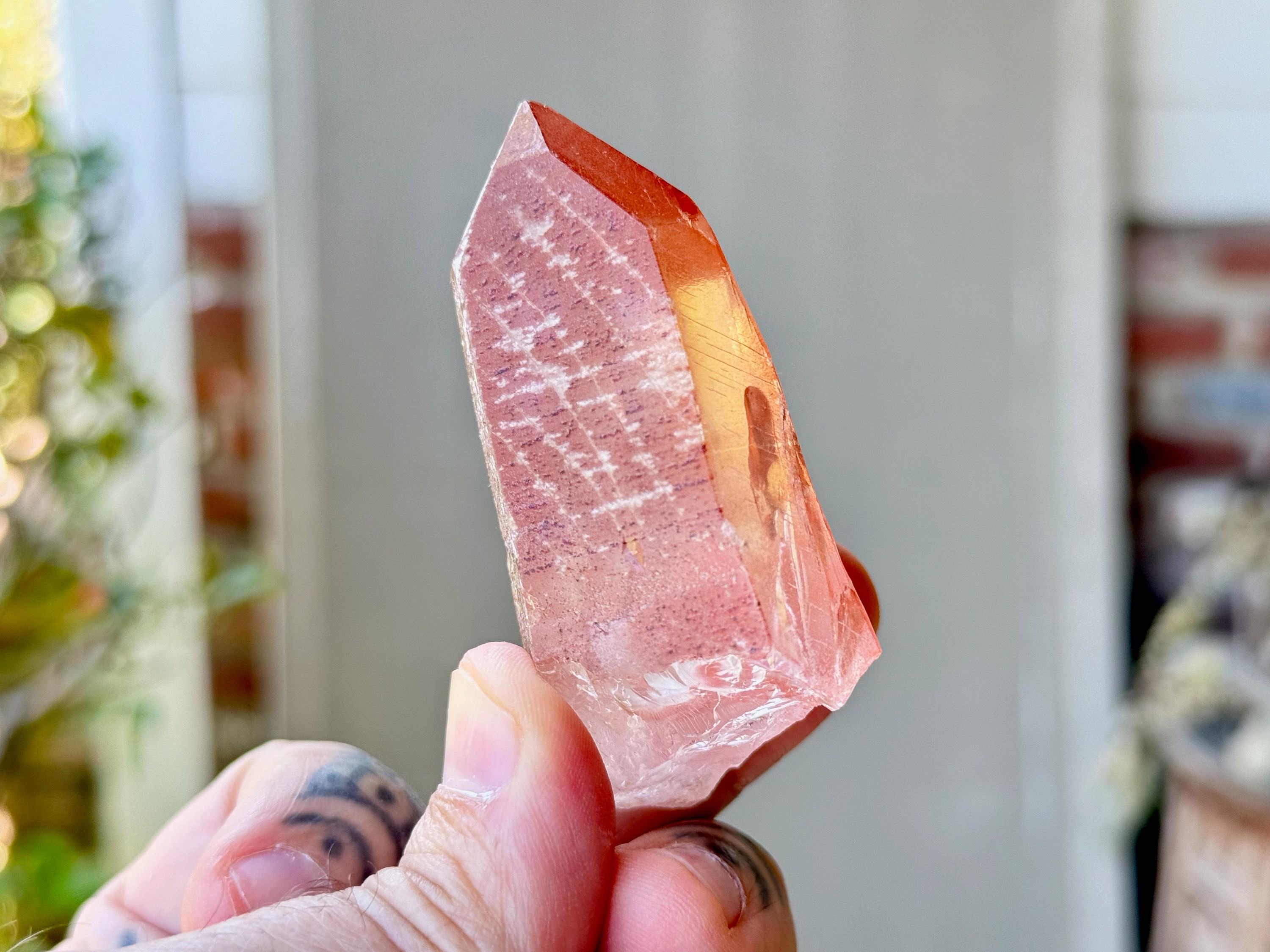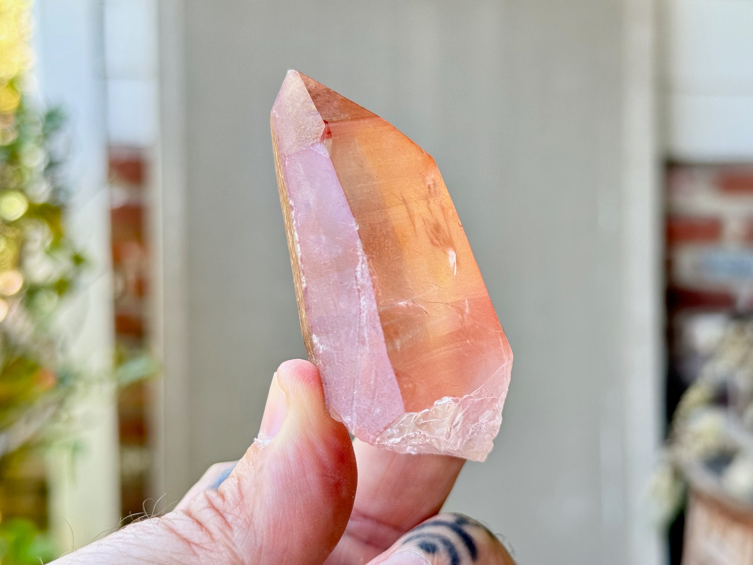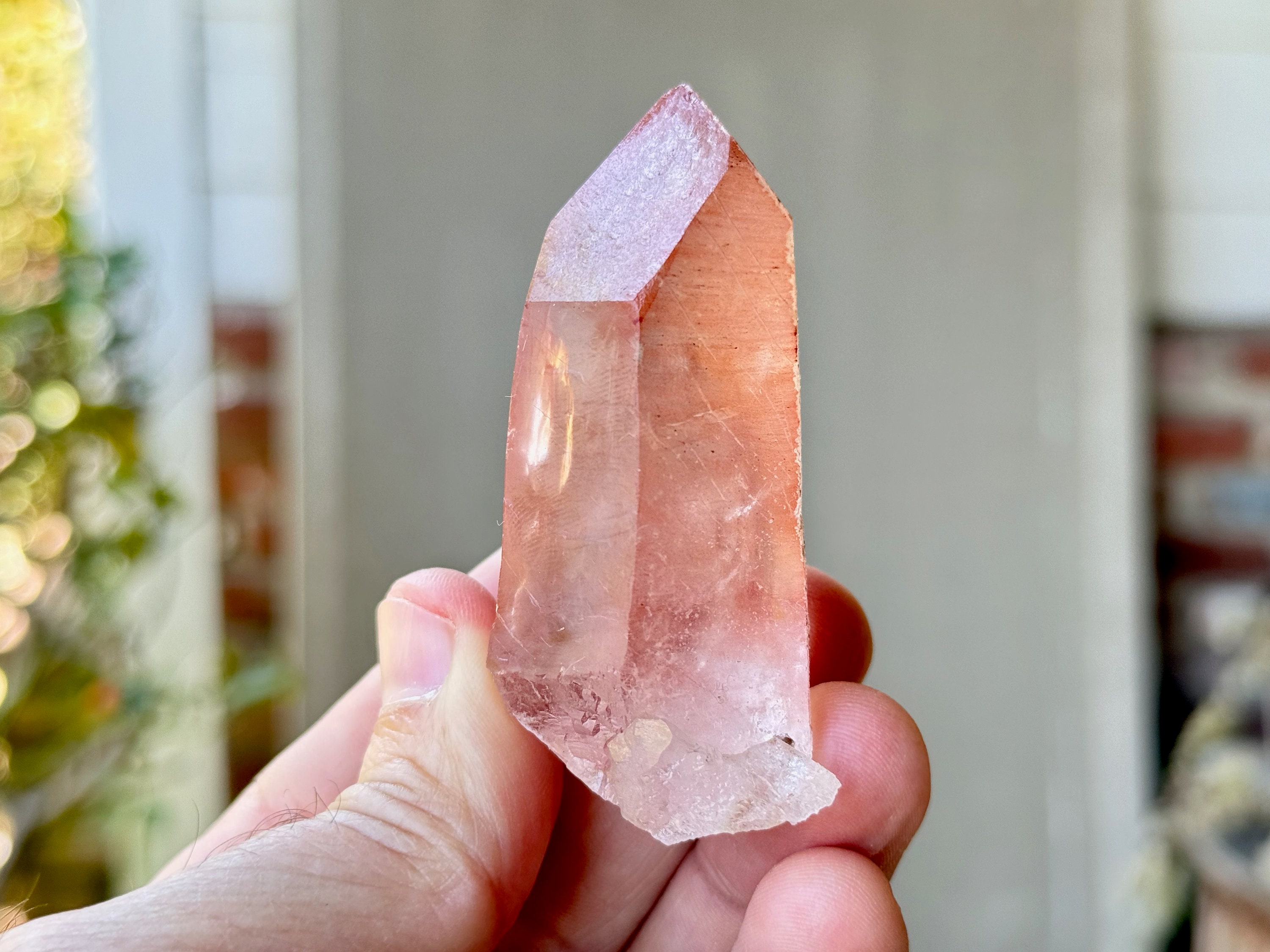 This Pink Scarlet Temple Lemurian Quartz crystal comes from a recent find (2024) in Diamantina, Minas Gerais, Brazil.