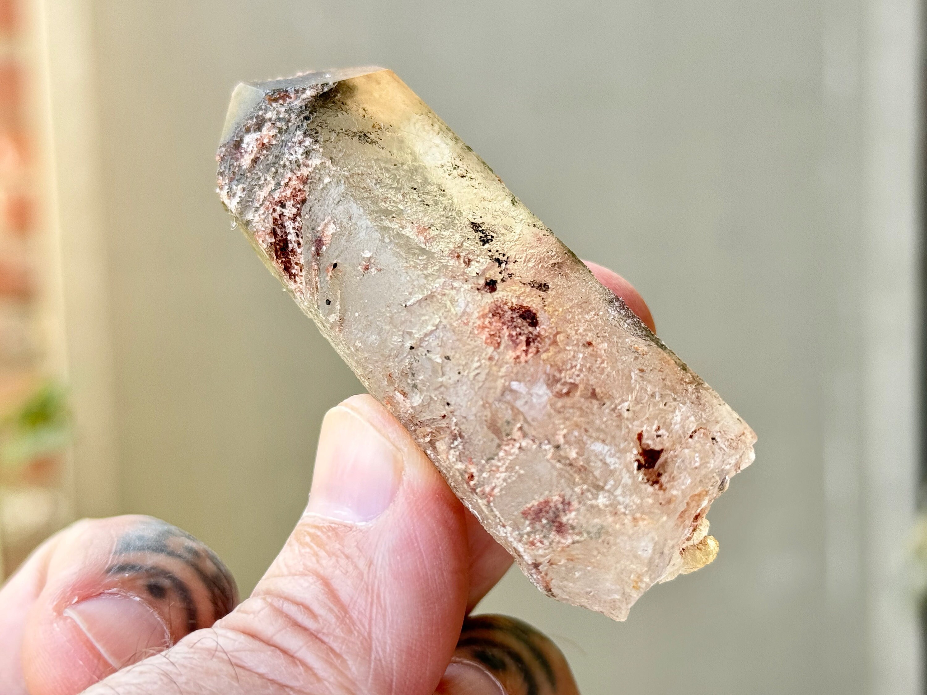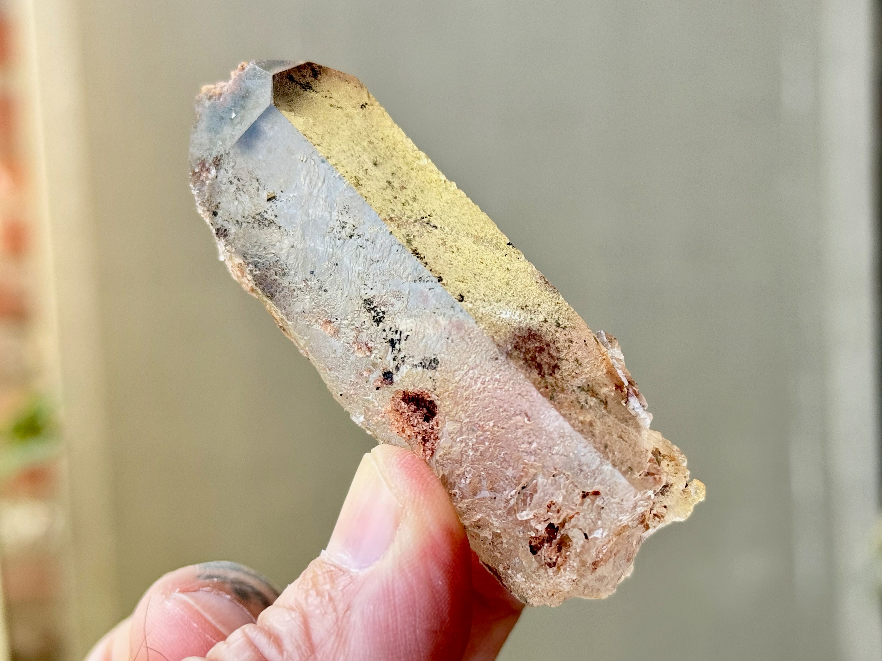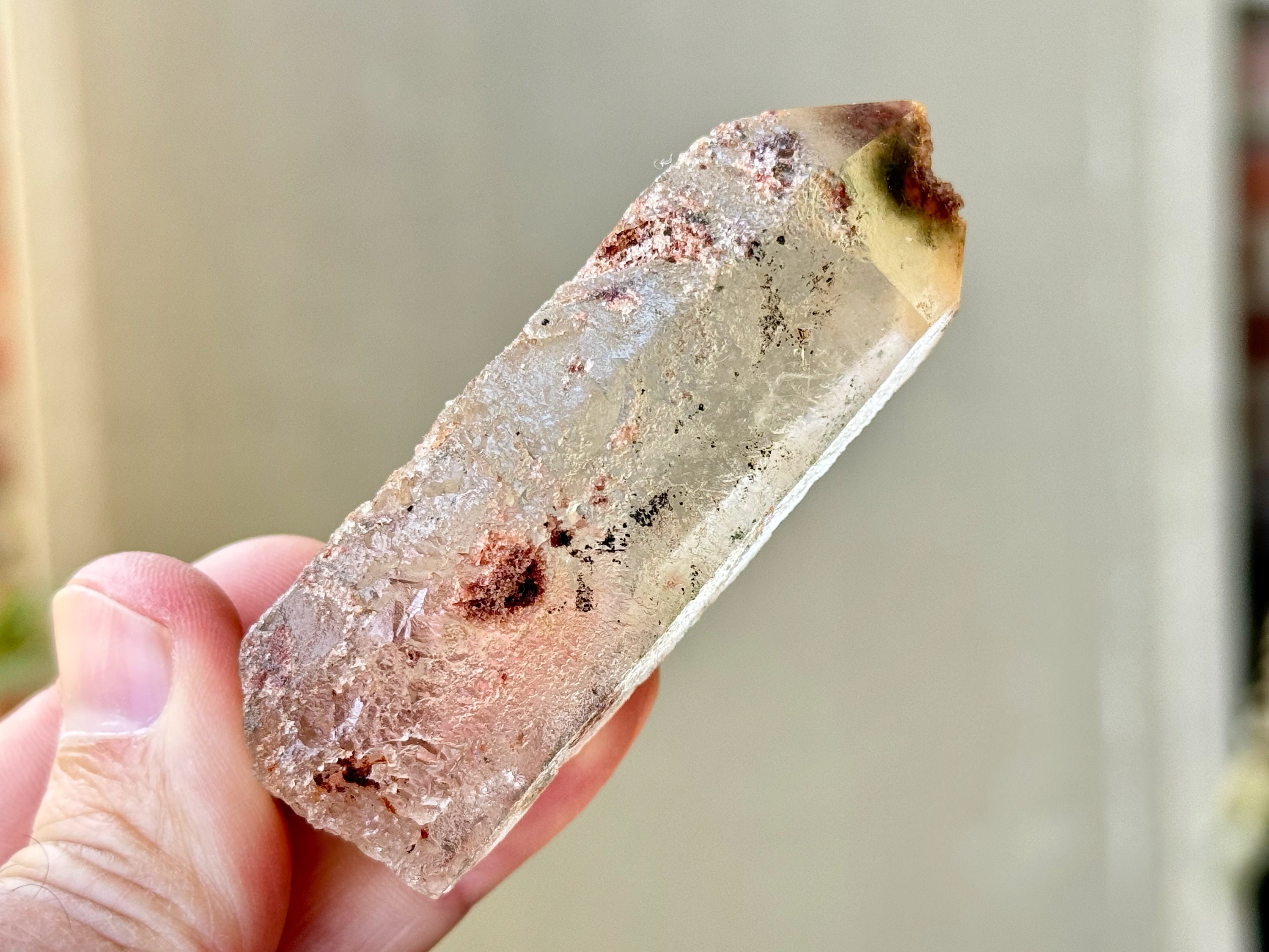 Lodolite Quartz, sometimes referred to as Garden Quartz for their beautiful inner landscapes, refers to crystals with colorful inclusions that may include Green Chlorite, Kaolinite, Hematite, Sulfite and other inclusions that all fall under the umbrella of "Lodolite." Each of these inclusions carries a particular energy of purification, grounding or healing, and the combination of these elements together, amplified by the Quartz surrounding them, creates a powerful healing energy. Aesthetically, they often have stunning inner landscapes that often look like mossy underwater gardens.