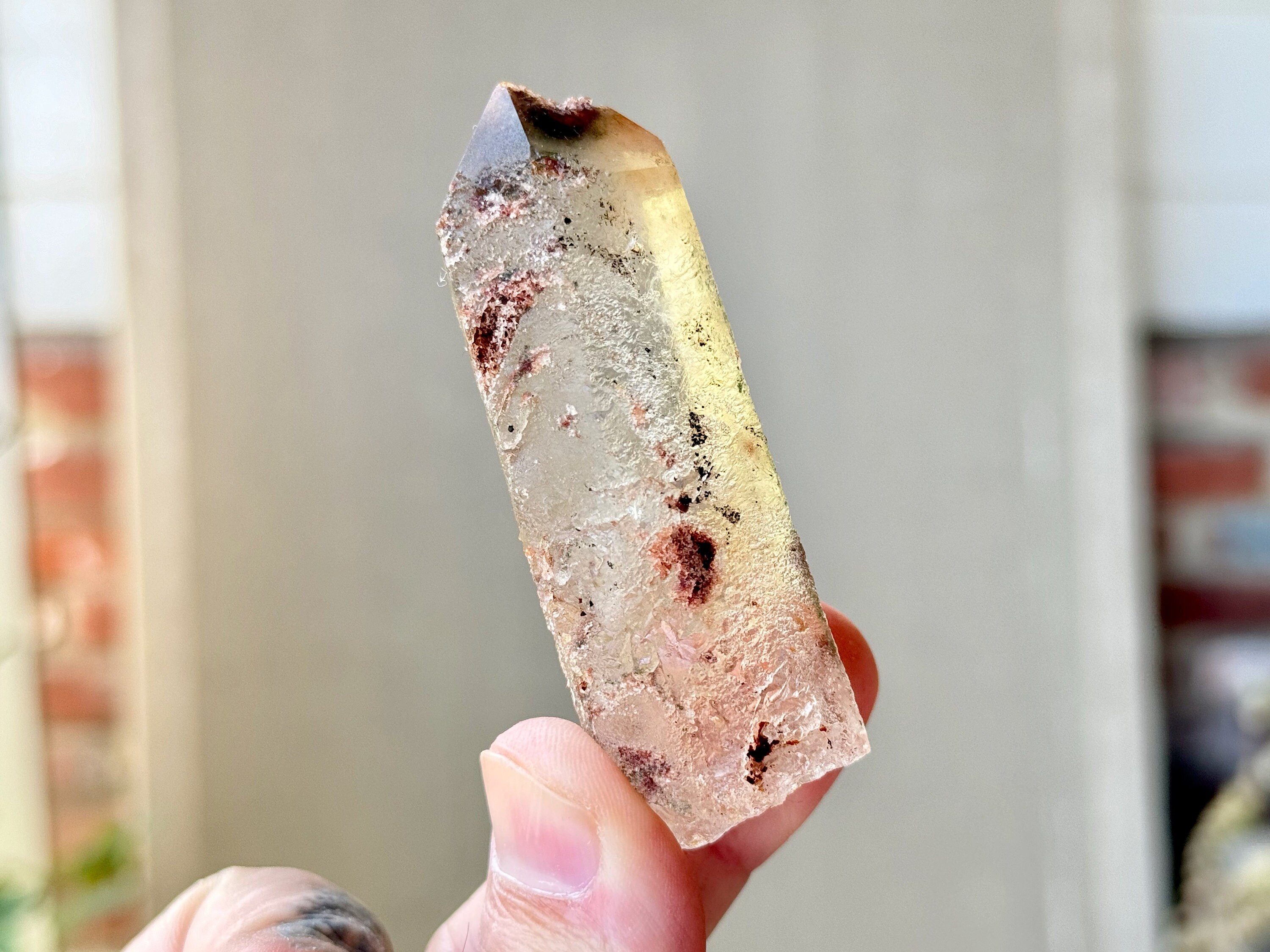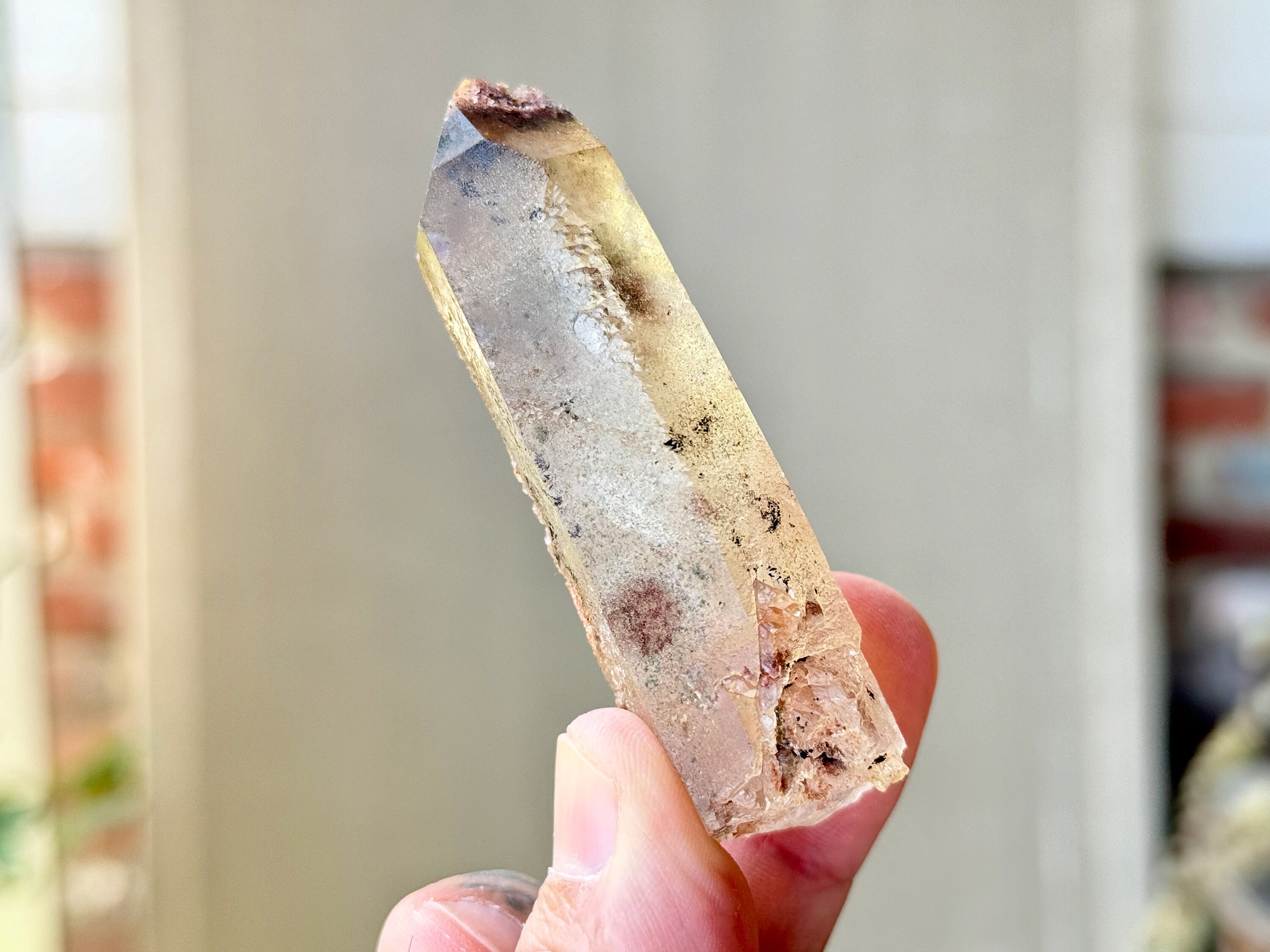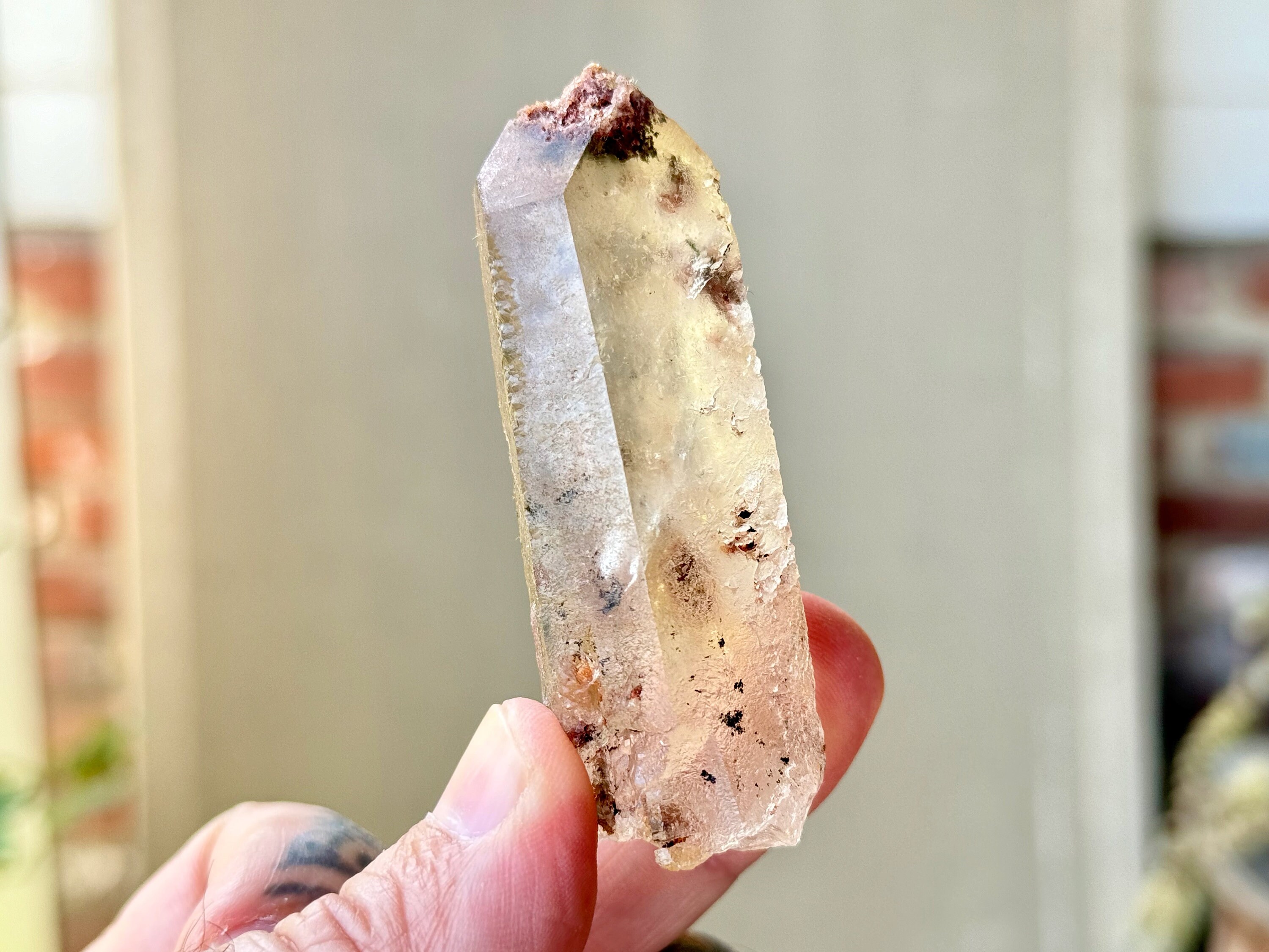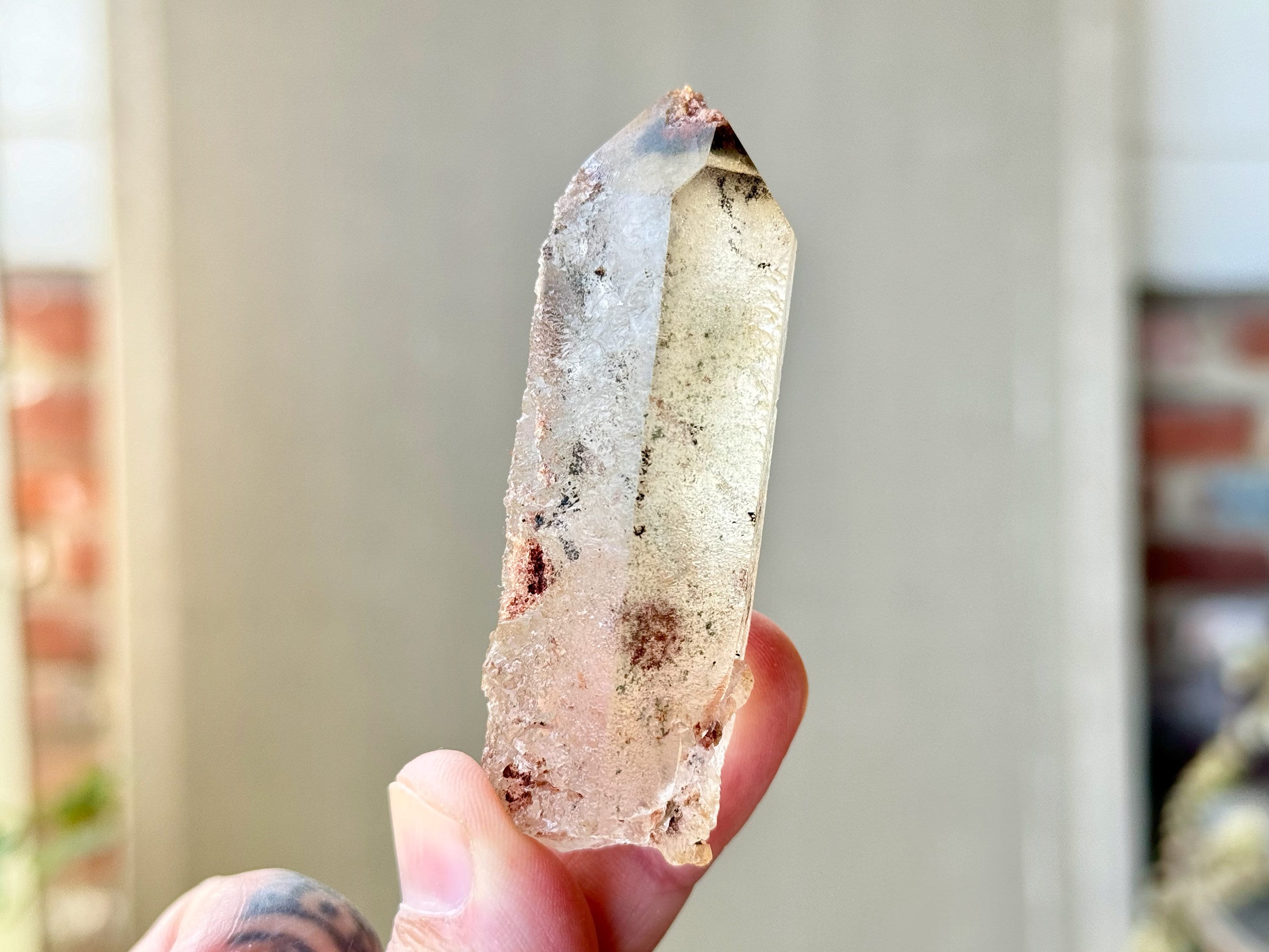 Lodolite Quartz, sometimes referred to as Garden Quartz for their beautiful inner landscapes, refers to crystals with colorful inclusions that may include Green Chlorite, Kaolinite, Hematite, Sulfite and other inclusions that all fall under the umbrella of "Lodolite." Each of these inclusions carries a particular energy of purification, grounding or healing, and the combination of these elements together, amplified by the Quartz surrounding them, creates a powerful healing energy. Aesthetically, they often have stunning inner landscapes that often look like mossy underwater gardens.