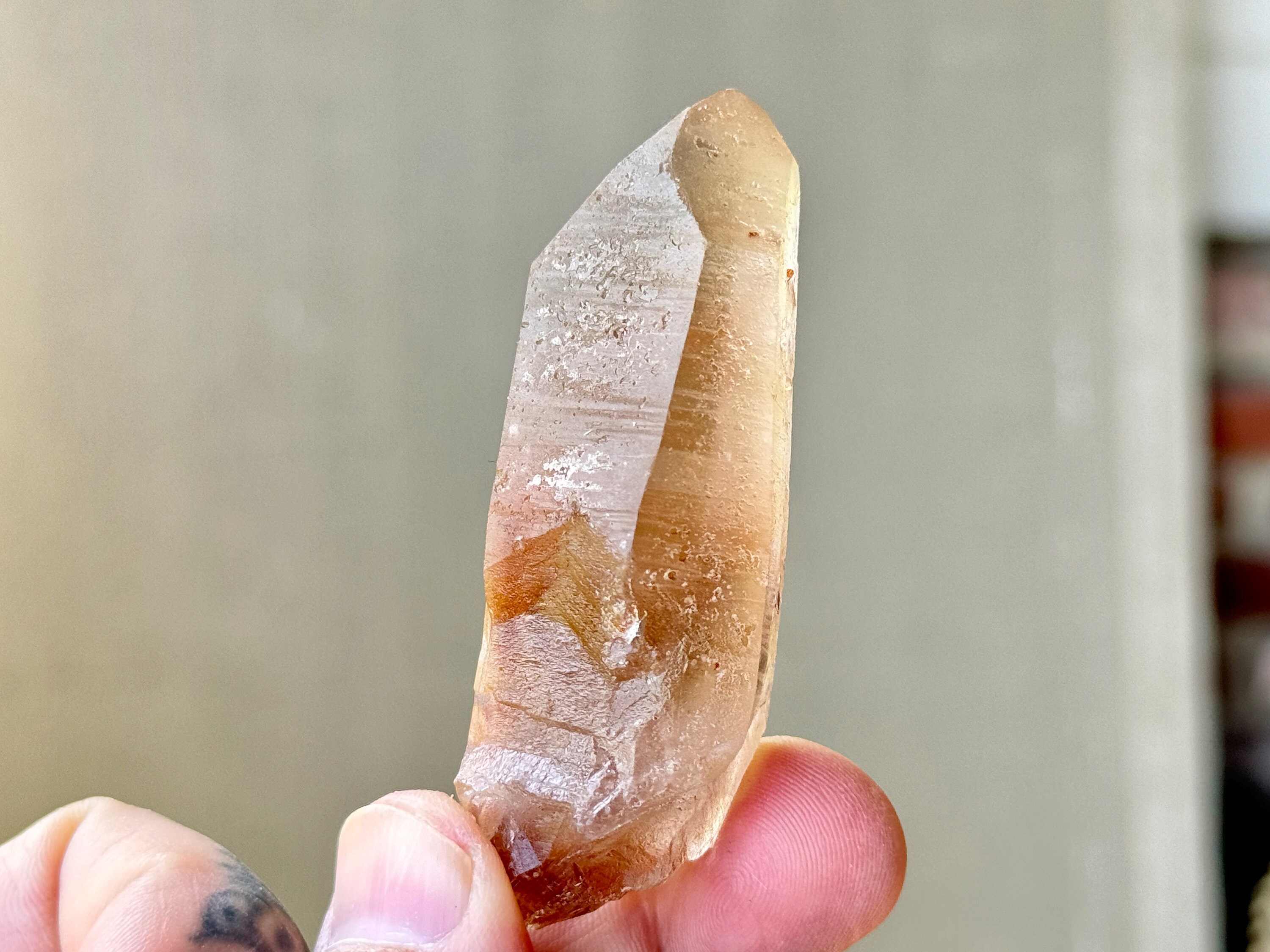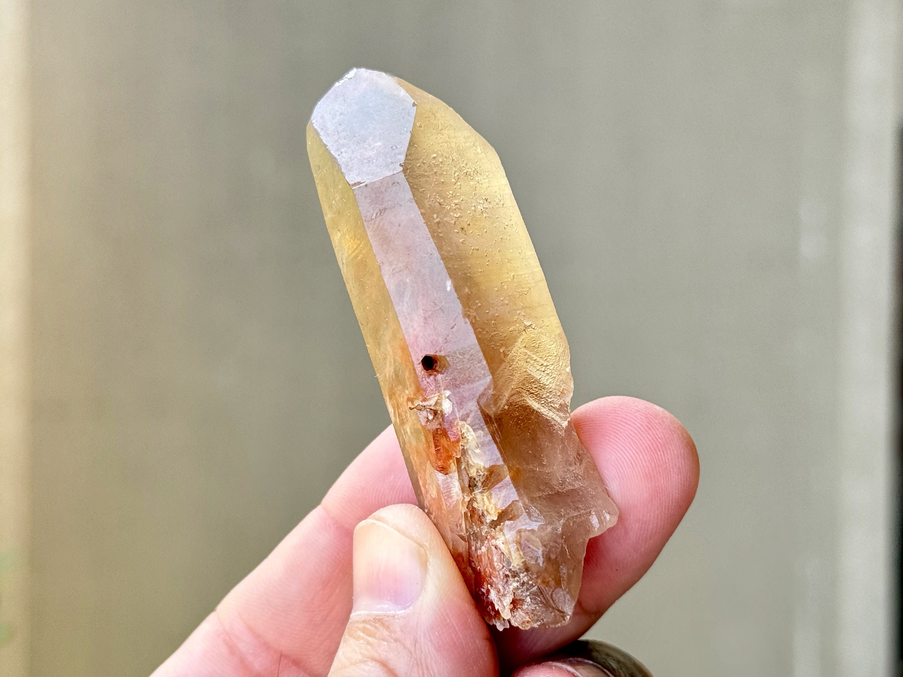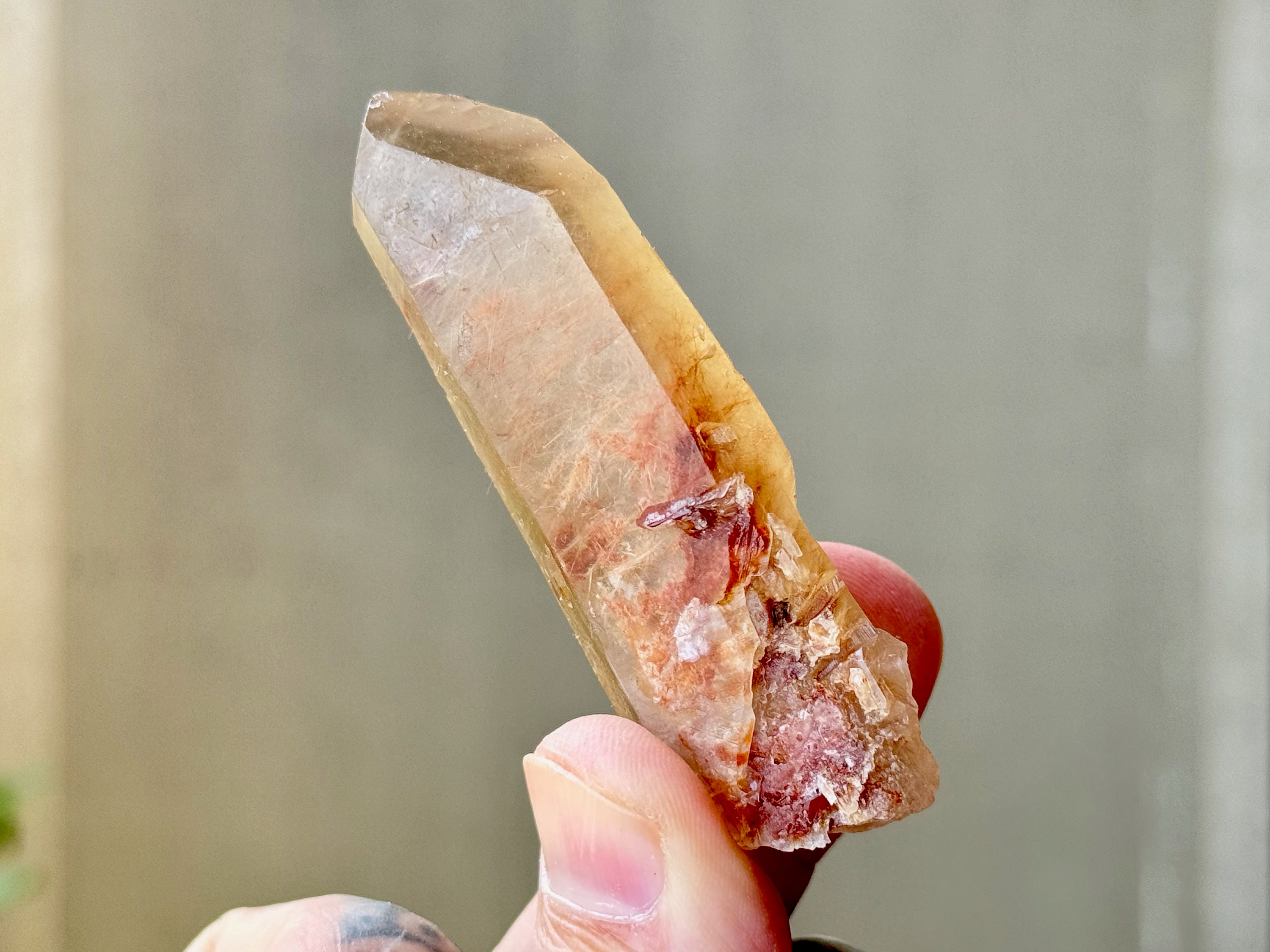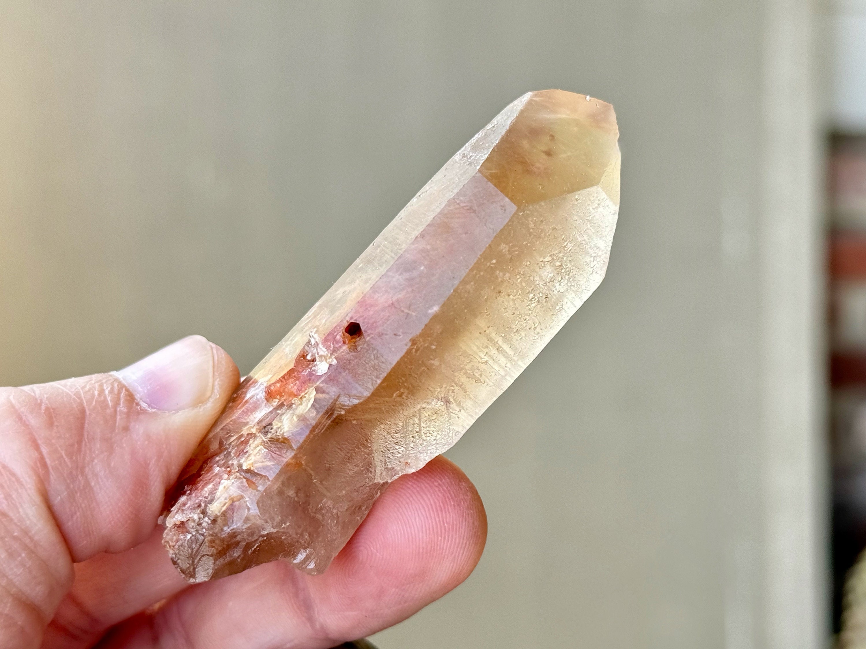 One of only a very few Lemurian Quartz crystals from this small find that feature vibrant red and golden hues from Hematite inclusion!