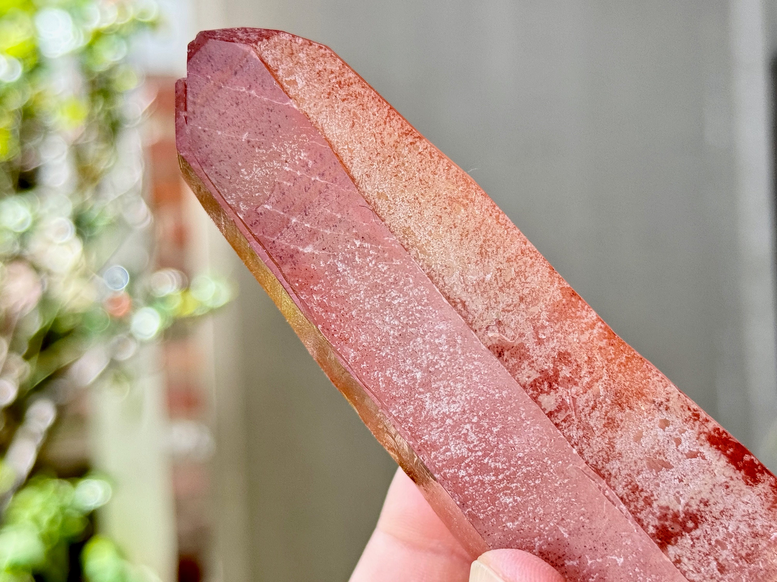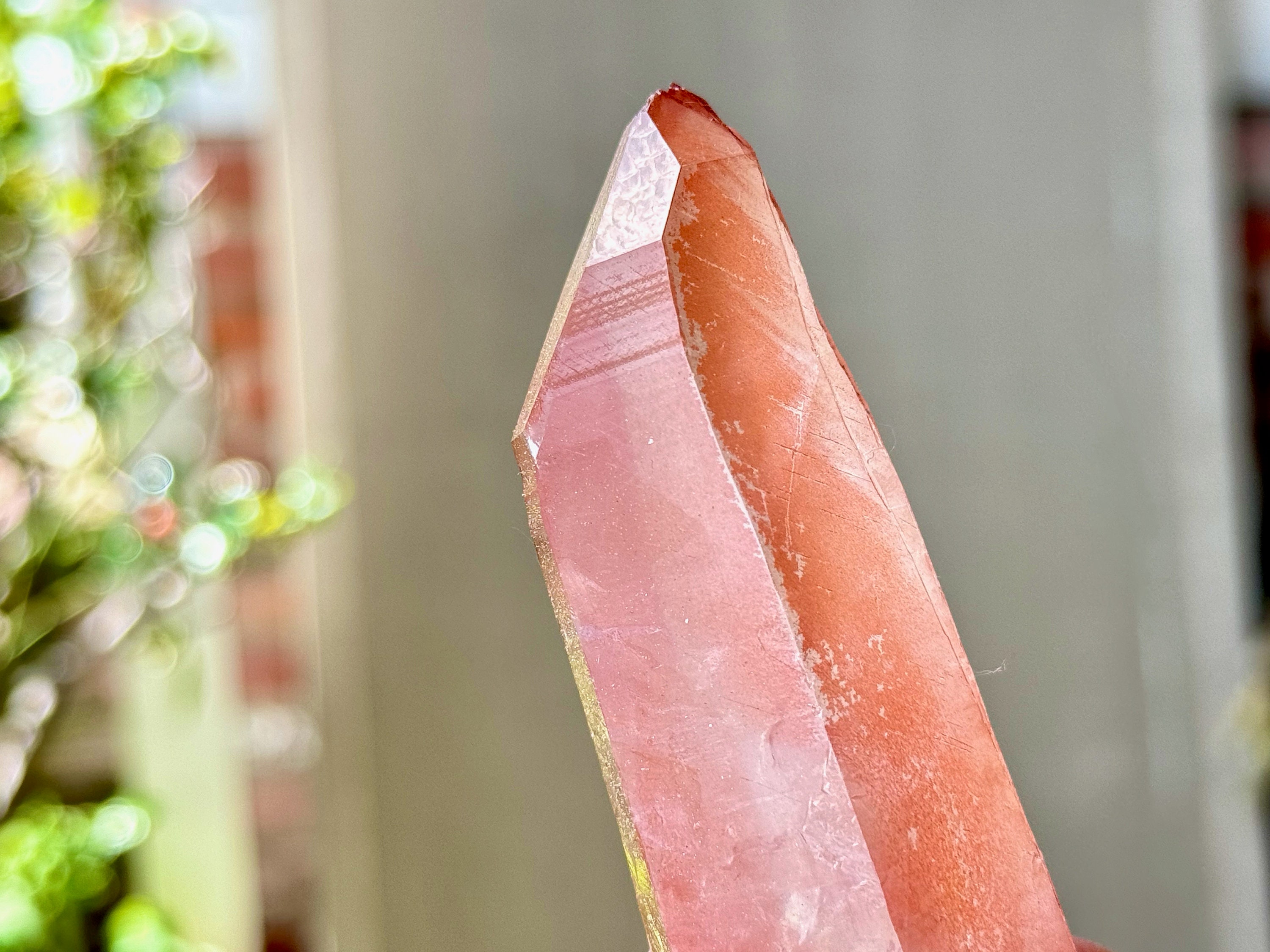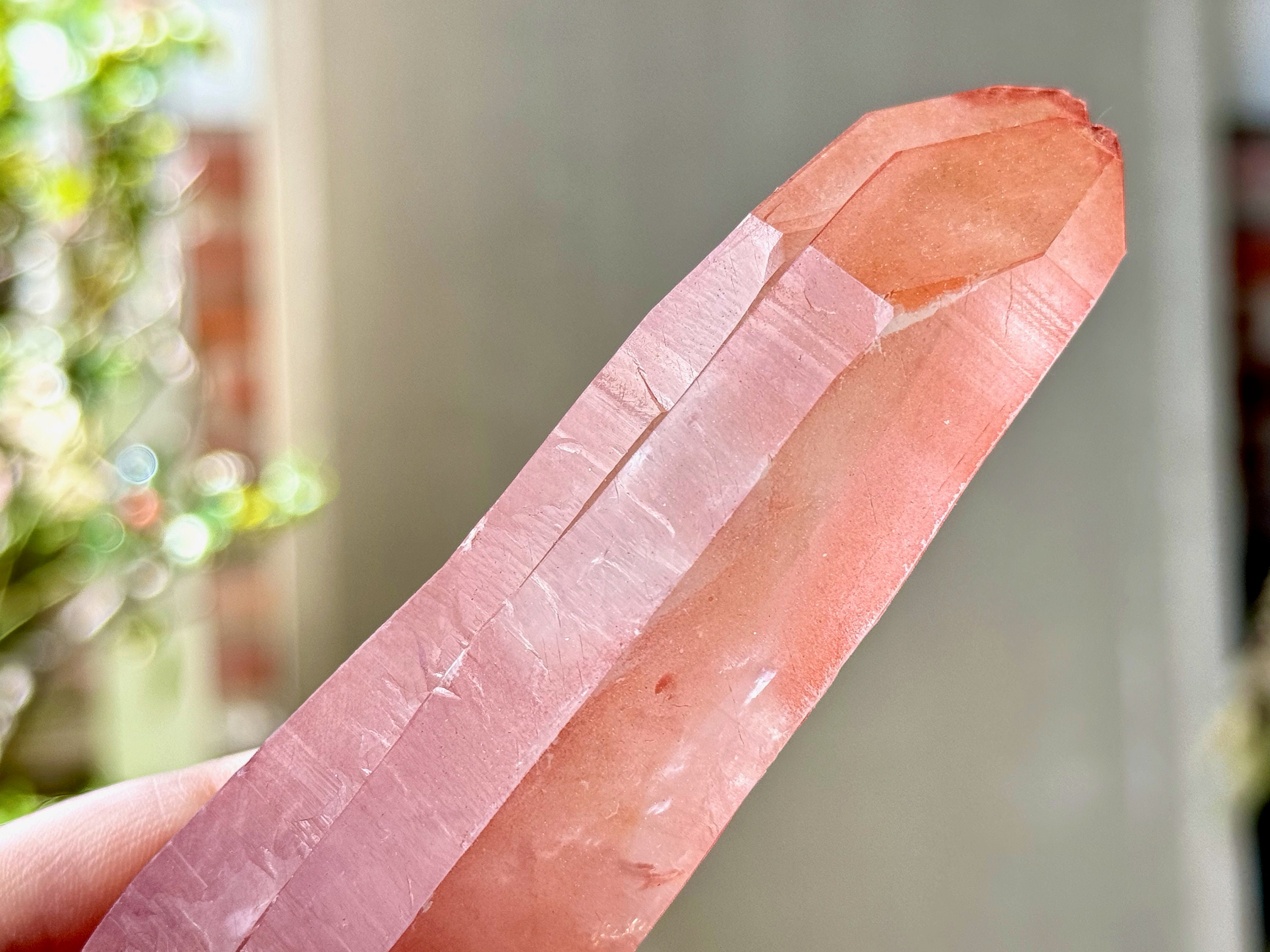 This Pink Scarlet Temple Lemurian Quartz crystal comes from a recent find (2024) in Diamantina, Minas Gerais, Brazil.
