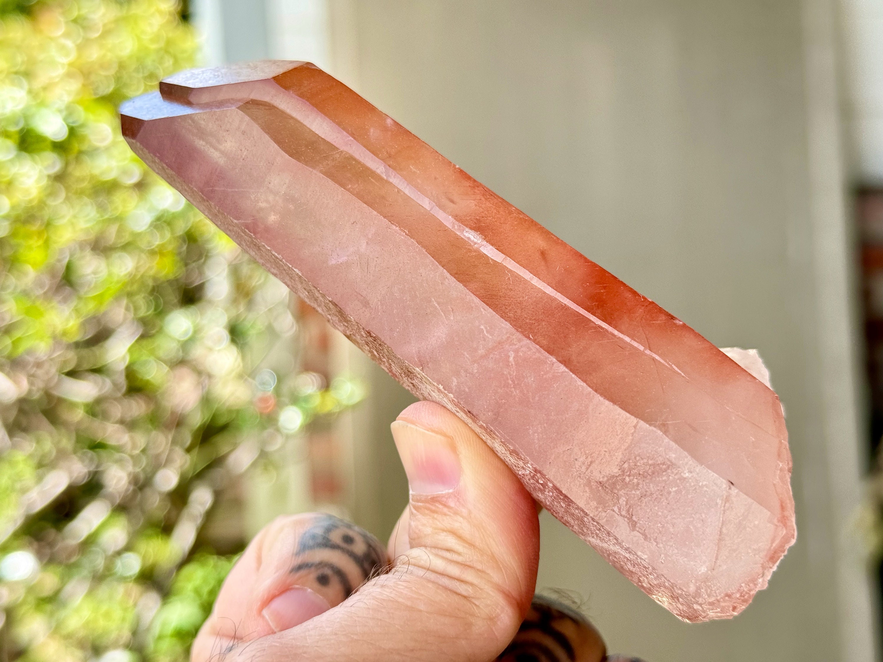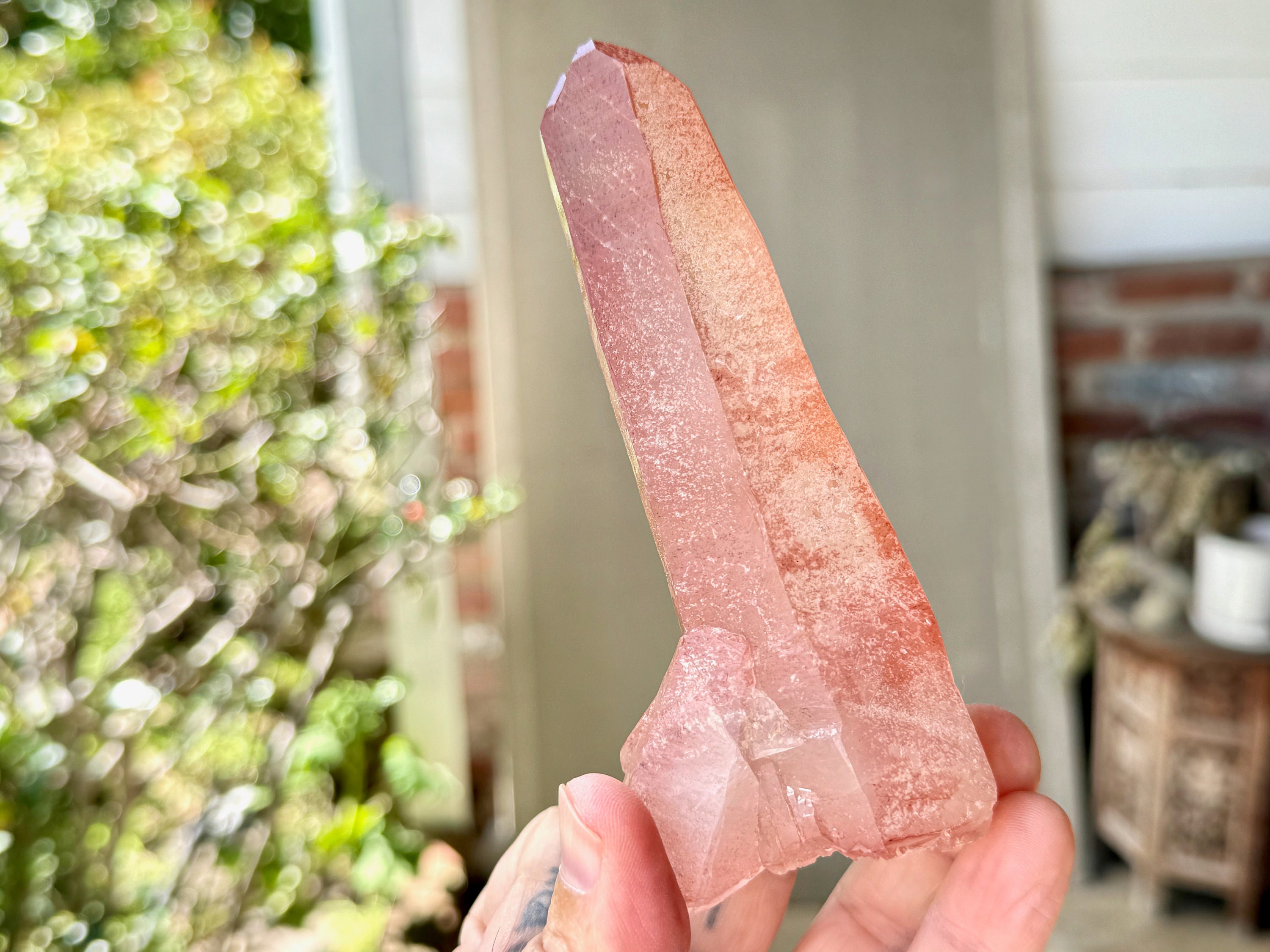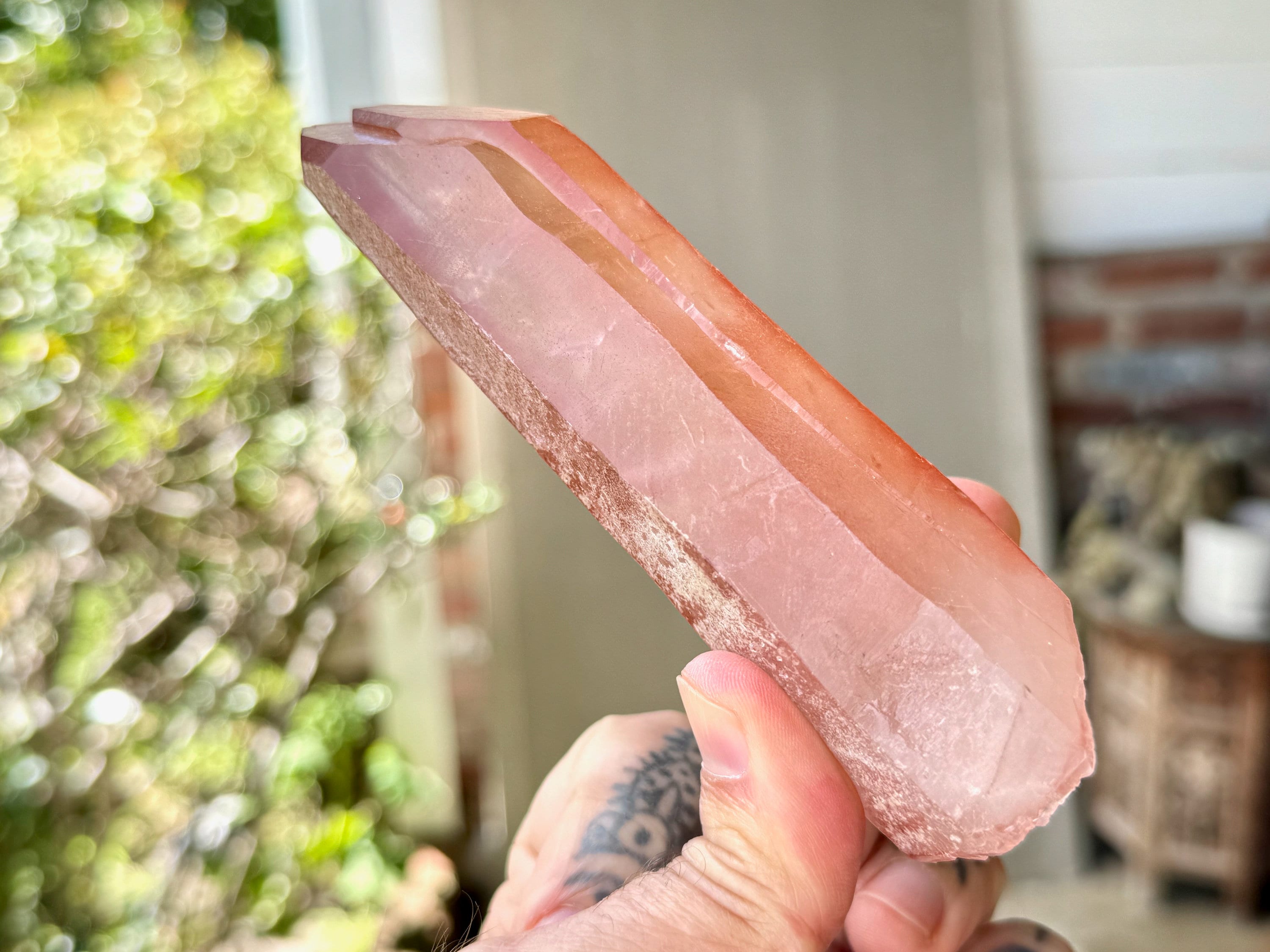 This Pink Scarlet Temple Lemurian Quartz crystal comes from a recent find (2024) in Diamantina, Minas Gerais, Brazil.