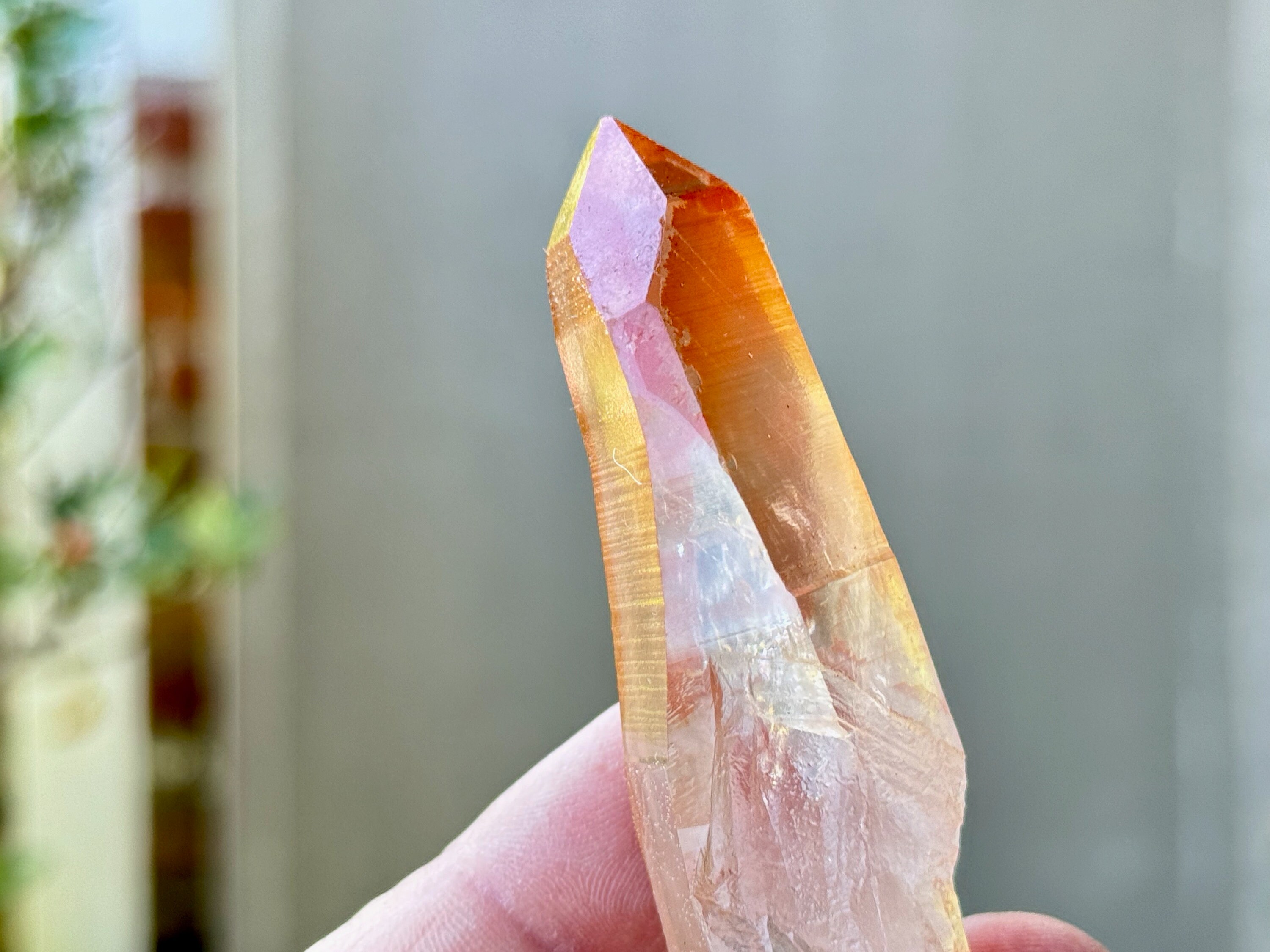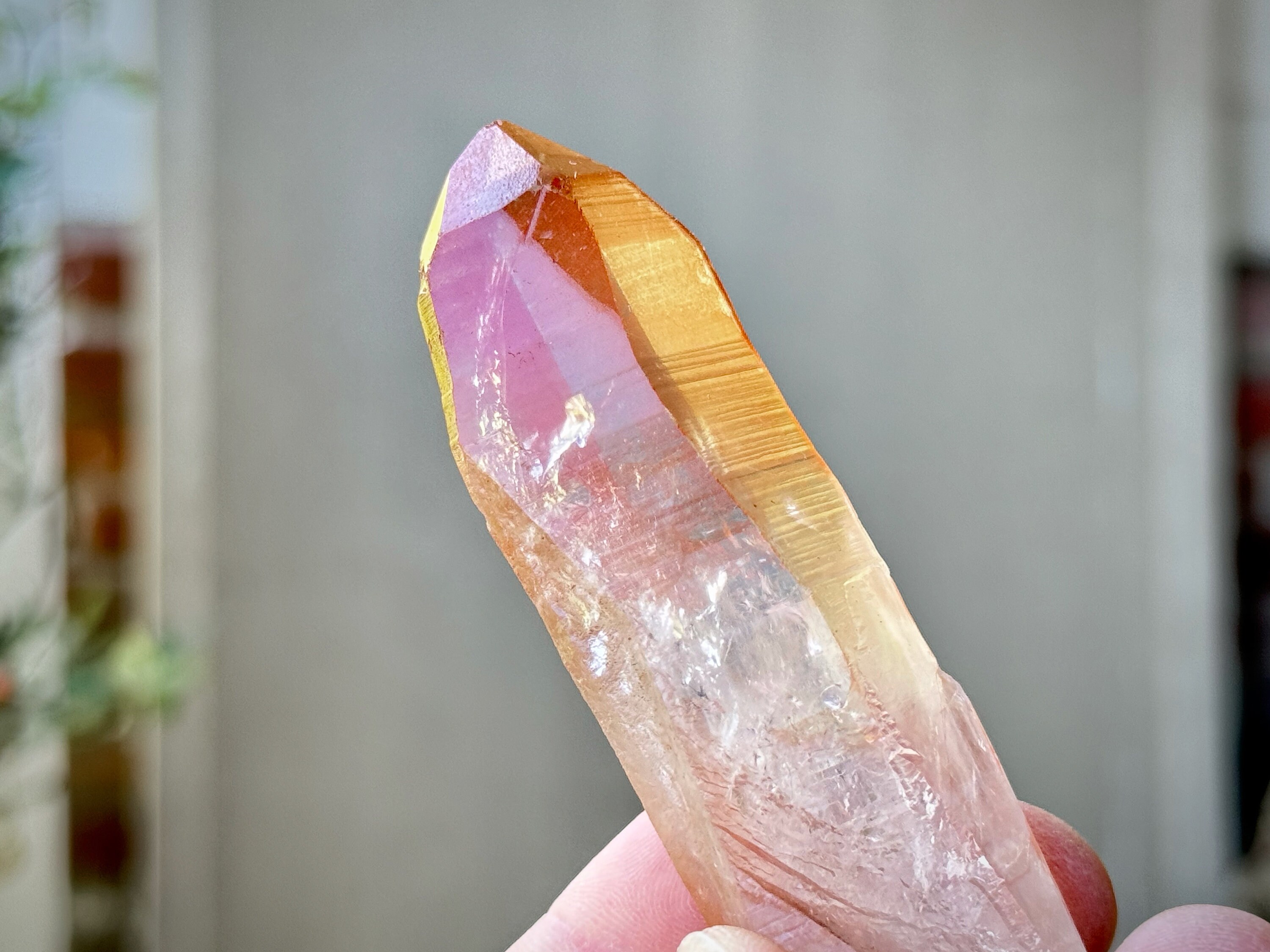 This Pink Scarlet Temple Lemurian Quartz crystal comes from a recent find (2024) in Diamantina, Minas Gerais, Brazil.