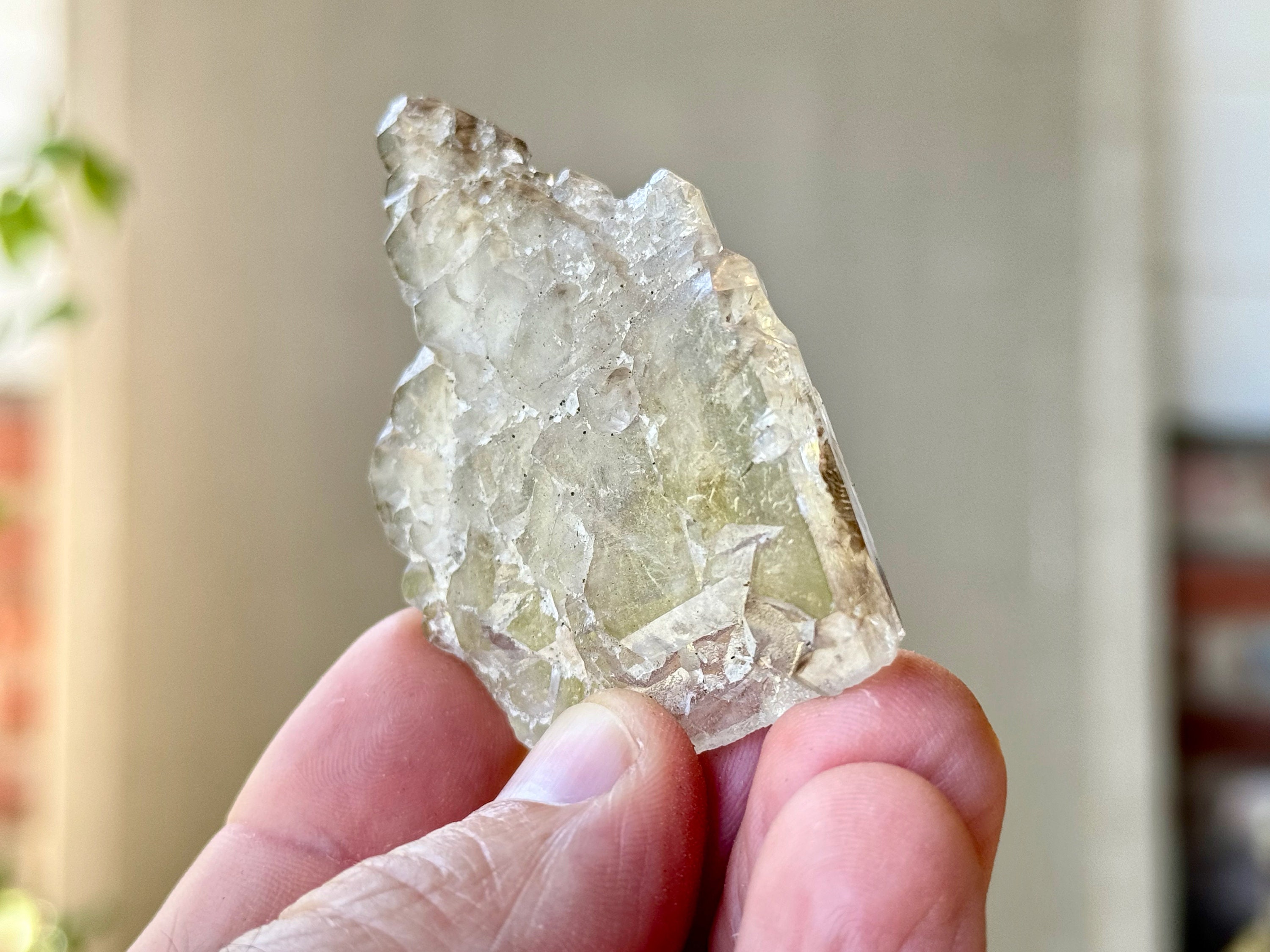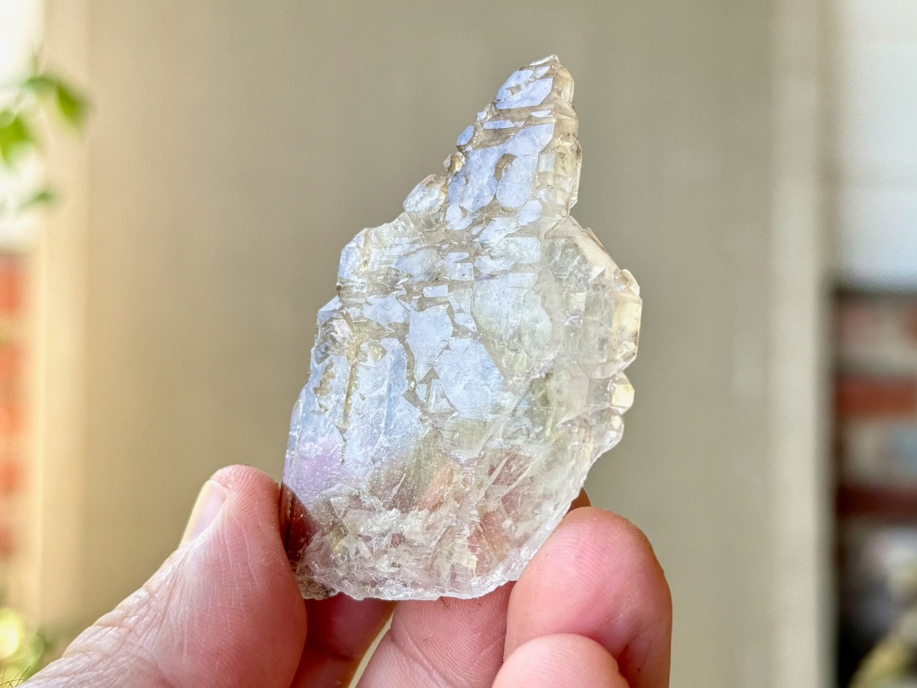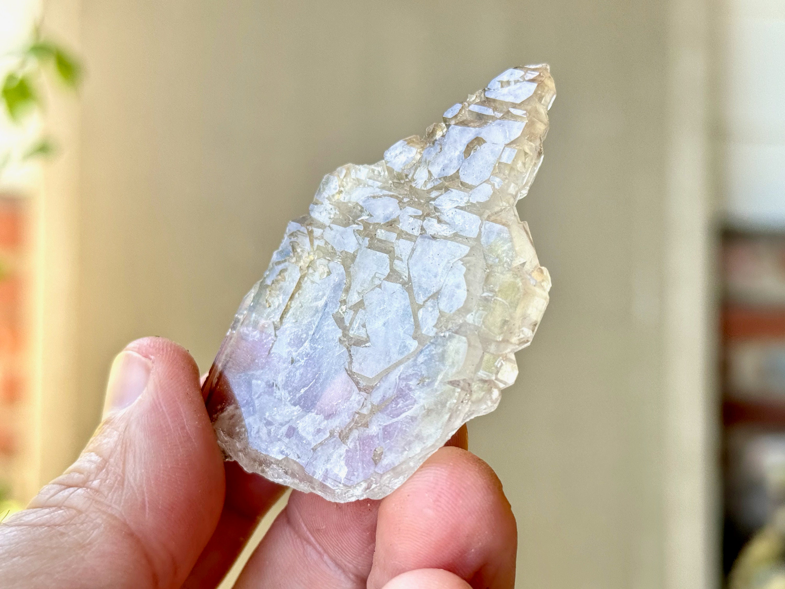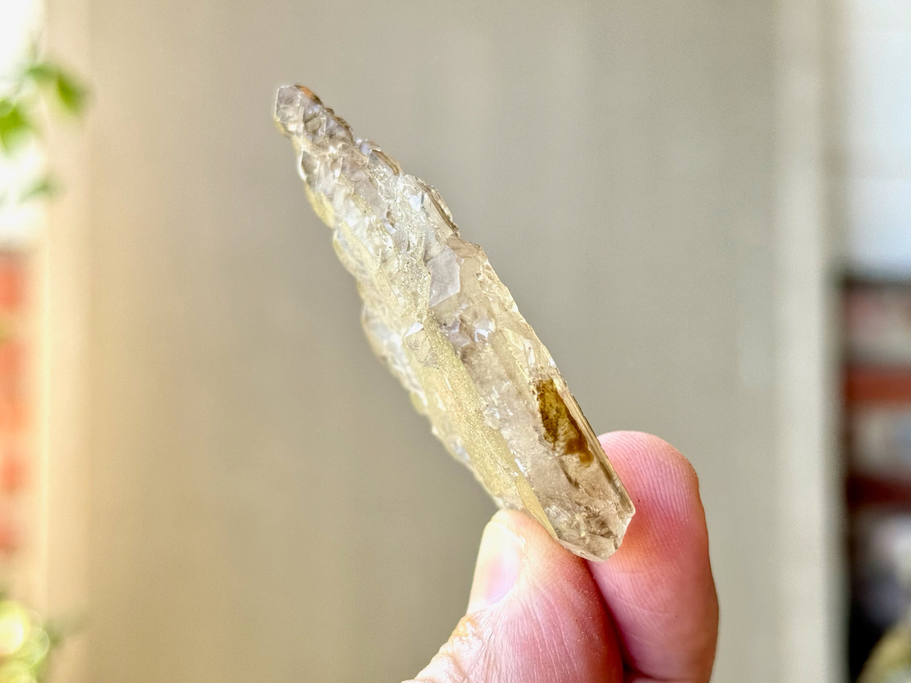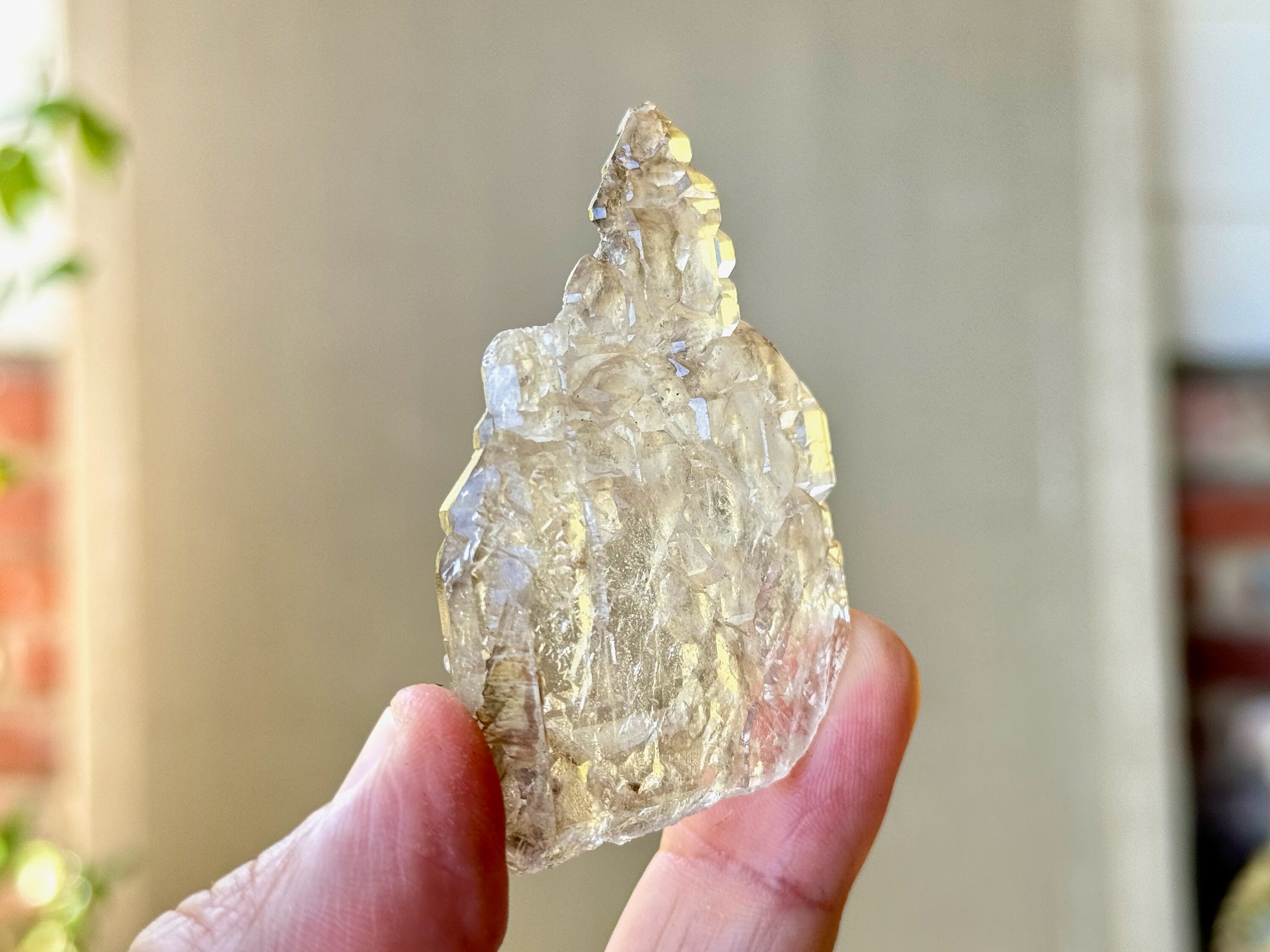 This crystal is what we would consider a "floater" or "galactic key" formation, having broken off a larger crystal at some point hundreds of millions of years ago in the Earth, due to shifting tectonic plates, and managed to healed itself to be "complete" again. The broad sides of this piece show off beautiful textures that occurred due to this healing process.