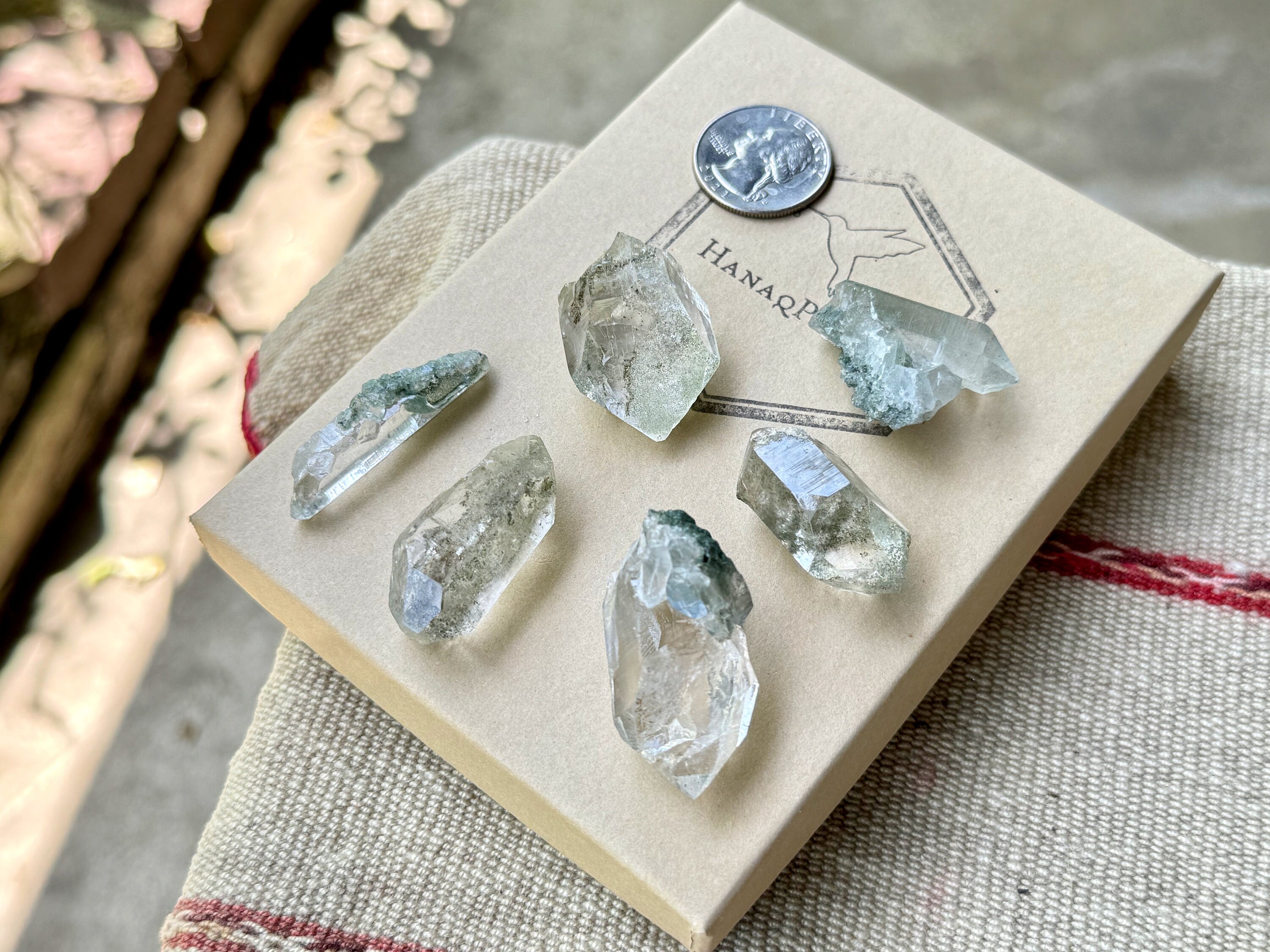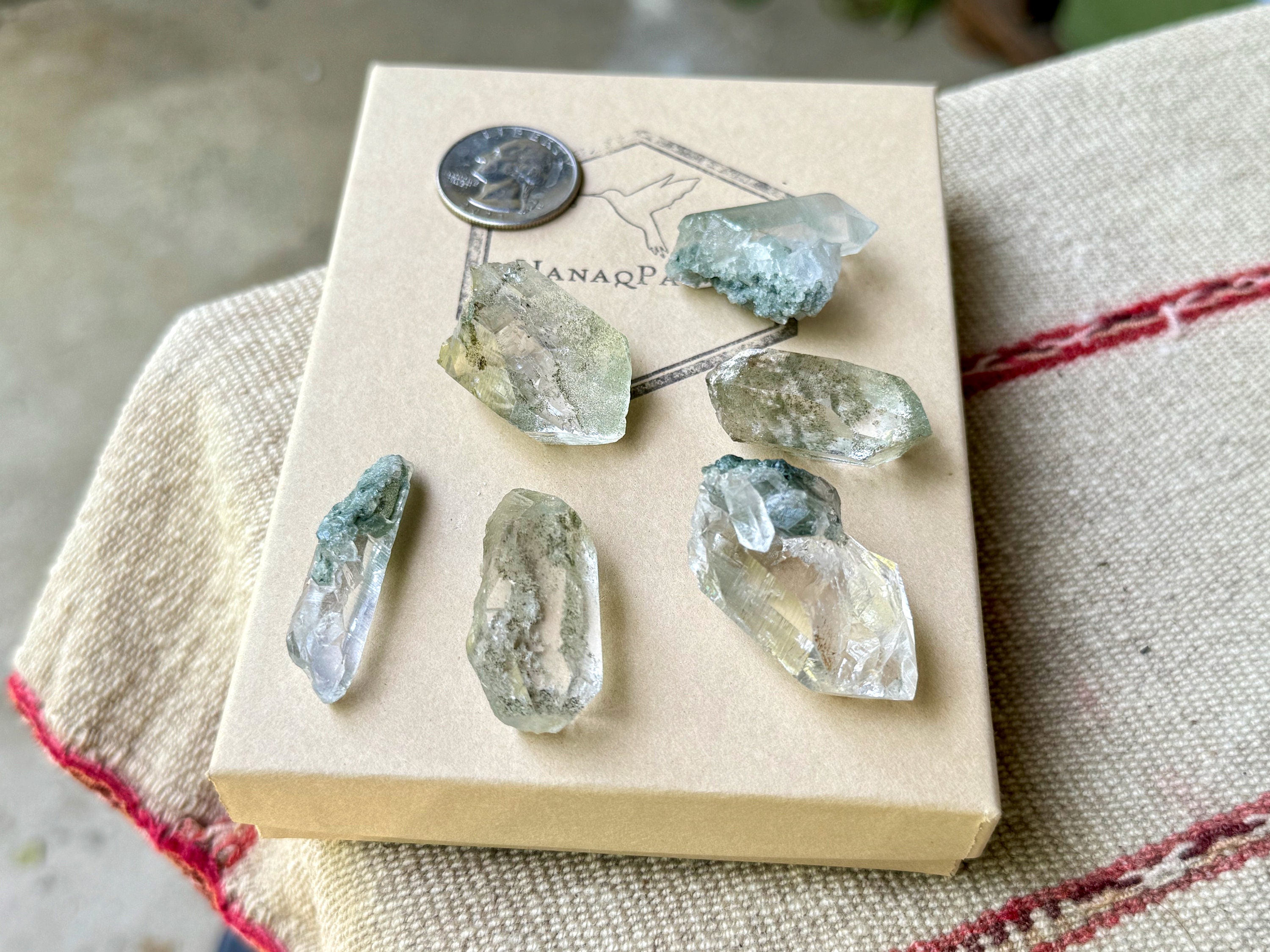 Each of these crystals possesses beautiful inclusions of mossy Green Chlorite. These are very high quality crystals, all point formations (i.e. no clusters) and all terminations are excellent.