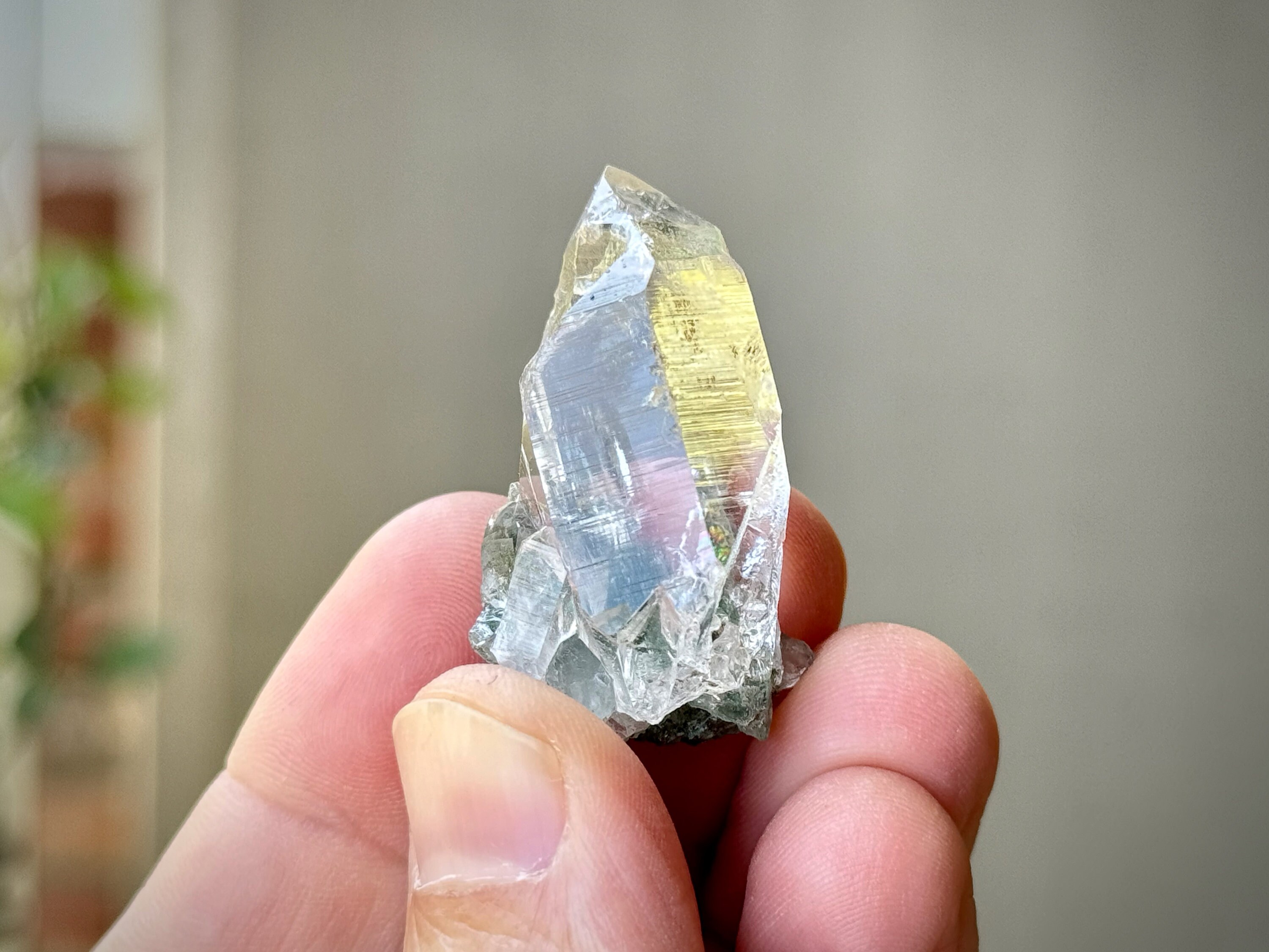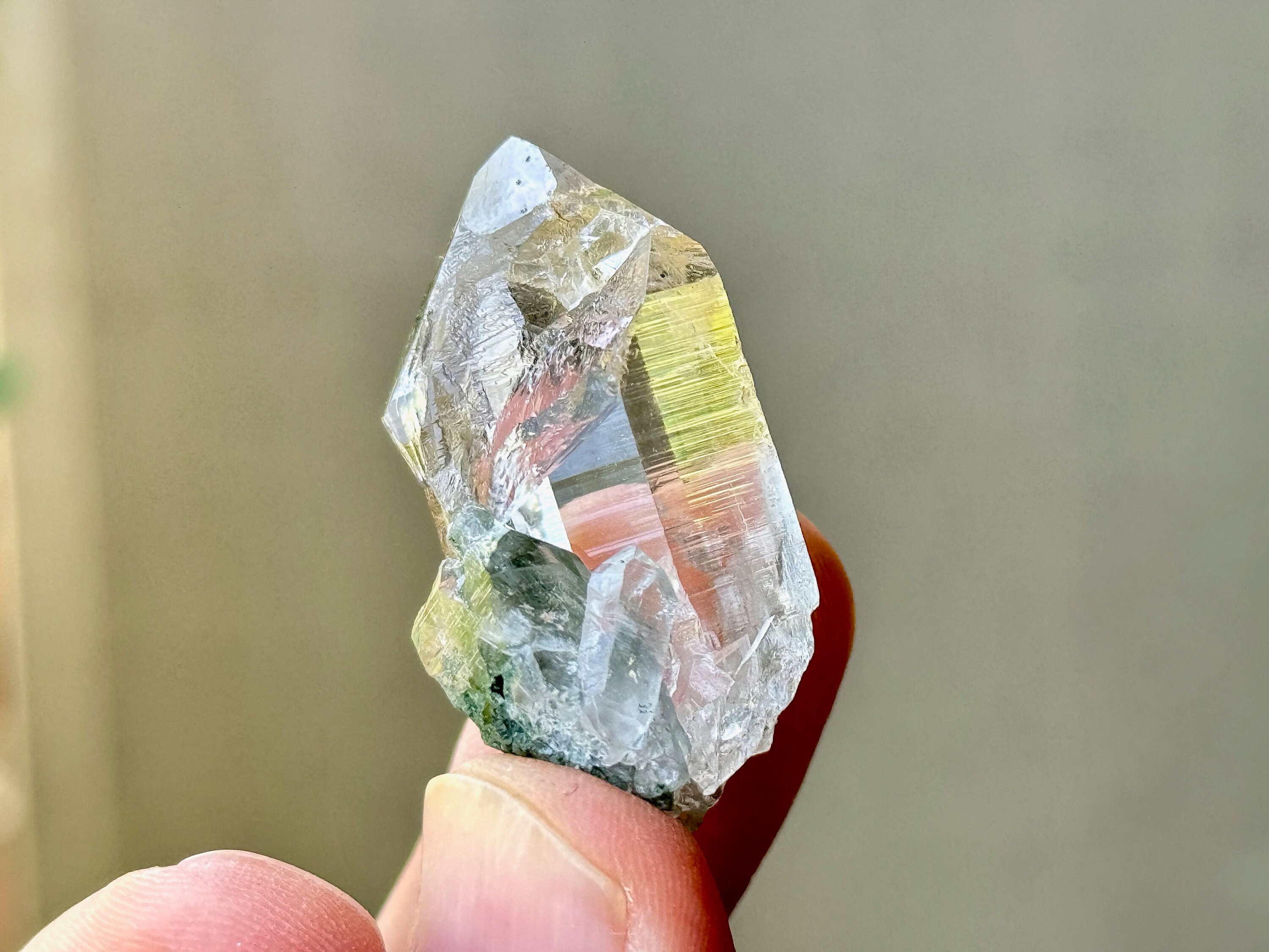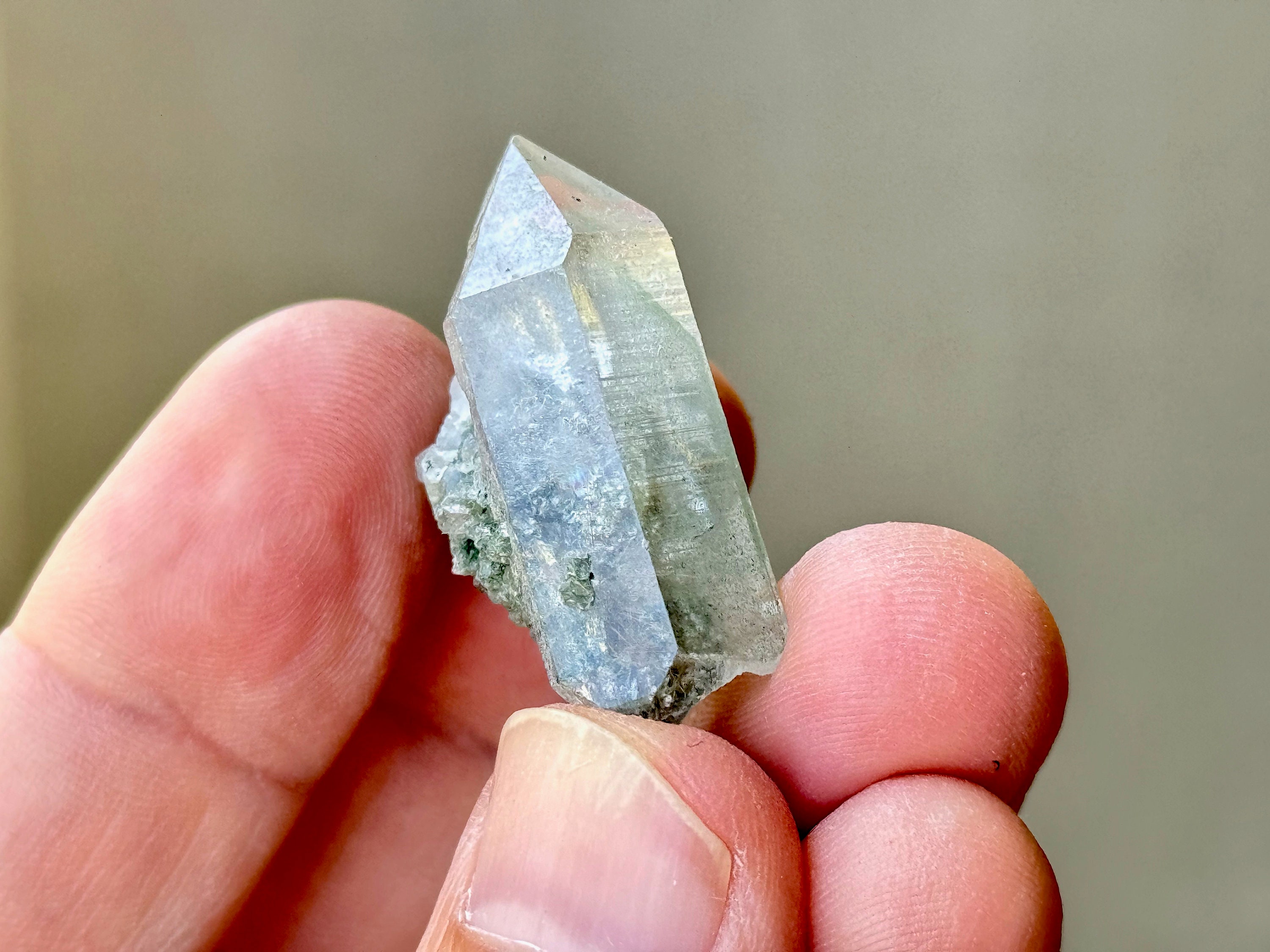 Himalayan Quartz carries one of the purest spiritual energies of any crystal, and they are known for having amazing water-clear (optical) clarity and luster. Many crystals from this find also have inclusions of deep Green Chlorite, bringing a wonderful property of purification, heart healing and a connection to Nature Spirits.