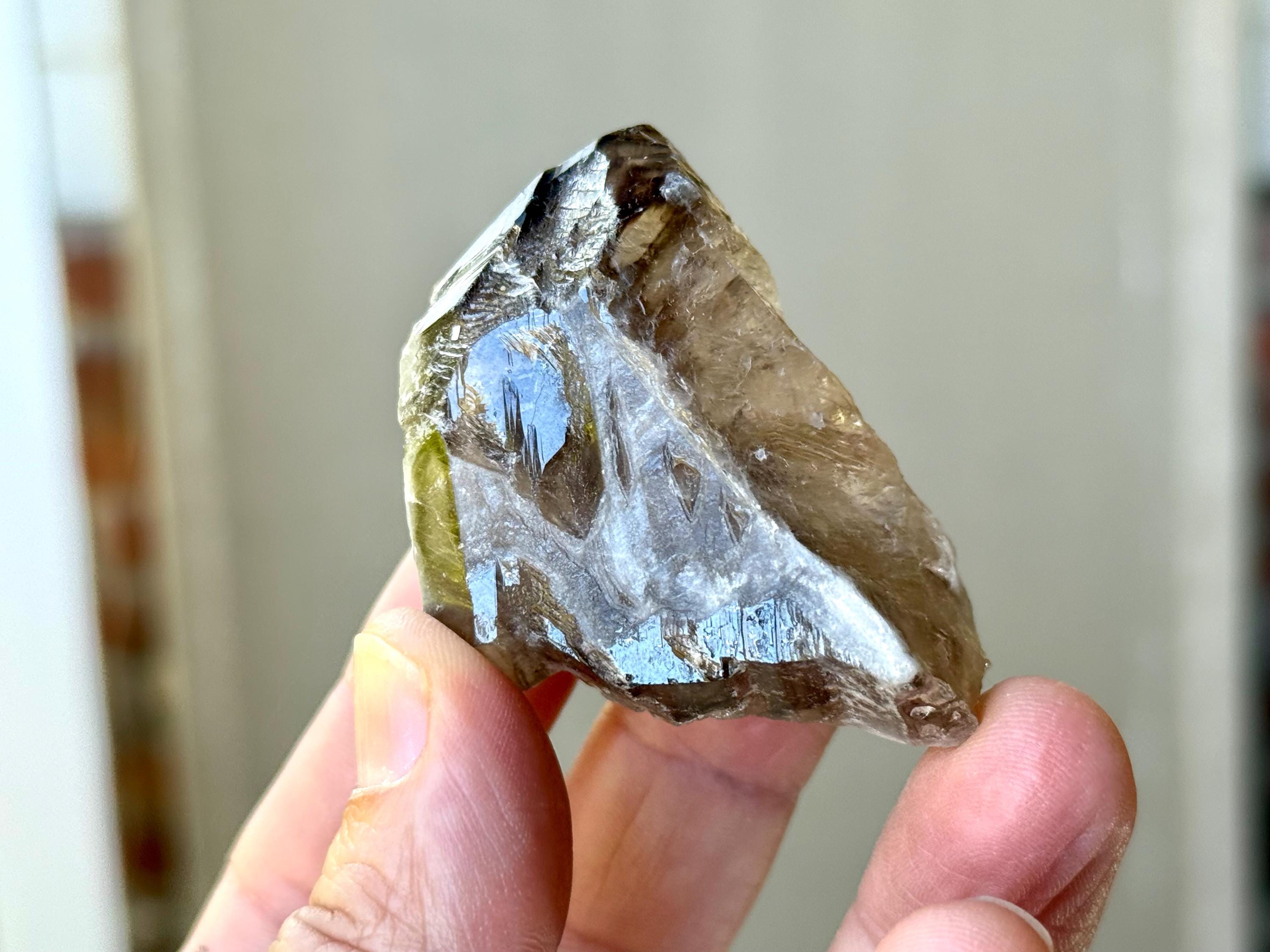 This Elestial Smoky Quartz crystal comes from the Aracuai region of Minas Gerais, Brazil. Elestial crystals can be distinguished by their layered growth patterns, multiple terminations (often trigonic), natural etched or textural surfaces (i.e. Jacare), and other distinctive and unique growth habits.