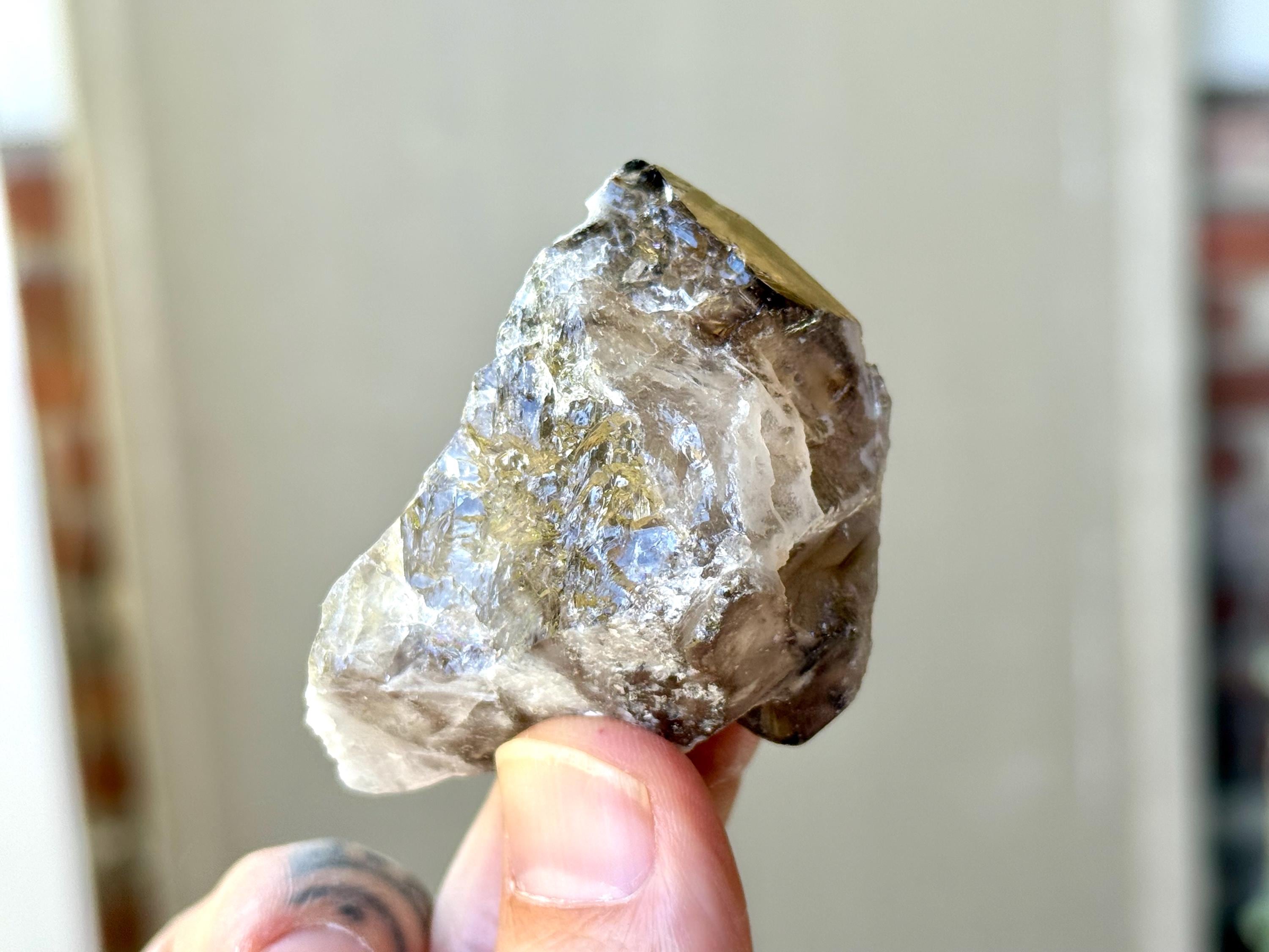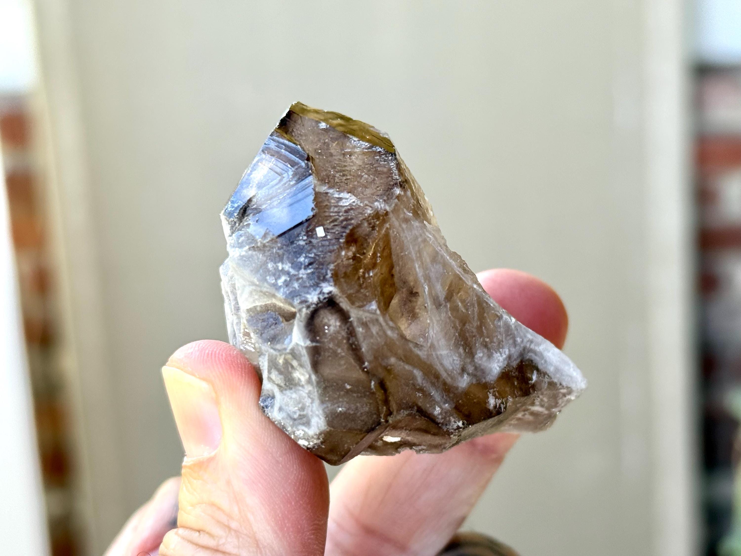 Exquisite luster and gorgeous smoky marbling to this beautiful Elestial Quartz crystal. When backlit, this crystal lights up beautifully! (Photos 4-5).