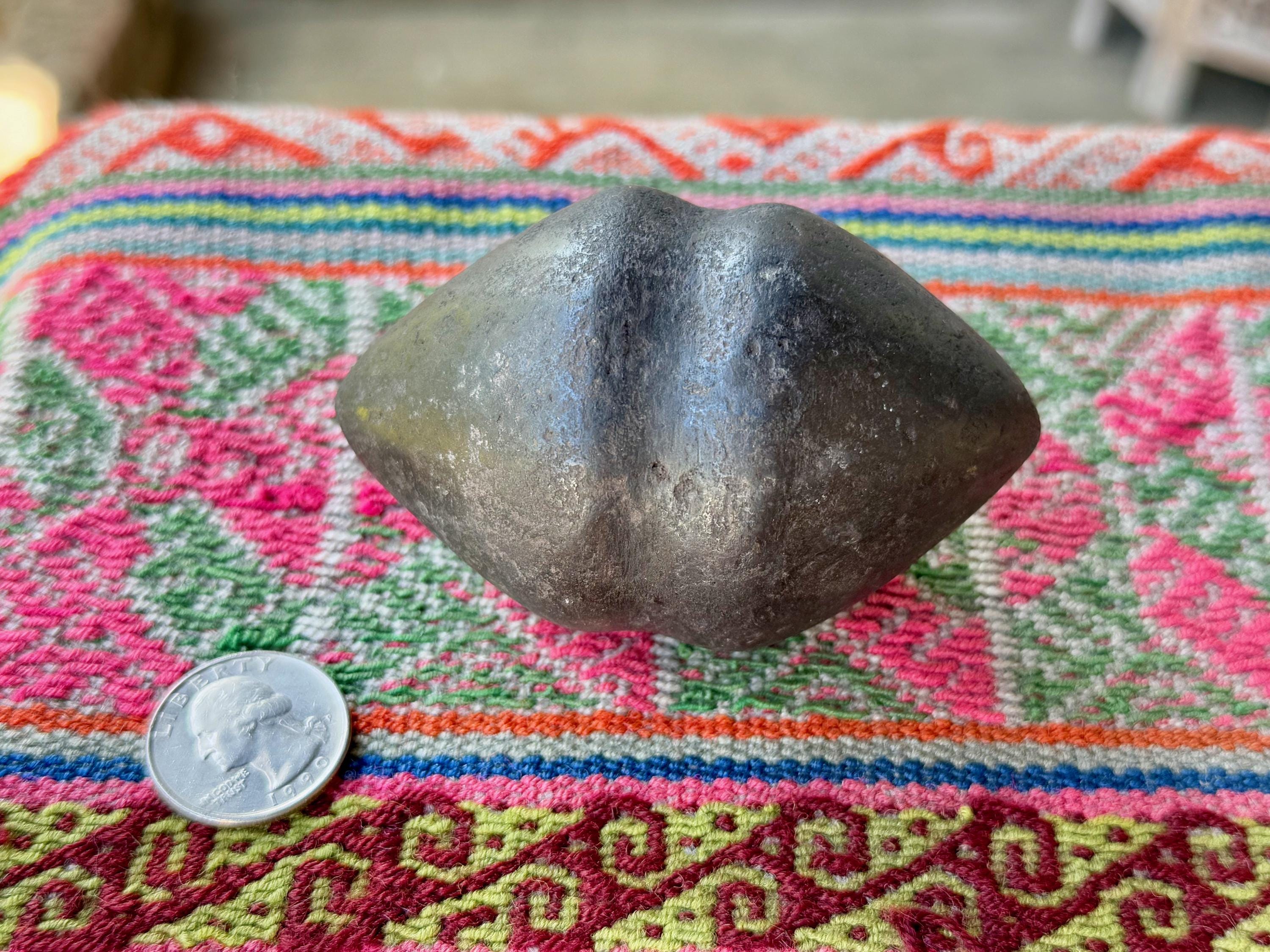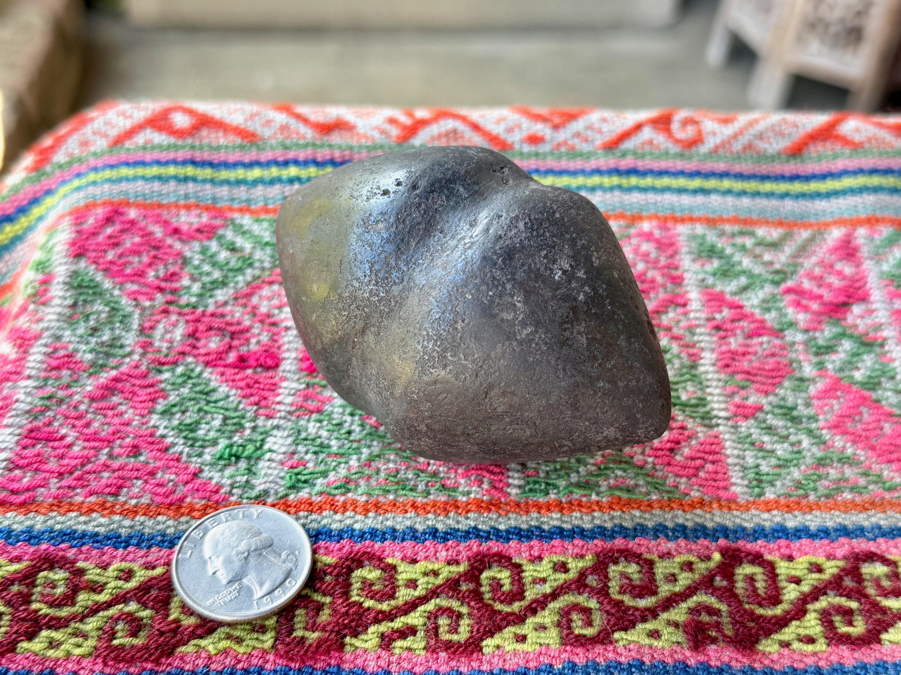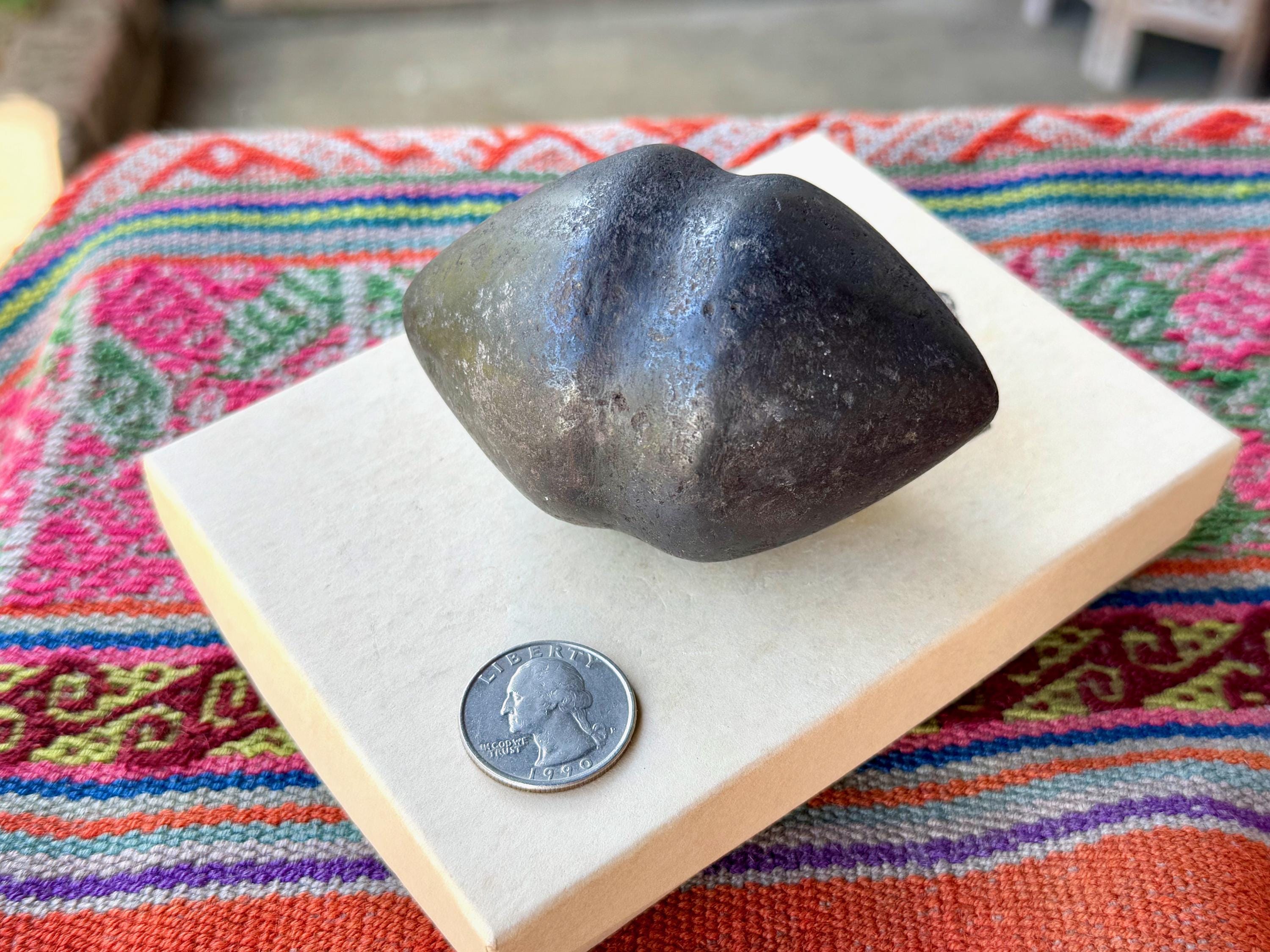 **PLEASE NOTE - This piece is quite special in that the material is an extremely dense black metallic stone that feels like iron and is also magnetic. Our source in the Sacred Valley tells us that it is carved from a "meteor found in the highest altitudes of the mountains" there. Without a lab test, we cannot verify this for certain. This piece comes from a trusted source of ours that is well-respected throughout Peru's Sacred Valley, so we do trust his word. However, for full transparency and out of respect for our customers we do want to include this disclaimer that we cannot be fully certain of the actual material, thus we've indicated it here as "alleged" meteoric rock. What is not disputed is that the material comes from the very sacred mountains (Apus) of the Cusco region, giving it a wonderful and powerful energetic connection to the land, regardless of is geological makeup.