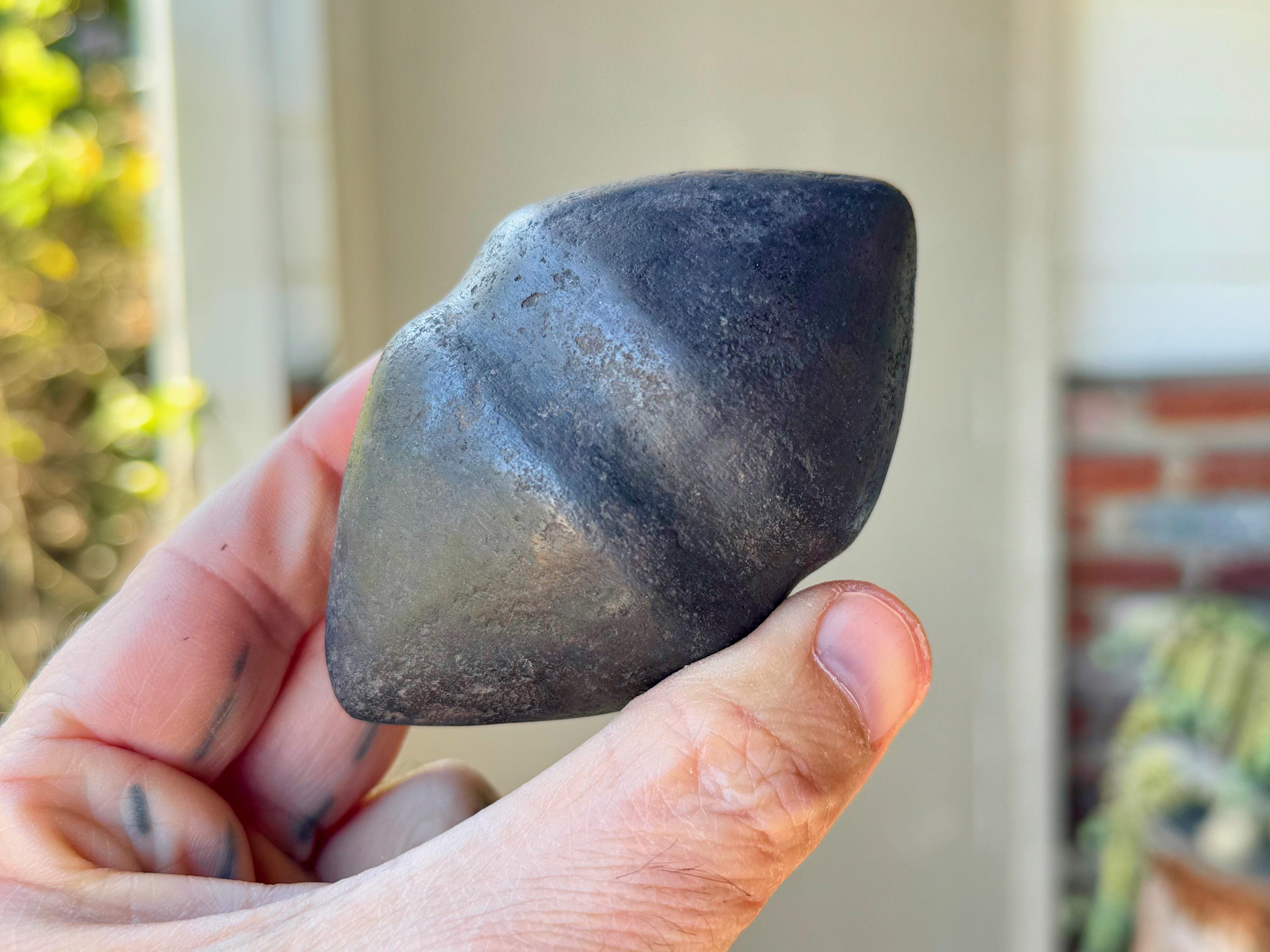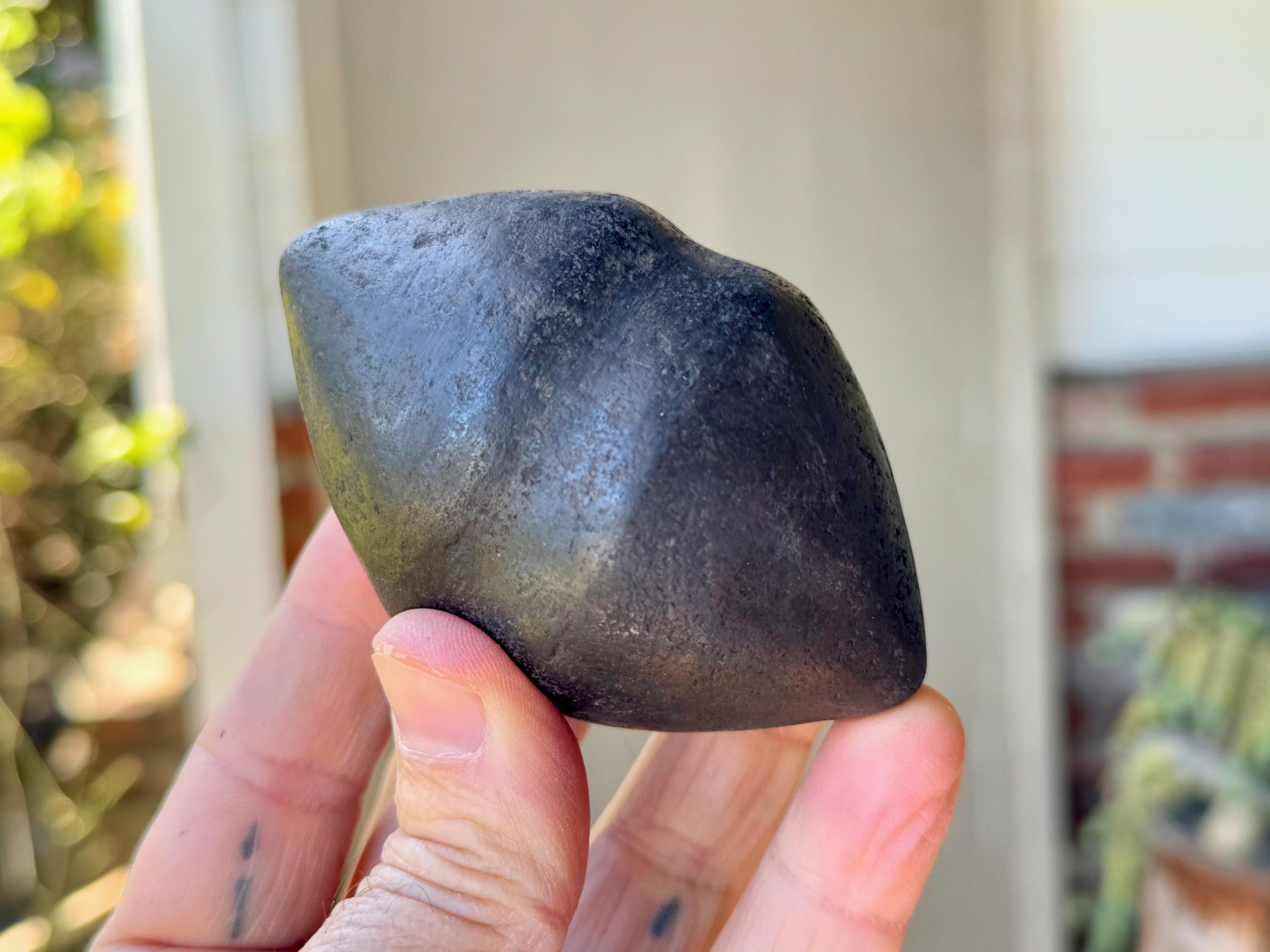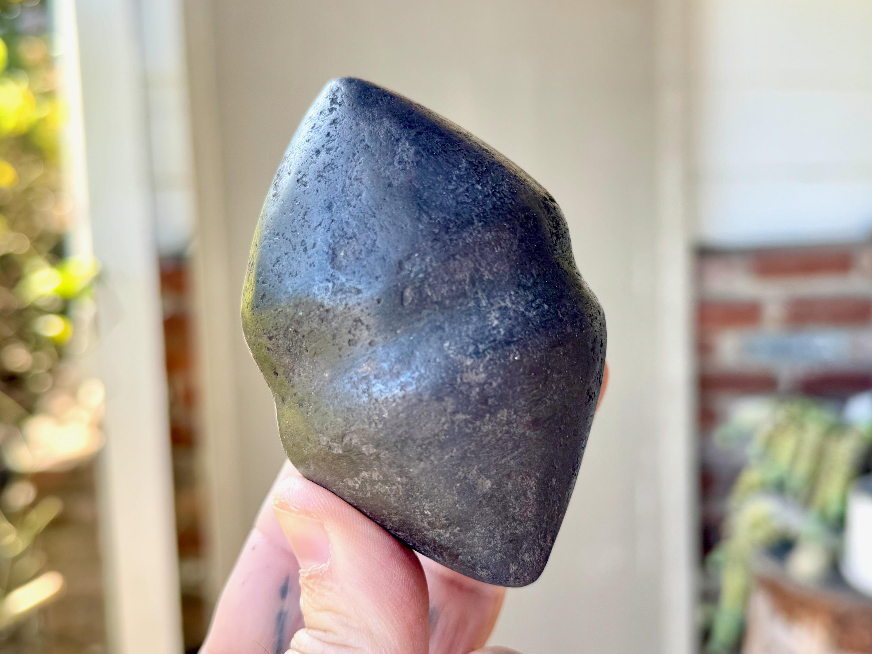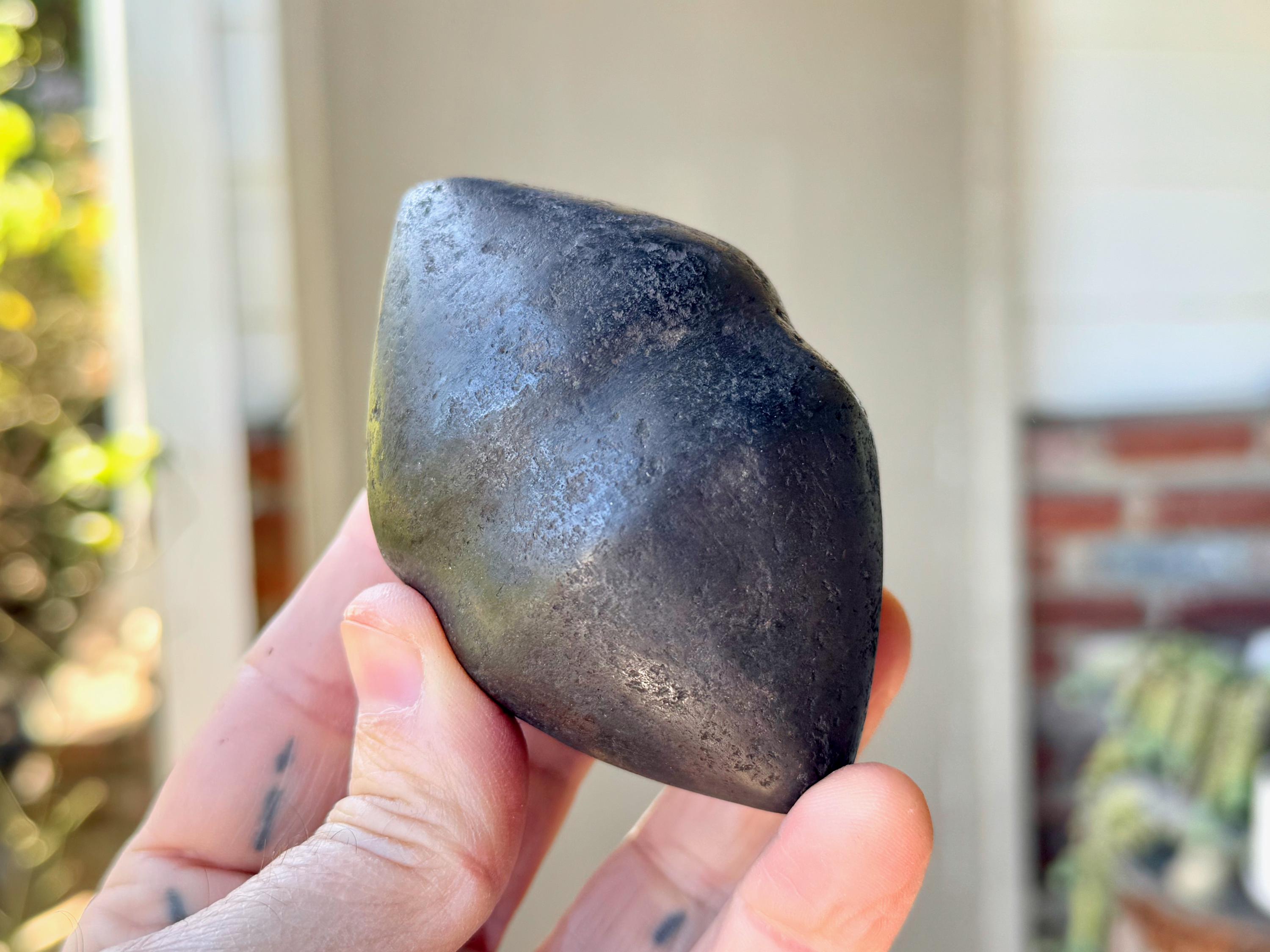 **PLEASE NOTE - This piece is quite special in that the material is an extremely dense black metallic stone that feels like iron and is also magnetic. Our source in the Sacred Valley tells us that it is carved from a "meteor found in the highest altitudes of the mountains" there. Without a lab test, we cannot verify this for certain. This piece comes from a trusted source of ours that is well-respected throughout Peru's Sacred Valley, so we do trust his word. However, for full transparency and out of respect for our customers we do want to include this disclaimer that we cannot be fully certain of the actual material, thus we've indicated it here as "alleged" meteoric rock. What is not disputed is that the material comes from the very sacred mountains (Apus) of the Cusco region, giving it a wonderful and powerful energetic connection to the land, regardless of is geological makeup.