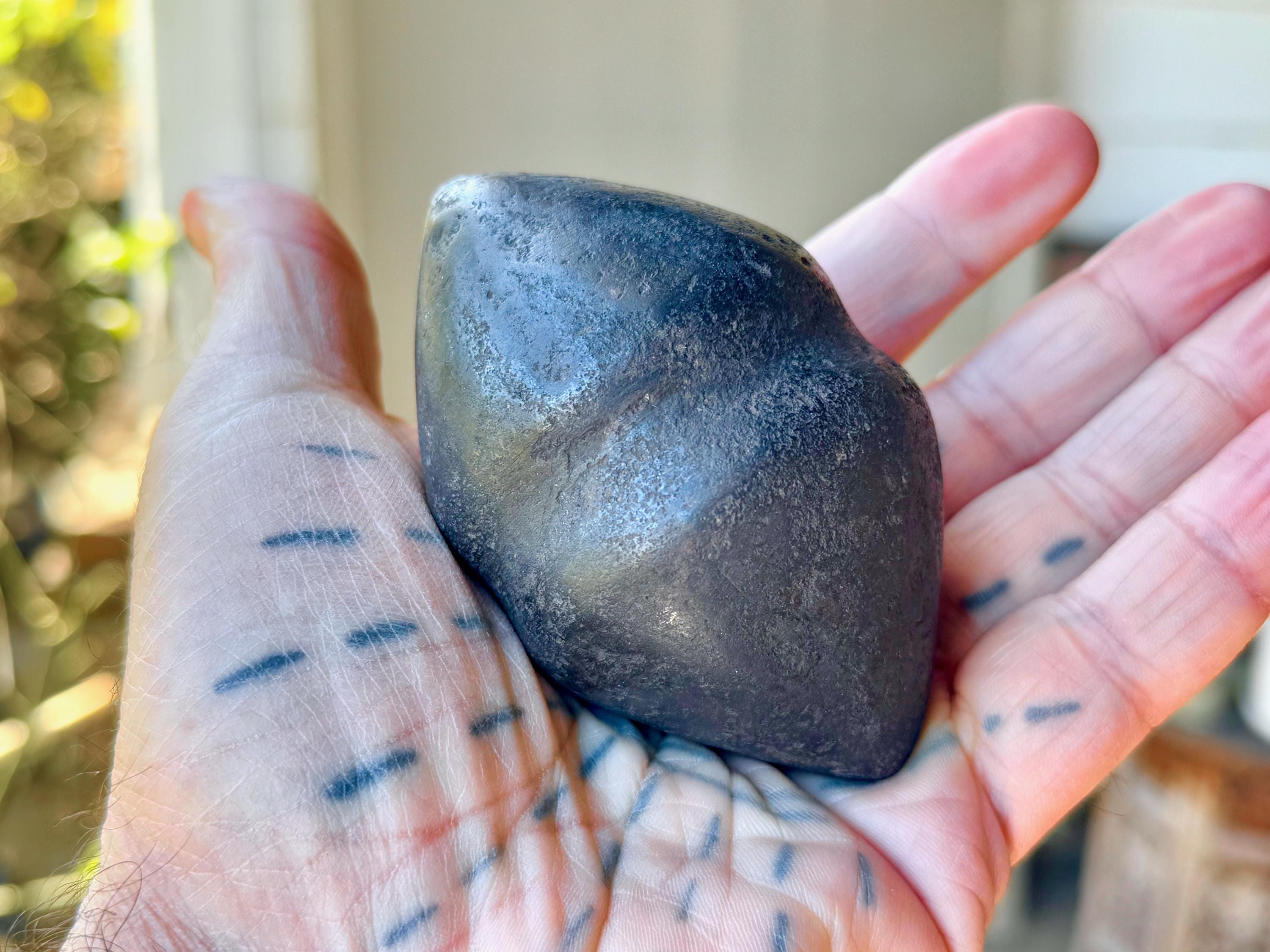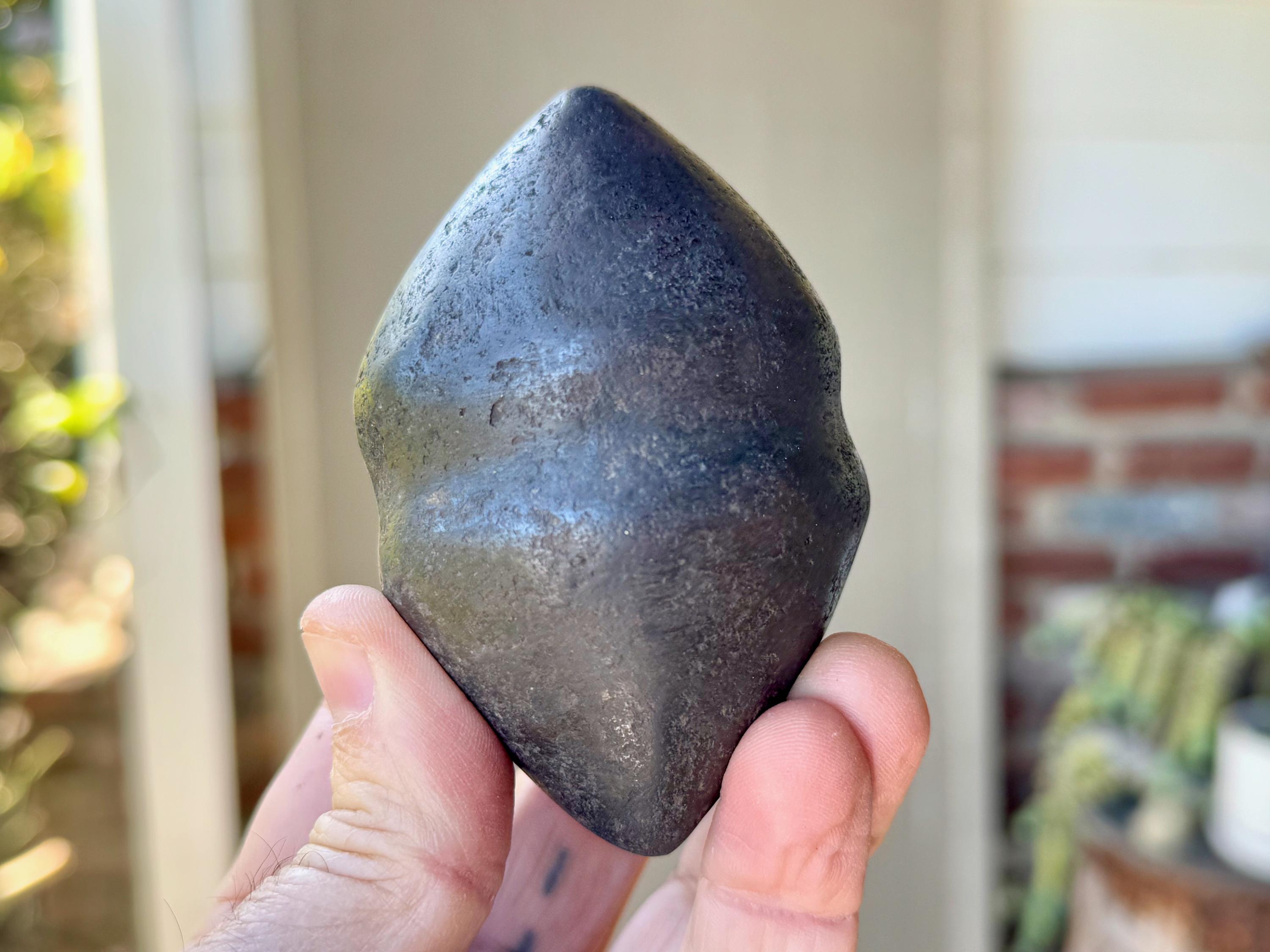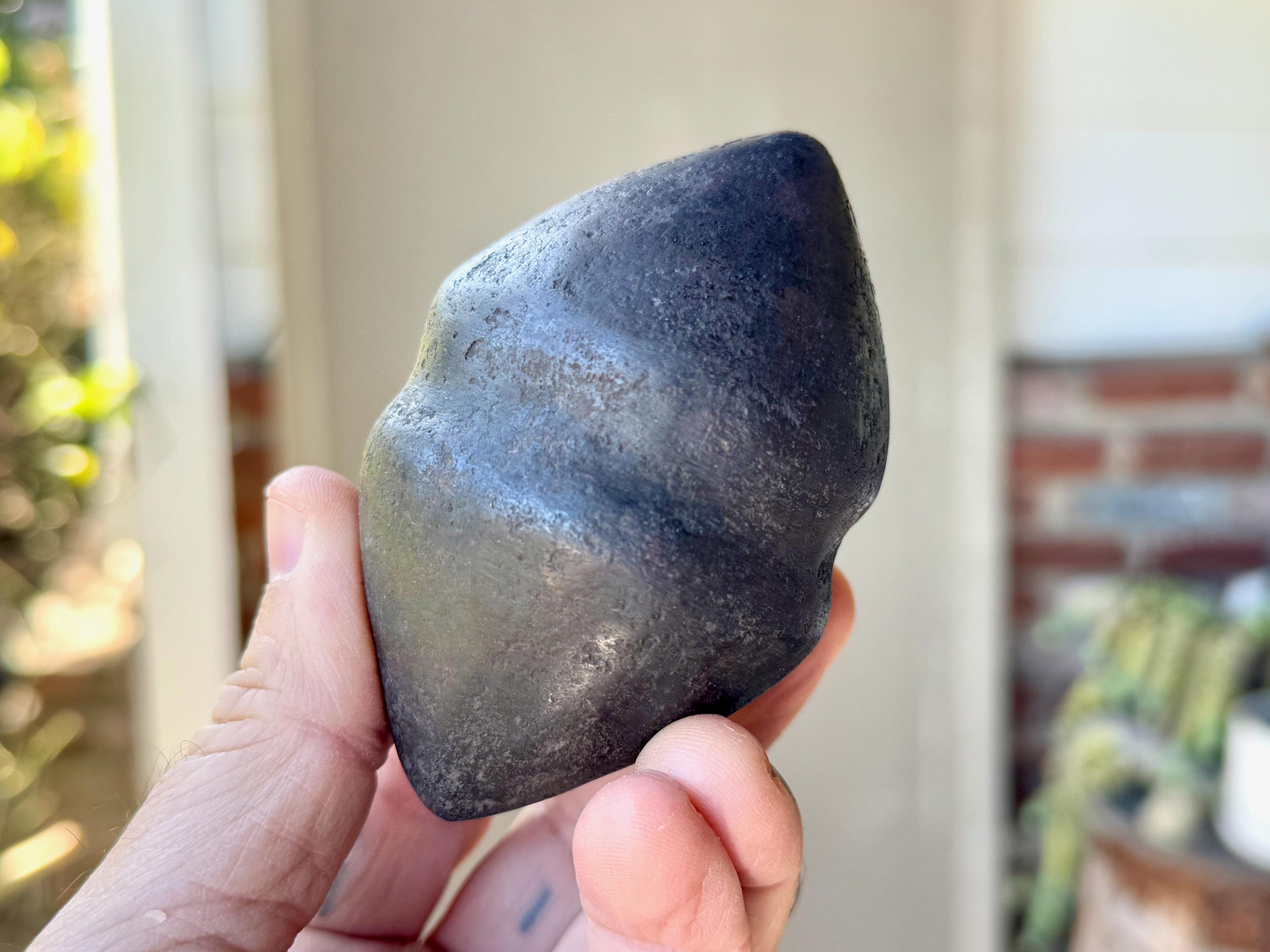 This piece is quite special in that the material is an extremely dense black metallic stone that feels like iron (please see the first portion of this listing for our thoughts on the material). We can't imagine how difficult it was to carve, due to the extremely density of the material. It is masterfully crafted and weathered to perfection to give it an ancient patina. While it is a new creation, it really does seem to carry an ancient energy.