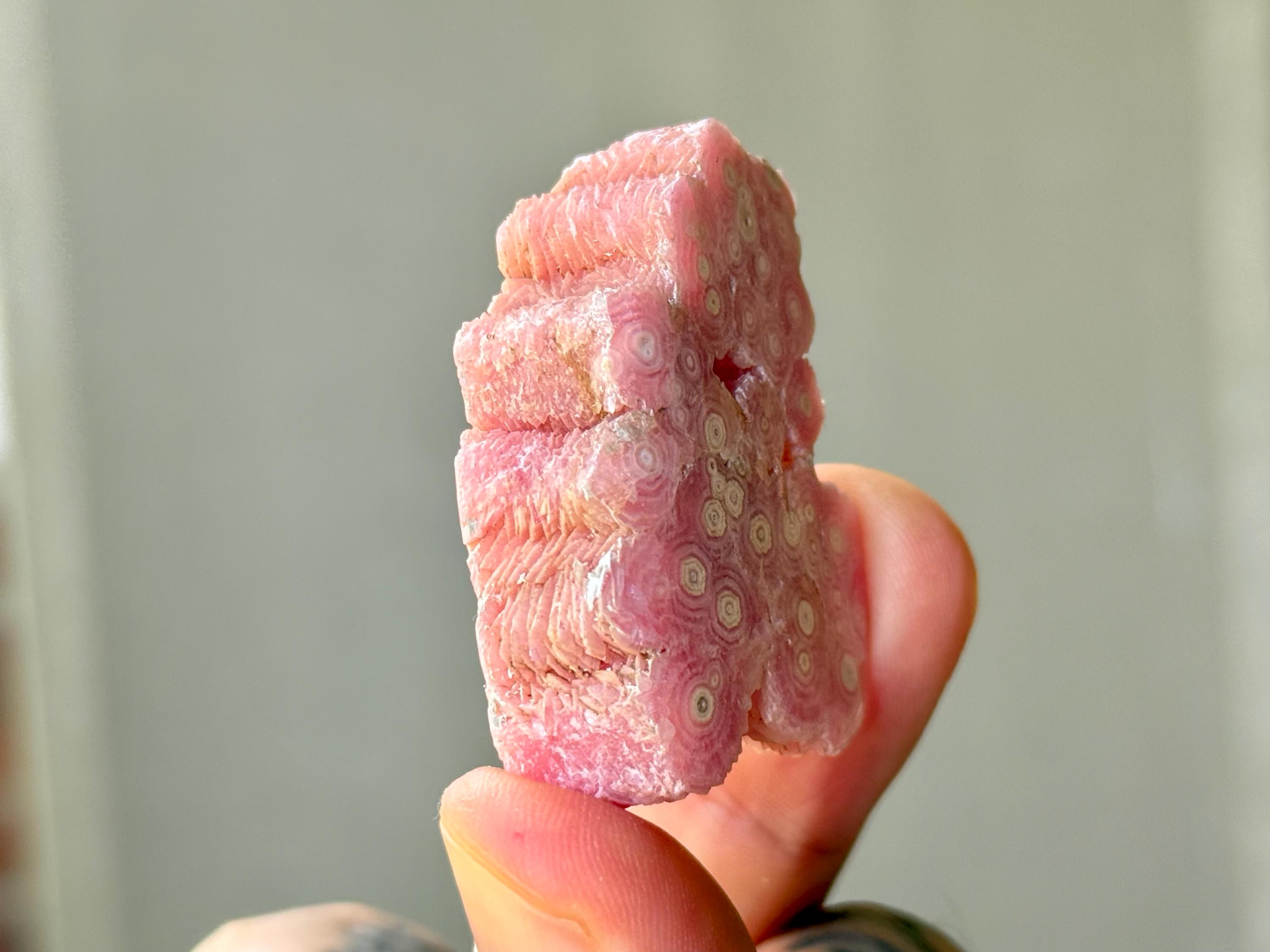 Rhodochrosite is an amazing stone for calling love into one’s life, a friend or a romantic partner that is a soulmate, one who helps us learn necessary lessons for our higher good. This stone can artfully guide one in the quest for emotional happiness, help one move forward after a period of doubt, and express love toward others without fear of rejection.