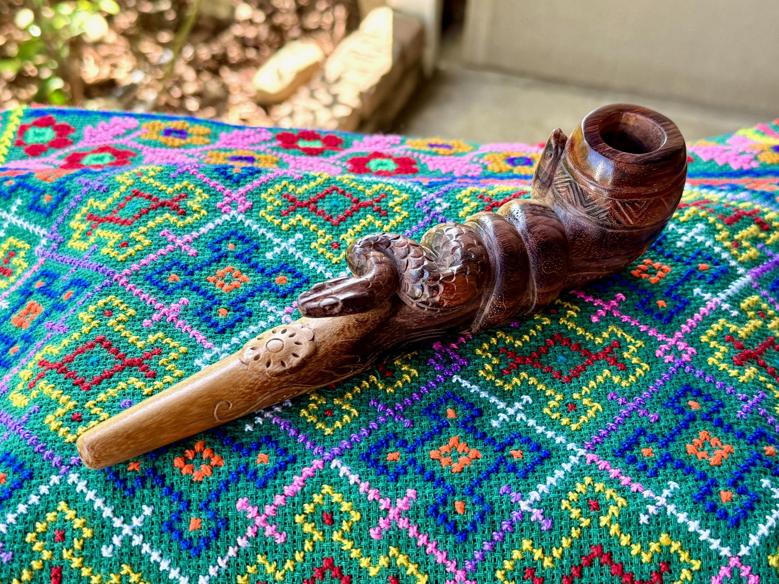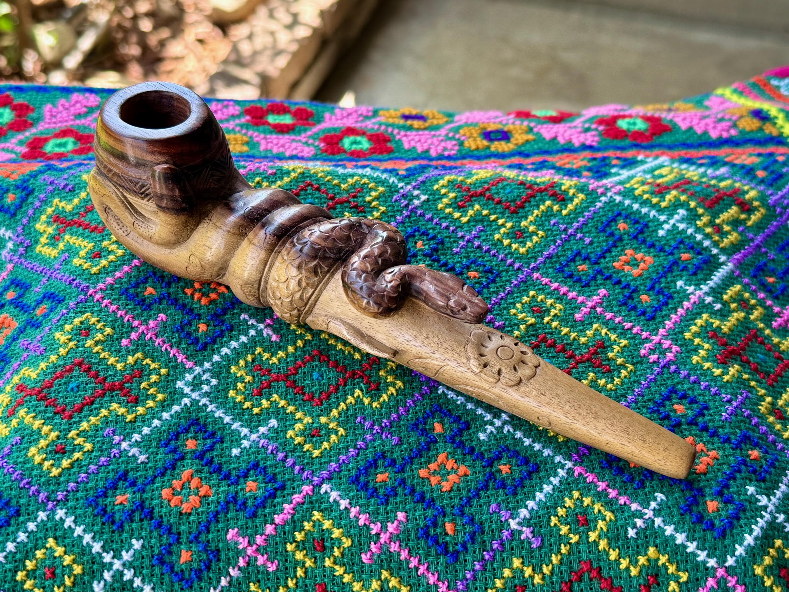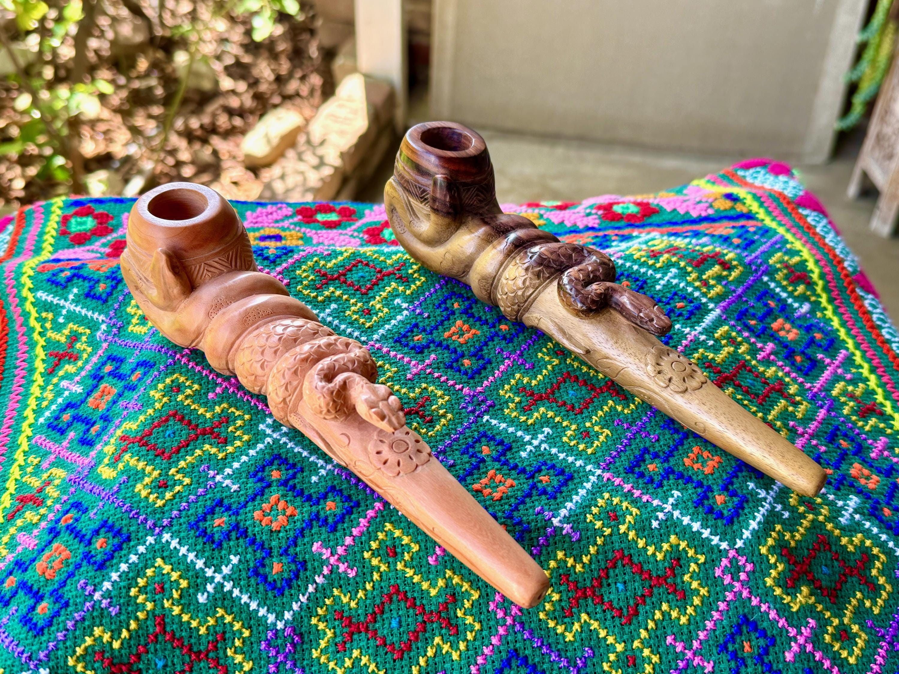 These magnificent Shaman Snake Pipes for tobacco and mapacho were hand carved from solid, native hardwoods. These pipes are intended for use in shamanic healing ceremonies or other energy healing applications. There are two to choose from, simply select your preference from the dropdown menu.